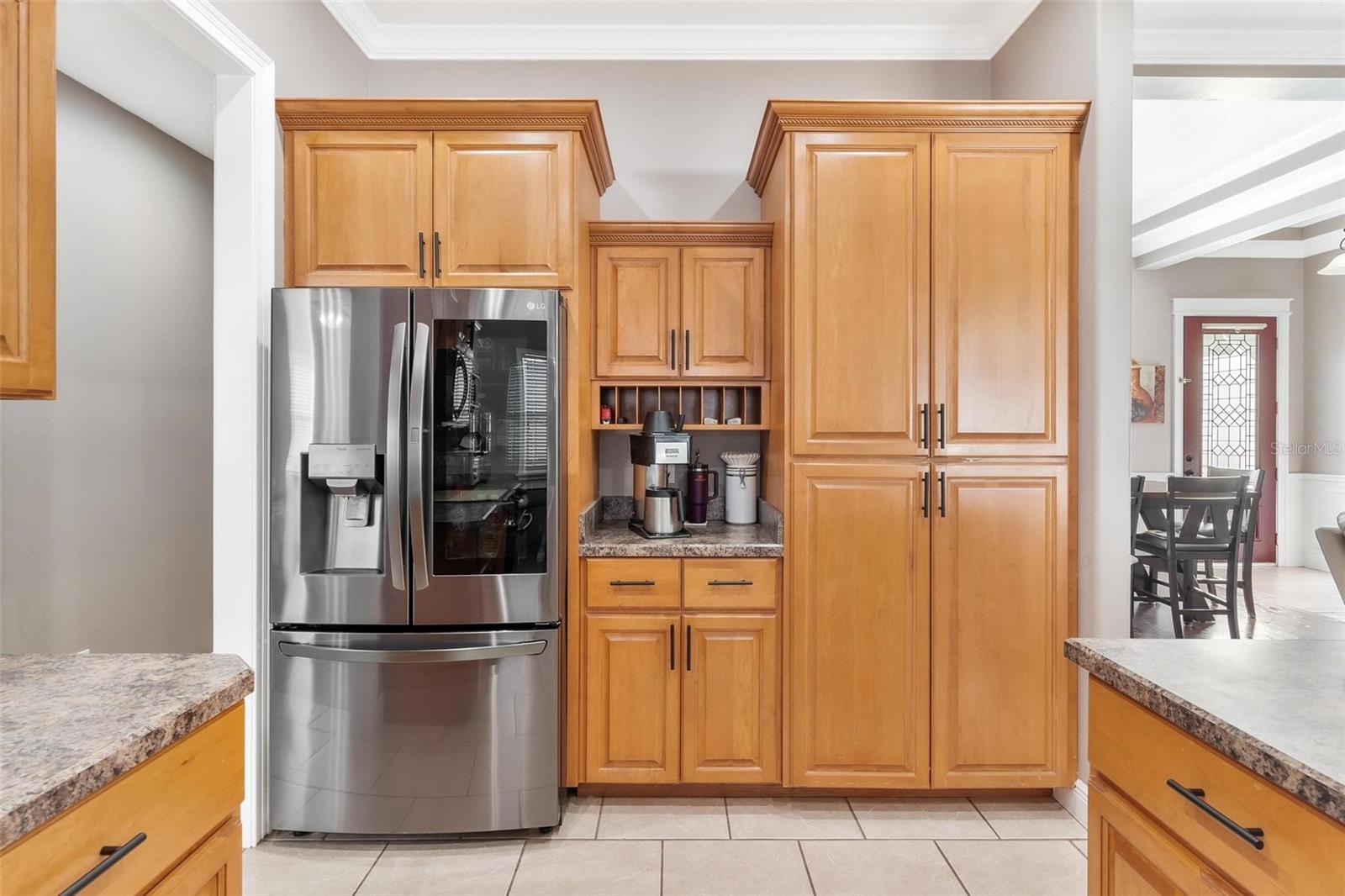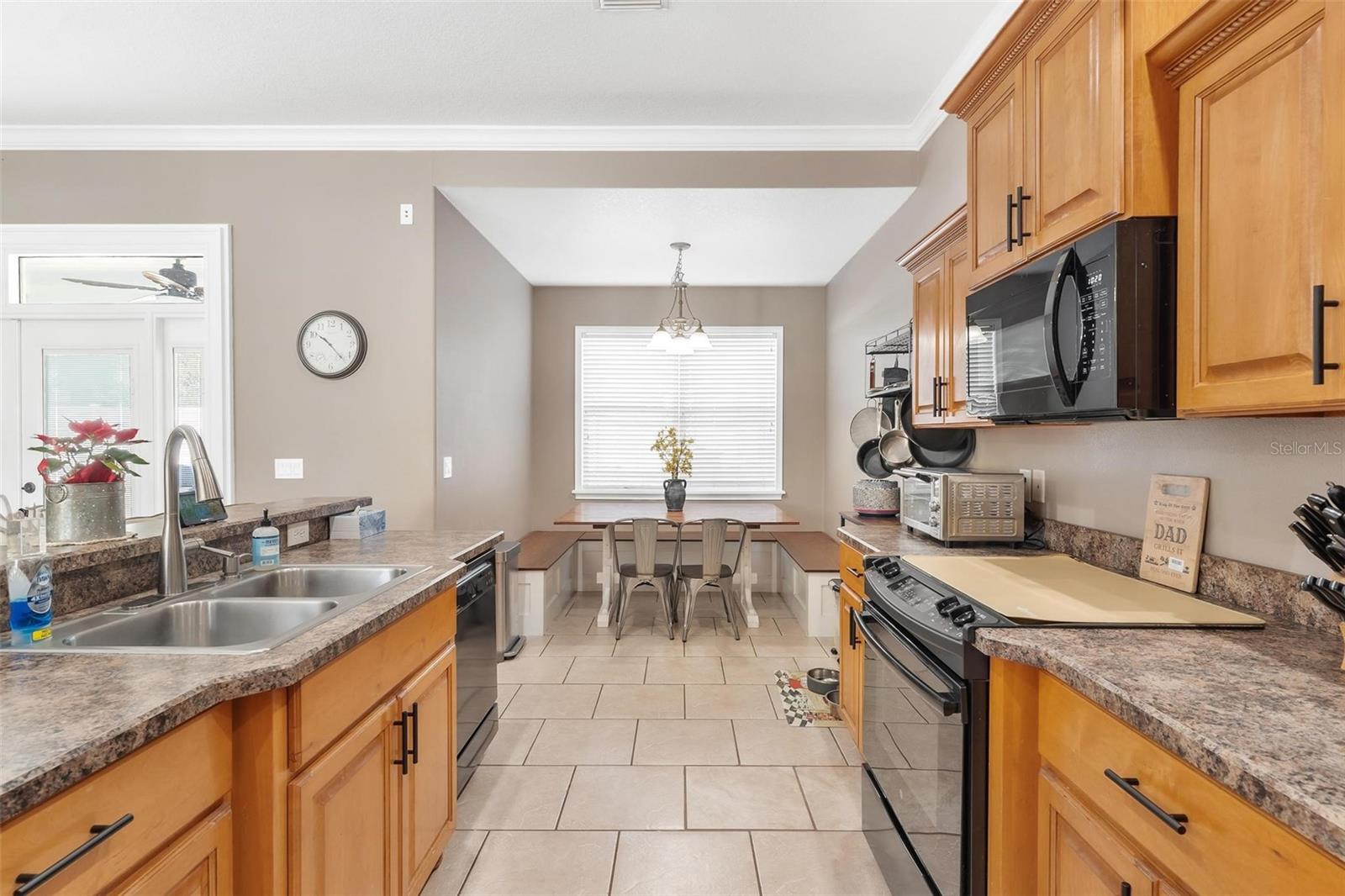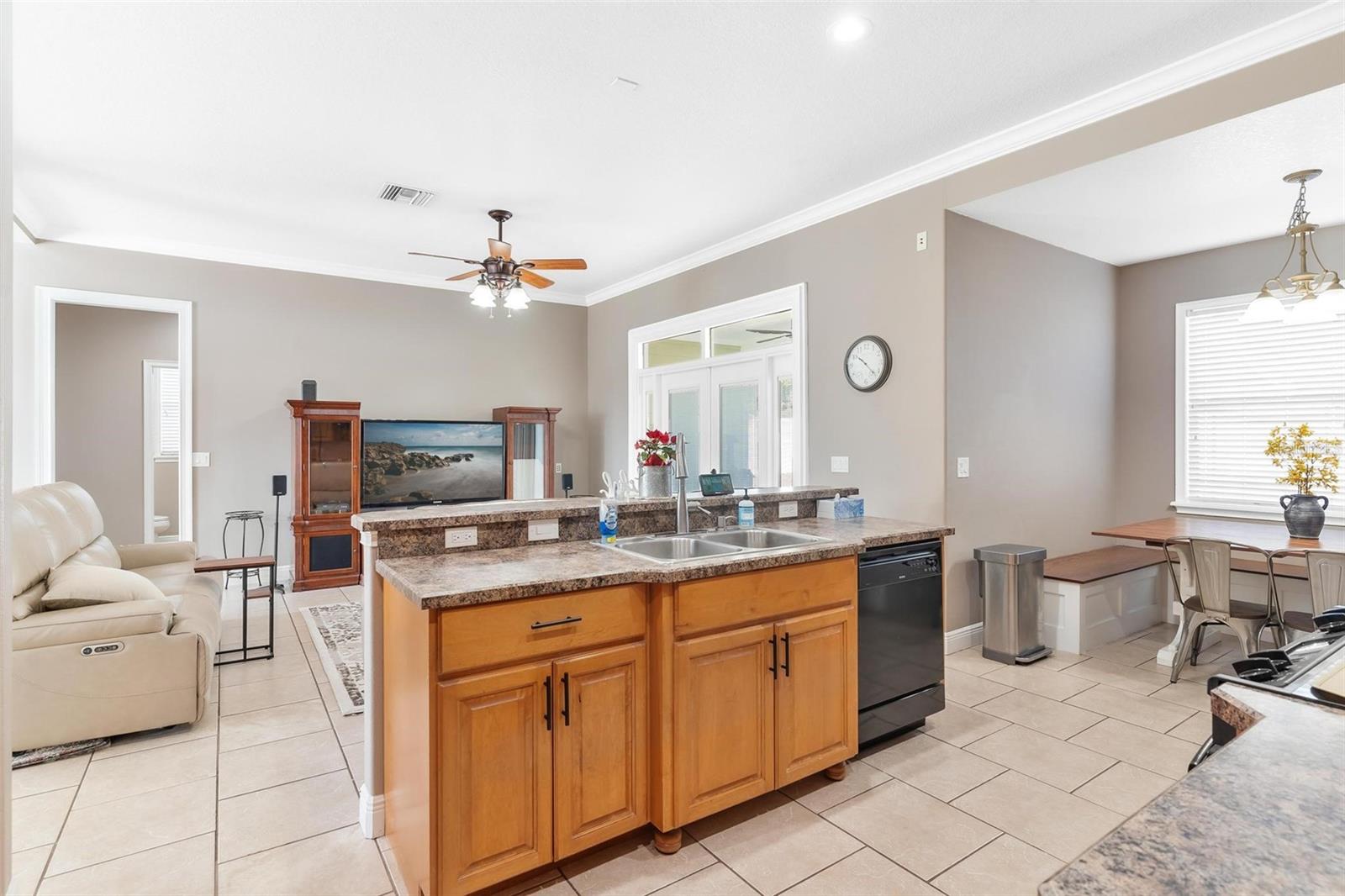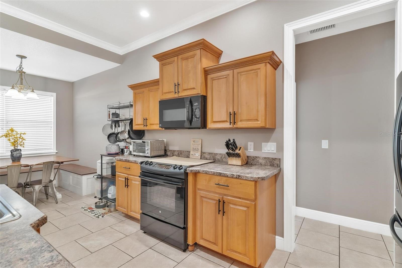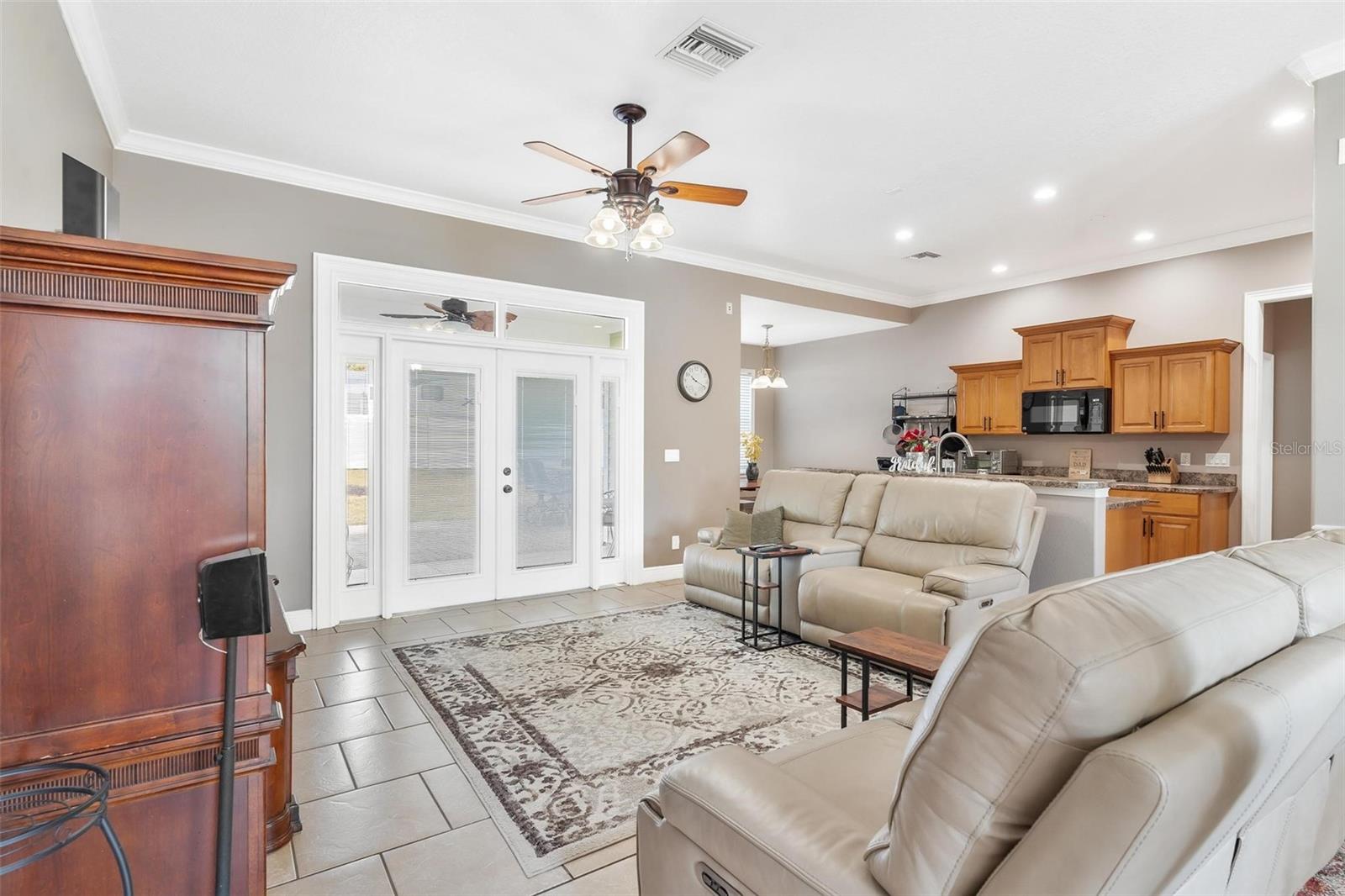 Faça esta bela casa em um plano dividido em um bairro procurado e procurado e bem hoje! Sem HOA, uma vista adorável do lago Umatilla e um quintal lindamente paisagístico, esta casa oferece estilo e conforto. O interior espaçoso possui tetos altos com elegantes molduras de coroa dupla e tetos de bandeja em toda a planta piso de conceito aberto. O teto do Cypress Patio e a iluminação atualizada adicionam um toque extra de sofisticação. As portas francesas personalizadas levam da sala a um pátio coberto estendido, que foi pavimentado para um charme adicional. A cozinha possui armários de madeira personalizados e aparelhos mais novos, enquanto o recanto do café da manhã inclui assentos embutidos com mesa e armazenamento. O recém-cercado quintal com cercado em vinil oferece amplo espaço para relaxantes e divertidos. As atualizações recentes incluem um novo aquecedor de água quente, um novo sistema HVAC e um novo telhado (instalado em agosto de 2023). Recursos adicionais incluem dois novos galpões, concreto extra derramado em 2024 para acomodar o estacionamento para um barco ou RV e câmeras de segurança para tranquilidade. Esta casa está convenientemente localizada perto de escolas, compras, restaurantes e a floresta nacional Ocala