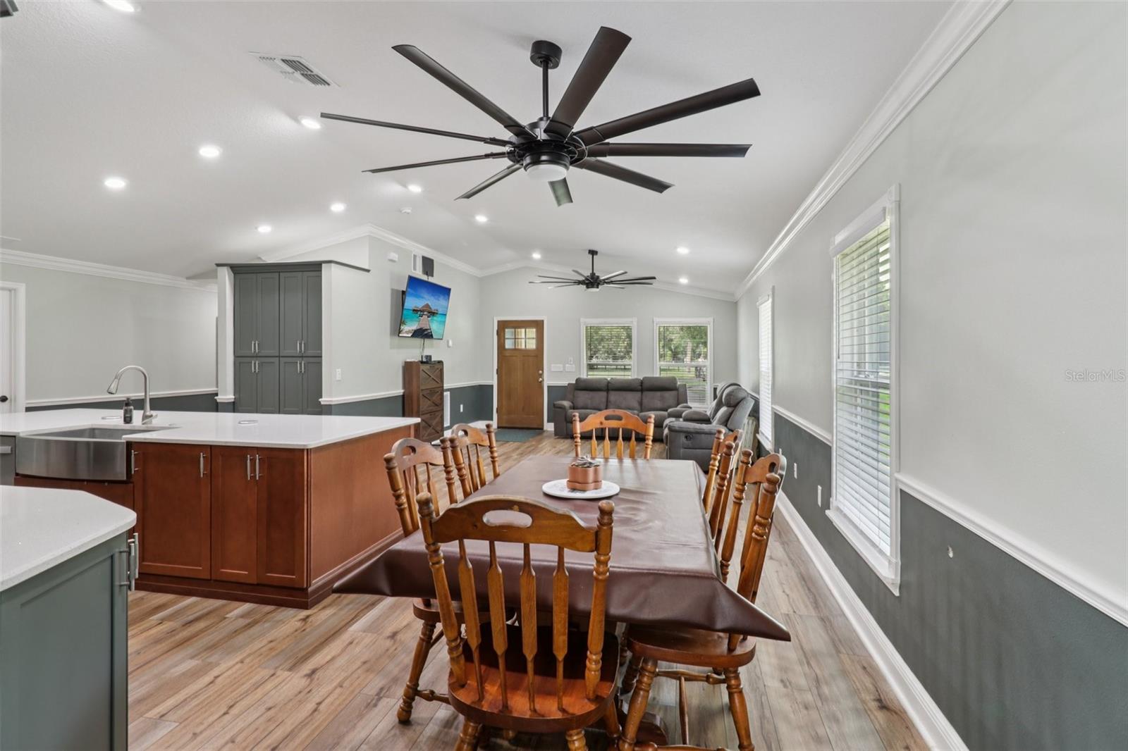 Sob ofertas de backup que aceitam contrato. Retiro privado de 5 acres com 4 quartos e 2 banheiros com mais de 2.000 pés quadrados construído em 2022 e com grande celeiro e celeiro. Escondida no final de um beco sem saída isolado, esta deslumbrante propriedade cercada de 5 acres em Umatilla oferece a combinação perfeita de privacidade, funcionalidade e conforto moderno. A propriedade também possui um celeiro de 36'x32' e um celeiro fechado com 1.120 pés quadrados e um loft de 20'x20' - ideal para escritório, oficina ou armazenamento de veículos. Entre nesta bela casa para encontrar tetos altos, sancas, corrimão para cadeiras, iluminação LED, grandes ventiladores de teto, piso de vinil luxuoso e janelas com painel térmico com eficiência energética por toda parte. A espaçosa sala flui perfeitamente para a cozinha gourmet e área de jantar, onde uma enorme ilha de quartzo de 4'x13' com duas estações de carregamento integradas rouba a cena. Desfrute de eletrodomésticos de aço inoxidável de primeira linha, incluindo um forno de convecção dupla Bosch, uma pia agrícola de aço inoxidável, uma despensa ampla, despensa e armazenamento adicional na parede. O layout do quarto oferece uma suíte primária privativa com uma combinação clássica de banheira/chuveiro, enquanto o segundo e terceiro quartos cheios de luz oferecem muito espaço. O versátil quarto quarto (ou sala bônus) oferece muitas opções. Desfrute de duas varandas com tela (10'x25' e 9'x14'), além de uma varanda aberta para grelhar - perfeita para entretenimento ou relaxamento ao ar livre. Os destaques adicionais incluem um aquecedor de água quente híbrido de 50 galões, um poço de 4 ”com uma bomba submersível de 5 cavalos de potência, um gerador Generac para toda a casa e dois tanques de propano (250 e 125 galões). Convenientemente localizada perto da Hwy 439, esta propriedade única oferece espaço, isolamento e todas as comodidades modernas que você precisa. Não perca esta casa imperdível - agende sua exibição privada hoje mesmo!