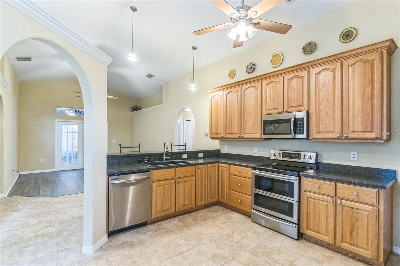 Esta bela casa de 3 quartos/2 banheiros com 1.274 pés quadrados está situada no altamente desejado condomínio fechado com mais de 55 anos de Twin Lake Estates. Esta casa tem uma cozinha fabulosa com armários de 42"e uma bancada para café da manhã. A espaçosa lavanderia inclui máquina de lavar e secar roupa e fica dentro da cozinha, com muito espaço de armazenamento e espaço. A suíte principal tem um amplo closet. armário, banheira de jardim e chuveiro separado no banheiro principal. Na outra extremidade da planta do quarto dividido, há 2 quartos espaçosos e um banheiro com chuveiro/banheira. A planta aberta permite que a sala se abra para a grande tela traseira. na varanda através de lindas portas francesas. A casa inteira tem piso de madeira e azulejos, então não há carpete. A casa fica em um terreno de 1/4 acre com muito espaço para desfrutar de atividades ao ar livre. de distância. Maravilhoso condomínio com baixas taxas de HOA torna esta uma oportunidade fantástica. Twin Lakes Estates em Umatilla é um condomínio fechado 55 Plus com inúmeras comodidades, incluindo clube, piscina, trilhas para caminhada/corrida, ampla área para passeios de bicicleta, ruas bem iluminadas, e muito mais. Muitos eventos sociais acontecem regularmente, tanto dentro da comunidade como nos arredores. Aproveite a serenidade da vida rural estando a apenas uma curta distância de carro de todas as lojas locais, restaurantes, igrejas, instalações médicas, eventos e muito mais. Além disso, fácil acesso aos aeroportos e locais de entretenimento de Orlando. Este é um lugar cobiçado para morar e aproveitar o melhor da vida na Flórida! Ligue para agendar seu tour privado hoje mesmo!