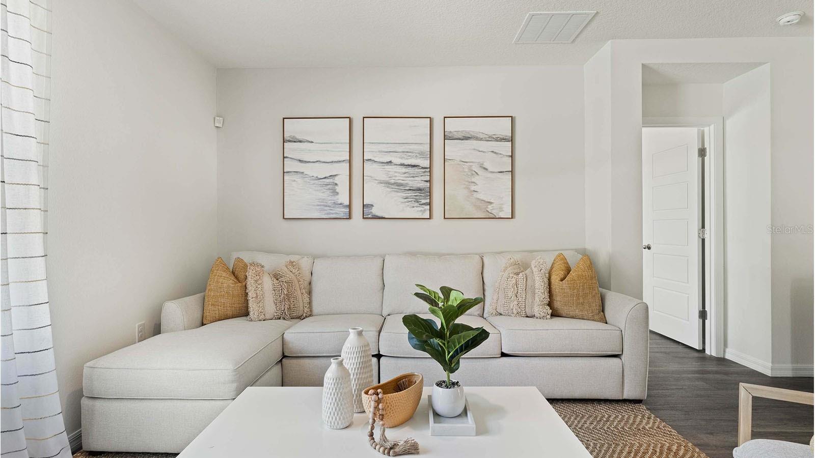 Em construção. Apresentando a planta baixa em Magnolia Pointe, em Umatilla, Flórida, onde cada pé quadrado é usado com sofisticação e conforto. Dentro desta casa de 4 quartos e 2 banheiros, você encontrará 1.882 pés quadrados de vida confortável. Esta residência meticulosamente projetada combina a conveniência moderna com a elegância atemporal, mostrando balcões de quartzo, vinil de luxo nas áreas principais e quarto primário. O resto dos quartos é acarpetado. Ao entrar, você é recebido por um hall de entrada convidativo que o leva ao coração da casa. O layout de conceito aberto conecta perfeitamente a sala de estar, a área de jantar e a cozinha, criando um espaço perfeito para entreter familiares e amigos. A espaçosa sala de estar apresenta luz natural abundante, graças a grandes janelas que fornecem vistas pitorescas da paisagem circundante. Com amplo espaço para assentos, é um local ideal para relaxamento e reuniões. A cozinha é um verdadeiro destaque, incluindo bancadas de quartzo, aparelhos de aço inoxidável elegantes, uma despensa e uma ilha de grandes dimensões com um bar de café da manhã. Esteja você preparando uma refeição casual ou organizando um jantar formal, esta cozinha está bem equipada para atender às suas necessidades culinárias. Os quatro quartos de tamanho generoso são flexíveis para vários estilos de vida. A suíte primária localizada na rea da casa é um retiro tranquilo, com um banheiro privativo privado com pias duplas, um chuveiro separado e um closet. Os três quartos restantes compartilham um banheiro bem equipado, tornando as rotinas matinais uma brisa. A lavanderia não será uma tarefa árdua com seu espaço dedicado conveniente para todos os quartos. Como todas as casas em Magnolia Pointe, o Cali inclui a tecnologia doméstica inteligente, que permite controlar sua casa a qualquer momento com seu dispositivo inteligente enquanto estiver próximo ou fora. Esteja você procurando um retiro familiar pacífico ou um lugar elegante para ligar para o seu, esta casa certamente atenderá a todas as suas necessidades. Entre em contato conosco hoje e encontre sua casa na Magnolia Pointe. *As fotos são de modelo semelhante, mas não a da casa exata. Imagens, fotografias, cores, recursos e tamanhos são apenas para fins de ilustração e variam das casas como construídas. Informações domésticas e comunitárias, incluindo preços, recursos incluídos, termos, disponibilidade e comodidades estão sujeitos a alterações e venda prévia a qualquer momento, sem aviso prévio ou obrigação. Observe que não são feitas representações ou garantias sobre distritos escolares ou tarefas escolares; Você deve conduzir sua própria investigação sobre escolas atuais e futuras e limites escolares.*