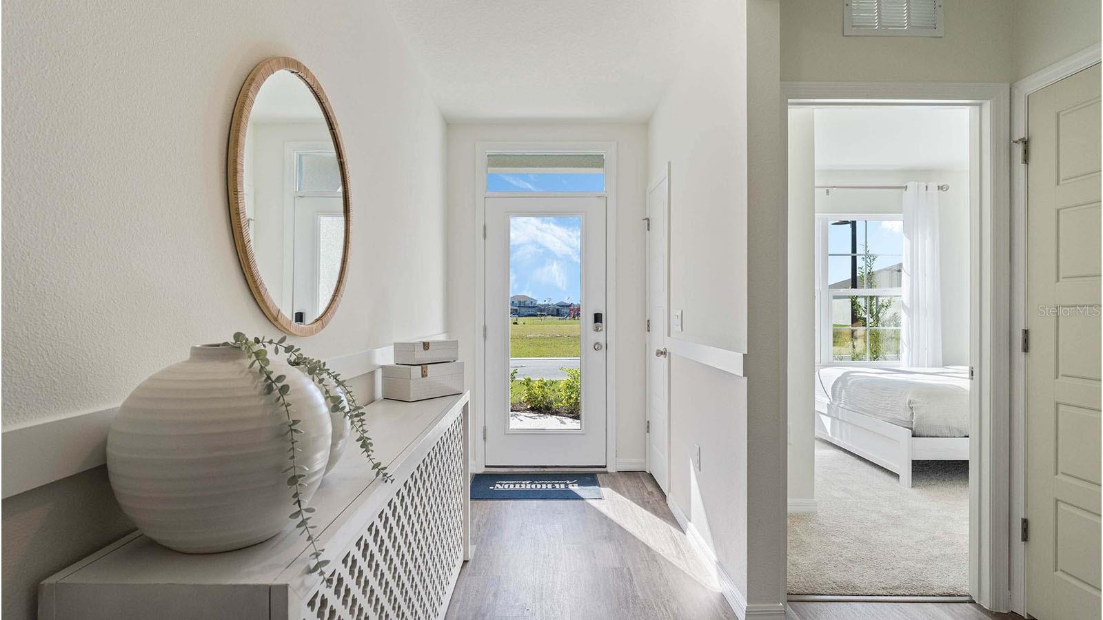 Em construção. Apresentando a planta baixa em Magnolia Pointe, em Umatilla, Flórida, onde cada pé quadrado é usado com sofisticação e conforto. Dentro desta casa de 4 quartos e 2 banheiros, você encontrará 1.882 pés quadrados de vida confortável. Esta residência meticulosamente projetada combina conveniência moderna com elegância atemporal, apresentando balcões de quartzo e piso de vinil de luxo nas principais áreas, incluindo o quarto primário. O resto dos quartos é acarpetado. Ao entrar, você é recebido por um hall de entrada convidativo que o leva ao coração da casa. O layout de conceito aberto conecta perfeitamente a sala de estar, a área de jantar e a cozinha, criando um espaço perfeito para entreter familiares e amigos. A espaçosa sala de estar apresenta luz natural abundante, graças a grandes janelas que fornecem vistas pitorescas da paisagem circundante. Com amplo espaço para assentos, é um local ideal para relaxamento e reuniões. A cozinha é um verdadeiro destaque, incluindo bancadas de quartzo, aparelhos de aço inoxidável elegantes, uma despensa e uma ilha de grandes dimensões com um bar de café da manhã. Esteja você preparando uma refeição casual ou organizando um jantar formal, esta cozinha está bem equipada para atender às suas necessidades culinárias. Os quatro quartos de tamanho generoso são flexíveis para vários estilos de vida. A suíte primária localizada na área da casa é um retiro tranquilo, com um banheiro privativo privado com pias duplas, um chuveiro separado e um closet. Os três quartos restantes compartilham um banheiro bem equipado, tornando as rotinas matinais uma brisa. A lavanderia não será uma tarefa árdua com seu espaço dedicado conveniente para todos os quartos. Como todas as casas em Magnolia Pointe, o Cali inclui a tecnologia doméstica inteligente, que permite controlar sua casa a qualquer momento com seu dispositivo inteligente enquanto estiver próximo ou fora. Esteja você procurando um retiro familiar pacífico ou um lugar elegante para ligar para o seu, esta casa certamente atenderá a todas as suas necessidades. Entre em contato conosco hoje e encontre sua casa na Magnolia Pointe. *As fotos são de modelo semelhante, mas não a da casa exata. Imagens, fotografias, cores, recursos e tamanhos são apenas para fins de ilustração e variam das casas como construídas. Informações domésticas e comunitárias, incluindo preços, recursos incluídos, termos, disponibilidade e comodidades estão sujeitos a alterações e venda prévia a qualquer momento, sem aviso prévio ou obrigação. Observe que não são feitas representações ou garantias sobre distritos escolares ou tarefas escolares; Você deve conduzir sua própria investigação sobre escolas atuais e futuras e limites escolares.*