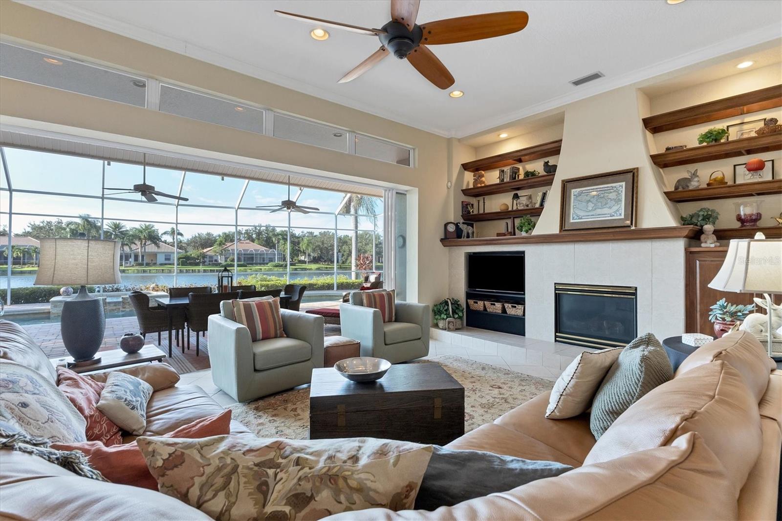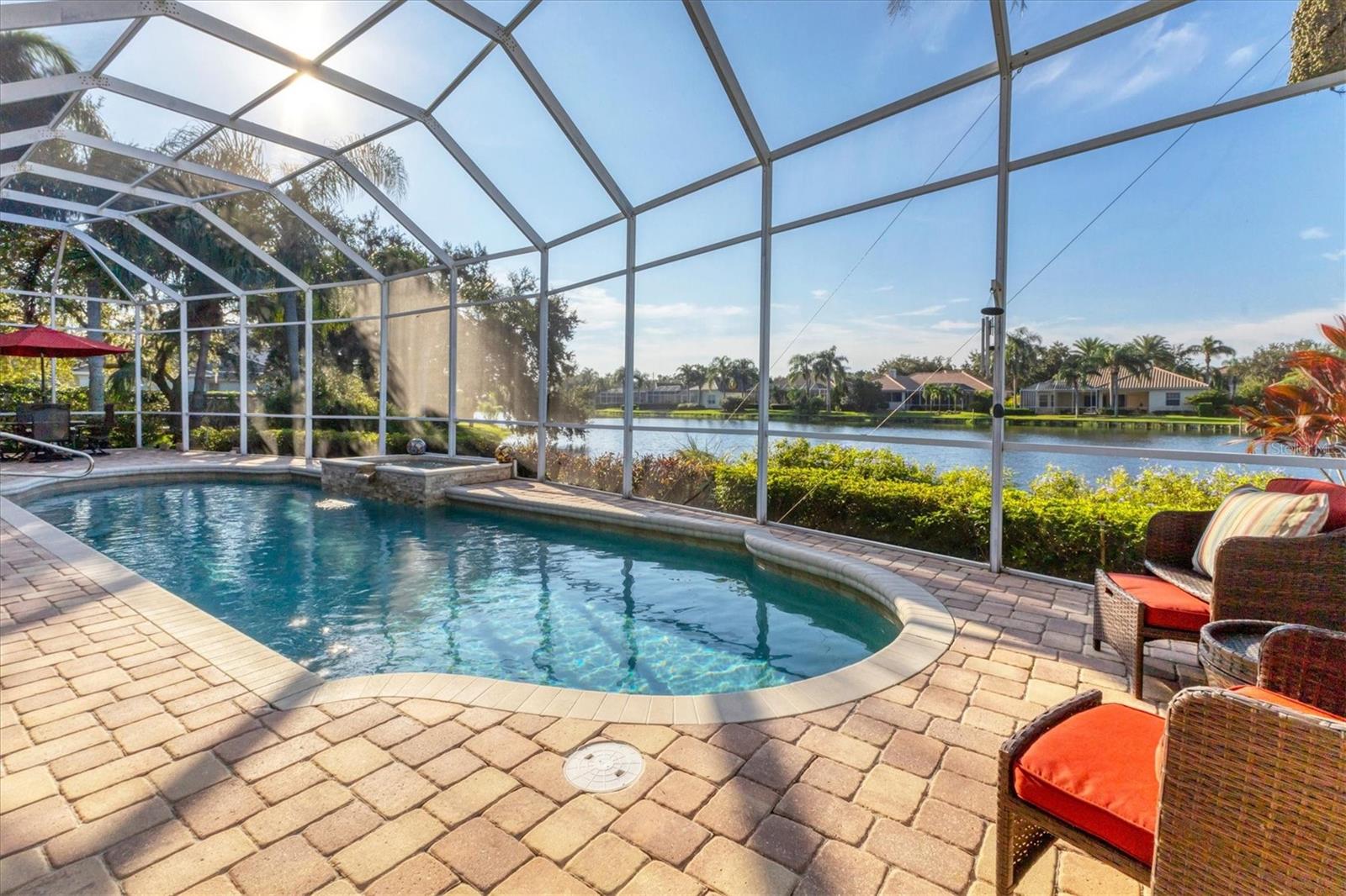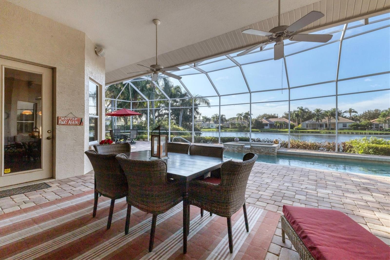 VENDEDOR MOTIVADO Esta residência requintada fica em um lago excepcional, uma joia dentro do Langley Park! Desfrute de uma extensa vista para o lago e vistas deslumbrantes do pôr do sol a partir desta propriedade paisagística com a exposição perfeita ao sul. Dentro dos 2.688 pés quadrados está a grande planta personalizada da Neal Signature Homes. Esta casa exala qualidade e atenção aos detalhes, começando pela entrada dupla de vidro com chumbo e hall de entrada de azulejos de design até a sensação aberta e arejada com a parede de portas de vidro deslizantes que perfeitamente misture a vida interna e externa com vista para o lago e sua vida selvagem. Lareira a gás, bar molhado, tetos de bandeja e sancas adicionam elegância, enquanto prateleiras de madeira personalizadas e armários embutidos elevam o interior a novos patamares. A cozinha possui armários de bordo personalizados, bancadas de pedra, backsplash de azulejos e eletrodomésticos de aço inoxidável de última geração, incluindo dois fornos, um fogão a gás Thermador de cinco bocas, lava-louças Bosch e uma geladeira KitchenAid embutida correspondente, bem como um despensa grande armário. O amplo retiro principal oferece uma enseada de leitura tranquila com uma janela saliente e longas vistas para o lago. Closets personalizados abrem caminho para um luxuoso banheiro principal com pias separadas, banheira de imersão e box amplo com chuveiros duplos. Os destaques adicionais incluem dois quartos de hóspedes de tamanho generoso com banheiros privativos, uma sala com mesa em forma de L e armário de armazenamento, e uma grande varanda pavimentada com cozinha ao ar livre com vista para a piscina, spa e a longa e cativante vista para o mar. Completando esta casa desejável está uma garagem para dois carros com entrada separada para carrinho de golfe e uma entrada circular para pavimentação. Pronto para desfrutar, faça desta sua nova casa entre a paisagem natural e os lagos tranquilos do University Park, uma comunidade planejada de primeira linha na área de Sarasota/Bradenton. Além de sua entrada fechada, encontra-se um enclave premiado, ostentando uma variedade de comodidades notáveis. Entre eles estão 27 buracos de golfe quatro estrelas, onze quadras de tênis Har-Tru iluminadas, quatro quadras de pickleball, uma academia, instalações de croquet e uma extensa rede de avenidas arborizadas, ideais para caminhadas ou revigorantes passeios de bicicleta. O University Park fica convenientemente localizado a apenas uma distância do University Town Center, conhecido por suas lojas e restaurantes sofisticados. Também fica a poucos minutos do centro de Sarasota e das deslumbrantes praias de areia branca. O aeroporto SRQ fica a uma curta distância.