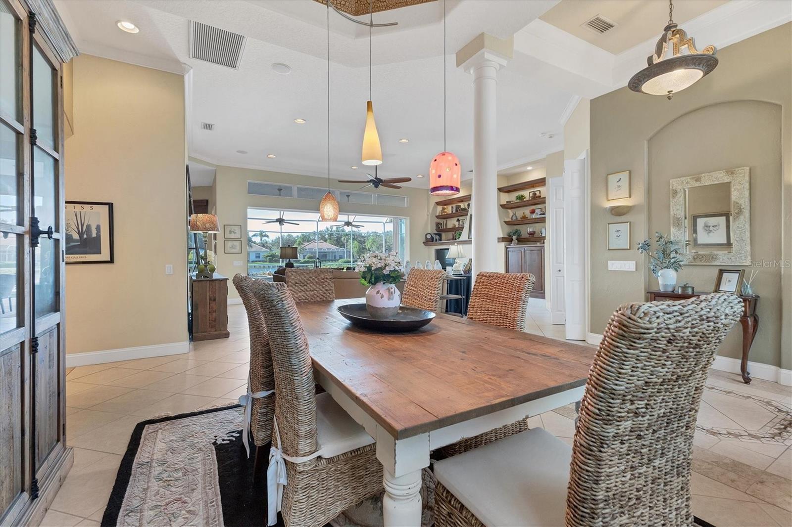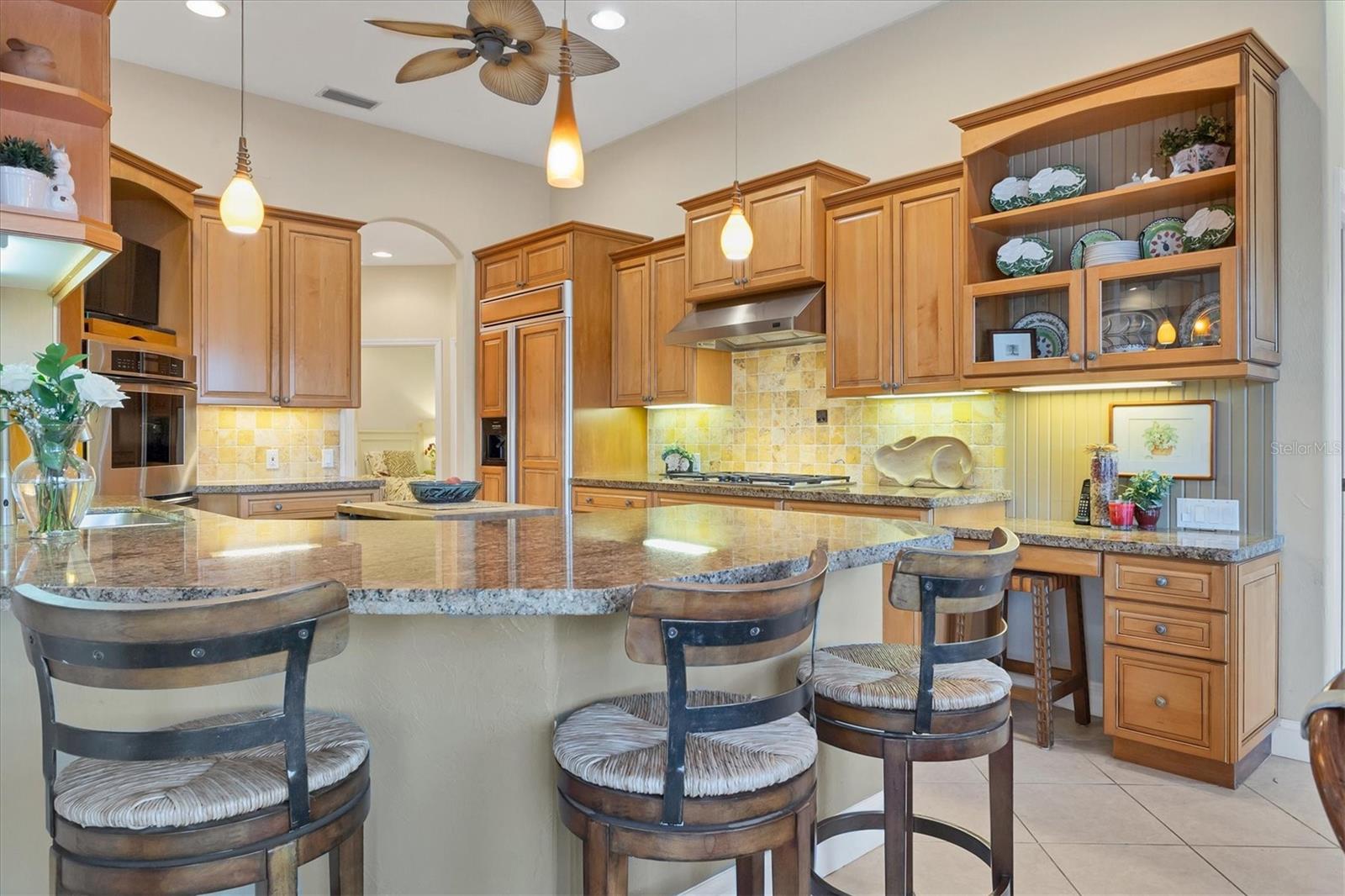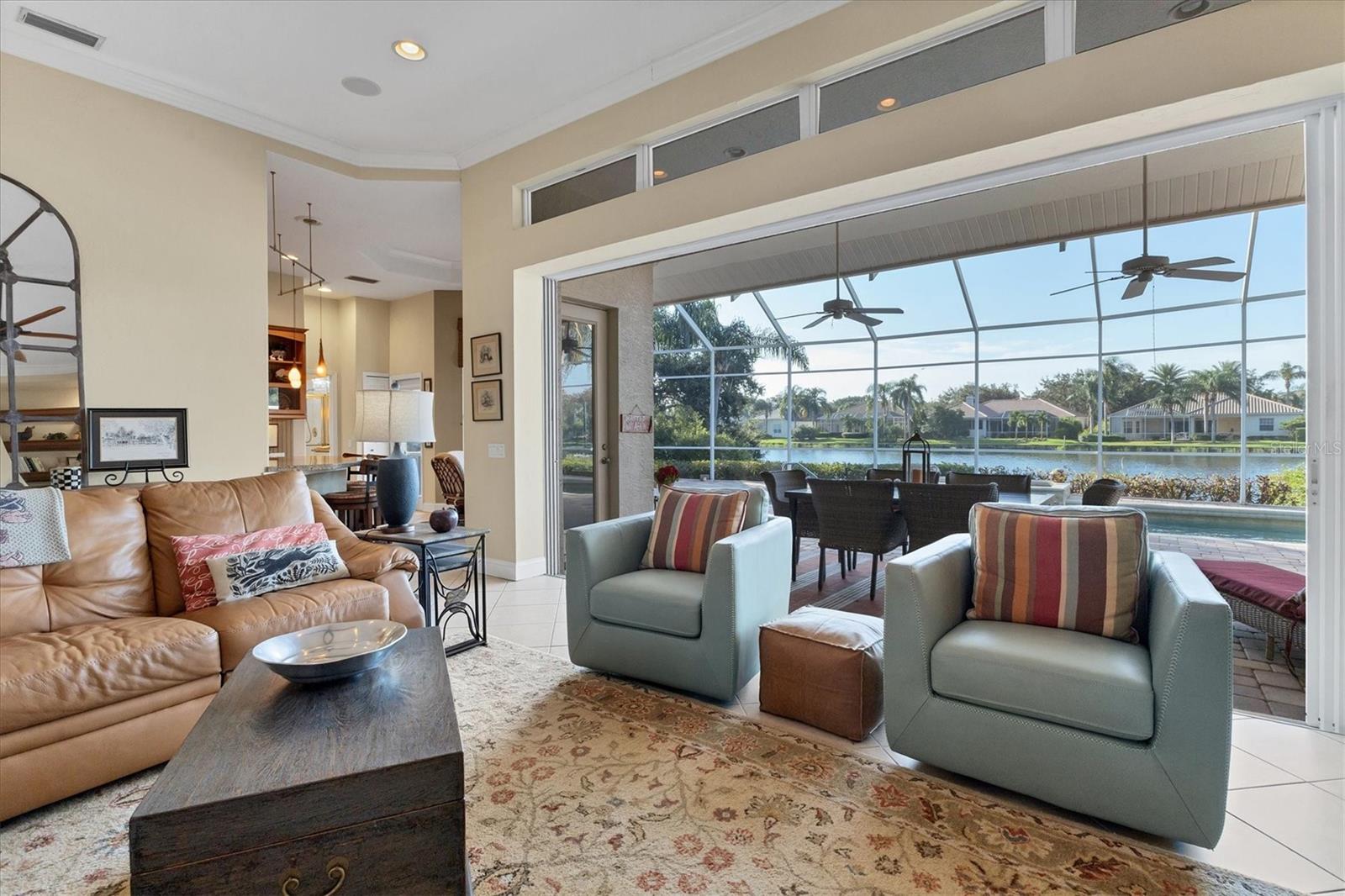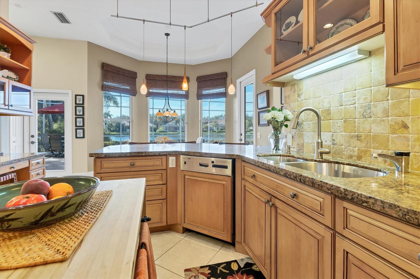 VENDEDOR MOTIVADO Esta residência requintada fica em um lago excepcional, uma joia dentro do Langley Park! Desfrute de uma extensa vista para o lago e vistas deslumbrantes do pôr do sol a partir desta propriedade paisagística com a exposição perfeita ao sul. Dentro dos 2.688 pés quadrados está a grande planta personalizada da Neal Signature Homes. Esta casa exala qualidade e atenção aos detalhes, começando pela entrada dupla de vidro com chumbo e hall de entrada de azulejos de design até a sensação aberta e arejada com a parede de portas de vidro deslizantes que perfeitamente misture a vida interna e externa com vista para o lago e sua vida selvagem. Lareira a gás, bar molhado, tetos de bandeja e sancas adicionam elegância, enquanto prateleiras de madeira personalizadas e armários embutidos elevam o interior a novos patamares. A cozinha possui armários de bordo personalizados, bancadas de pedra, backsplash de azulejos e eletrodomésticos de aço inoxidável de última geração, incluindo dois fornos, um fogão a gás Thermador de cinco bocas, lava-louças Bosch e uma geladeira KitchenAid embutida correspondente, bem como um despensa grande armário. O amplo retiro principal oferece uma enseada de leitura tranquila com uma janela saliente e longas vistas para o lago. Closets personalizados abrem caminho para um luxuoso banheiro principal com pias separadas, banheira de imersão e box amplo com chuveiros duplos. Os destaques adicionais incluem dois quartos de hóspedes de tamanho generoso com banheiros privativos, uma sala com mesa em forma de L e armário de armazenamento, e uma grande varanda pavimentada com cozinha ao ar livre com vista para a piscina, spa e a longa e cativante vista para o mar. Completando esta casa desejável está uma garagem para dois carros com entrada separada para carrinho de golfe e uma entrada circular para pavimentação. Pronto para desfrutar, faça desta sua nova casa entre a paisagem natural e os lagos tranquilos do University Park, uma comunidade planejada de primeira linha na área de Sarasota/Bradenton. Além de sua entrada fechada, encontra-se um enclave premiado, ostentando uma variedade de comodidades notáveis. Entre eles estão 27 buracos de golfe quatro estrelas, onze quadras de tênis Har-Tru iluminadas, quatro quadras de pickleball, uma academia, instalações de croquet e uma extensa rede de avenidas arborizadas, ideais para caminhadas ou revigorantes passeios de bicicleta. O University Park fica convenientemente localizado a apenas uma distância do University Town Center, conhecido por suas lojas e restaurantes sofisticados. Também fica a poucos minutos do centro de Sarasota e das deslumbrantes praias de areia branca. O aeroporto SRQ fica a uma curta distância.