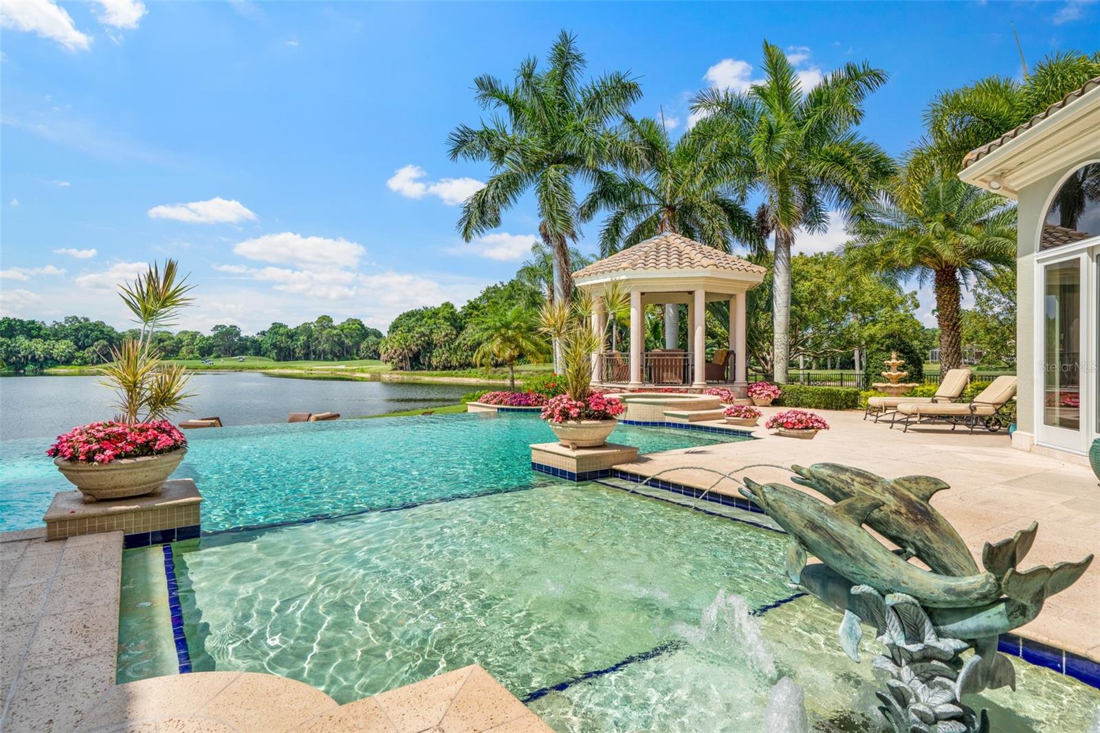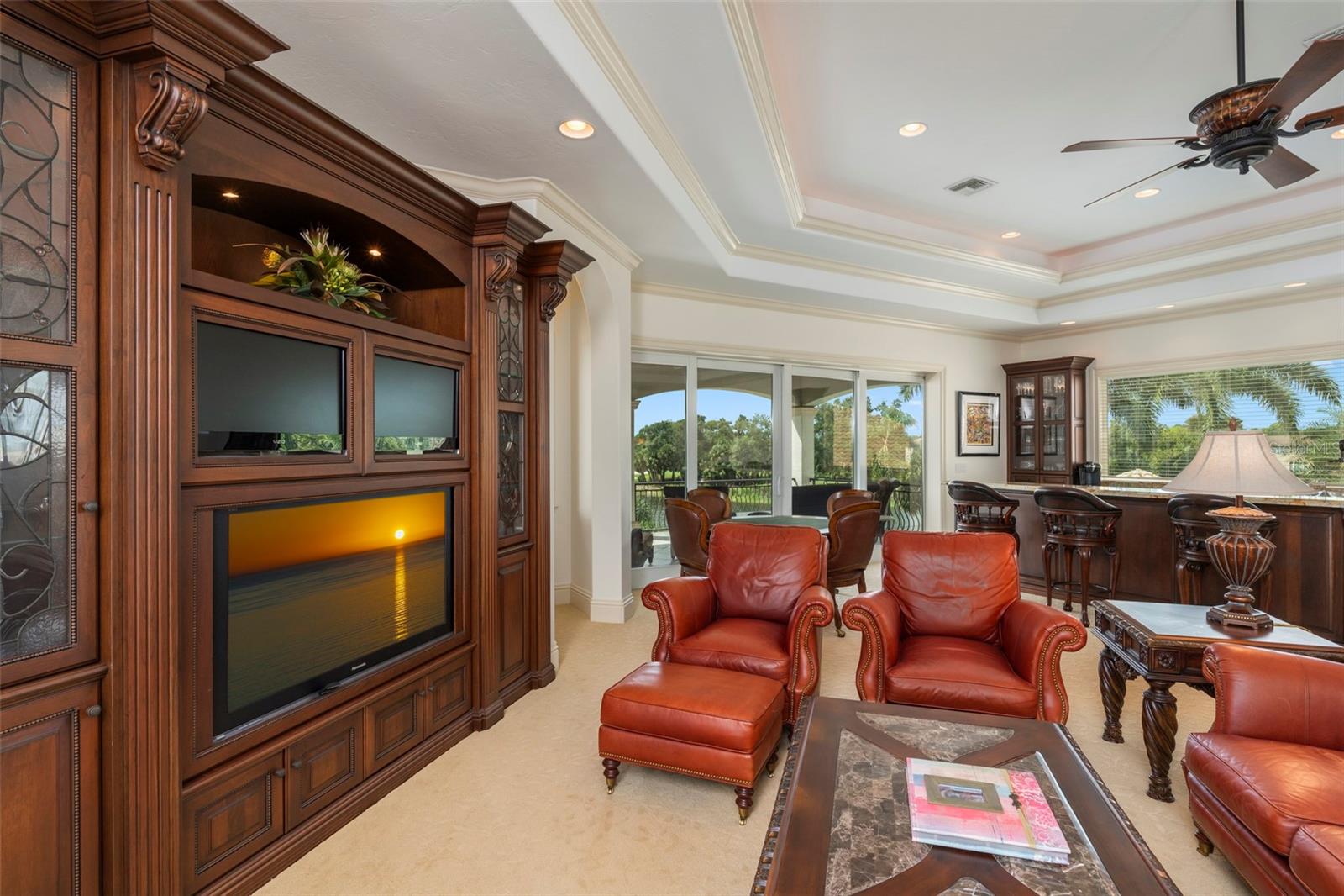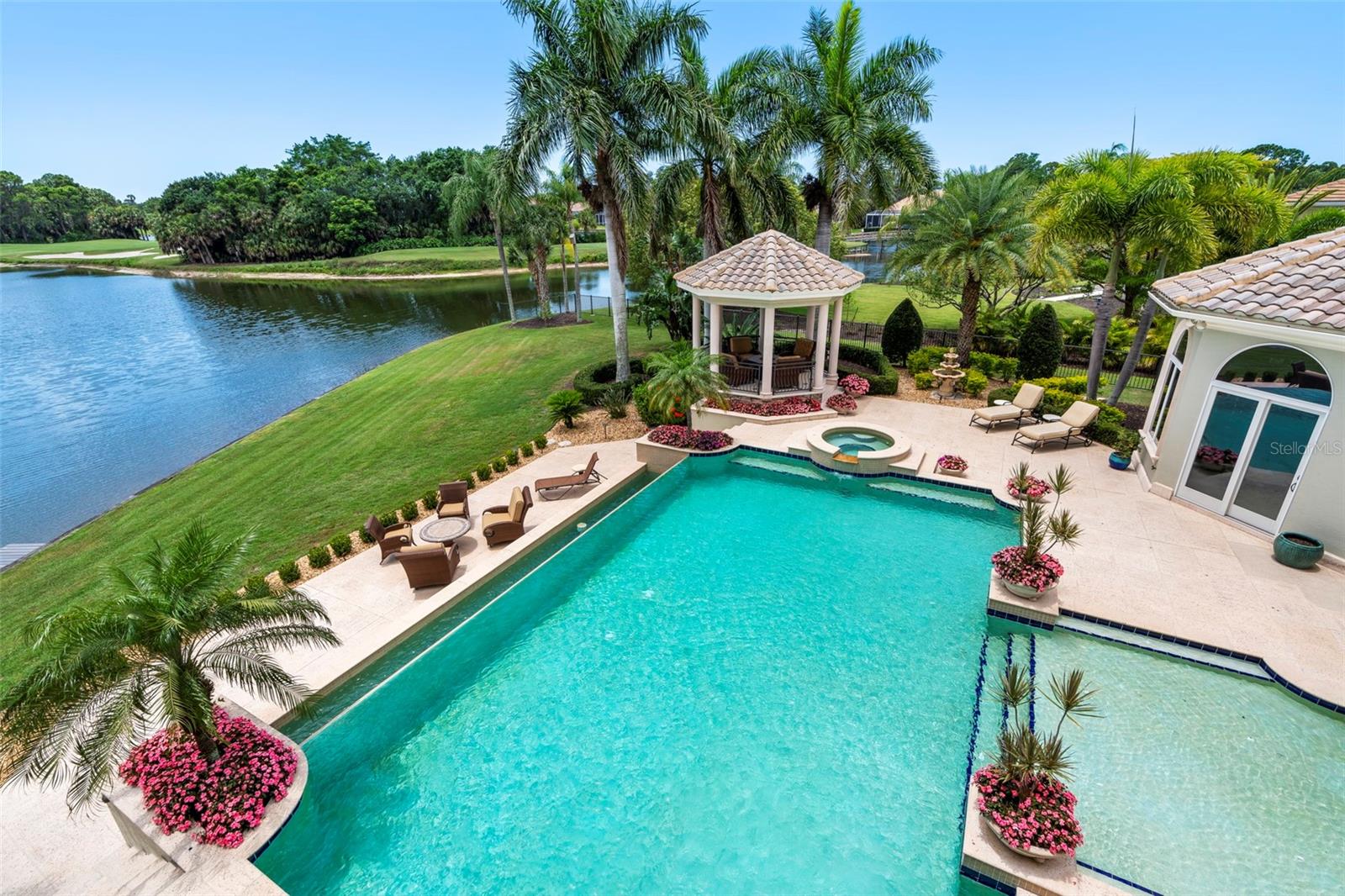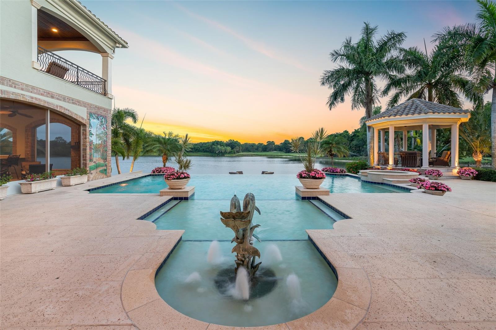 Dentro dos portões do University Park Country Club, no cobiçado enclave de Knightsbridge, esta notável residência combina arquitetura atemporal com atualizações modernas cuidadosas. Situada em ¾ acre e no maior lote à beira do lago do Parque, a casa desfruta de total privacidade com vistas deslumbrantes para o mar e o campo de golfe ao fundo. Construída por um dos principais construtores de Sarasota, a casa se distingue por uma piscina infinita ao ar livre e spa (revestidos e azulejos novos), fontes, um gazebo independente e paisagismo cuidado ao máximo. O interior com piso de travertino e tábuas de nogueira e marcenaria personalizada é uma prova do melhor artesanato. Os acabamentos eternos são aprimorados com paredes recém-pintadas, tratamentos de janela atualizados e outros refinamentos por toda parte. A cozinha do chef é uma verdadeira peça central, recentemente aprimorada com novas bancadas de quartzo. Armários personalizados, uma despensa de mordomo e eletrodomésticos premium incluem um fogão Wolf de seis bocas, forno de parede separado, duas geladeiras Sub-Zero, três máquinas de lavar louça e uma cafeteria Miele embutida - ideal para entretenimento em qualquer escala. Para quem anseia pela excelência na construção e pela elegância eterna – o talento neste ofício de carpintaria fina tornou-se mais precioso com o tempo. A suíte principal do primeiro andar possui armários personalizados, iluminação atualizada e persianas eletrônicas, uma lareira dramática, portas Anderson para a piscina e acesso a um pátio privado. No segundo nível, acessado por elevador ou uma grande escadaria, você encontrará uma sala de teatro para 8 pessoas, uma grande sala bônus com parede de mídia embutida, bar completo, suntuosa suíte de hóspedes e um terraço coberto. Os destaques adicionais incluem uma garagem com ar condicionado para 4 carros, entrada lateral, baía para carrinhos de golfe e uma arrecadação separada com ar condicionado. Um gerador para toda a casa, filtragem de água e RO, sistema de iluminação inteligente, cerca de alumínio mais recente para proteger todas as linhas de limite laterais traseiras, cozinha externa completa e blindada com lareira de pedra e sistema de áudio atualizado. Esta é uma vida em estilo resort em um dos principais clubes de campo fechados de Sarasota, que continua a desfrutar da reputação dos melhores (opcionais) esportes de golfe, tênis e raquete do mercado. Mixagens sociais e club dining fazem parte do estilo de vida. Aprecie a conveniência inequívoca da meca das compras do University Park, nas proximidades, dos restaurantes requintados, do Aeroporto Internacional SRQ e do centro de Sarasota, a apenas 20 minutos de carro.