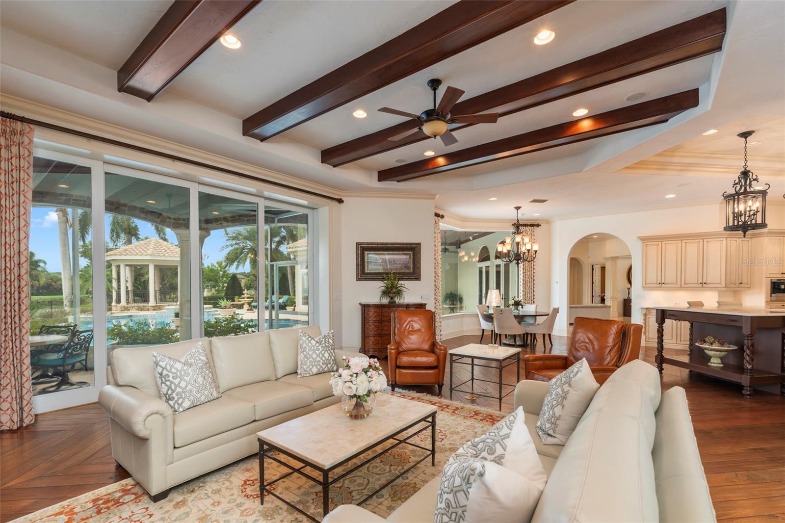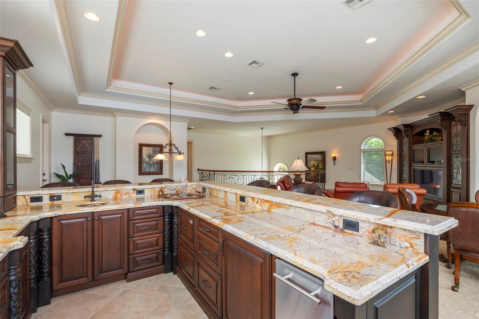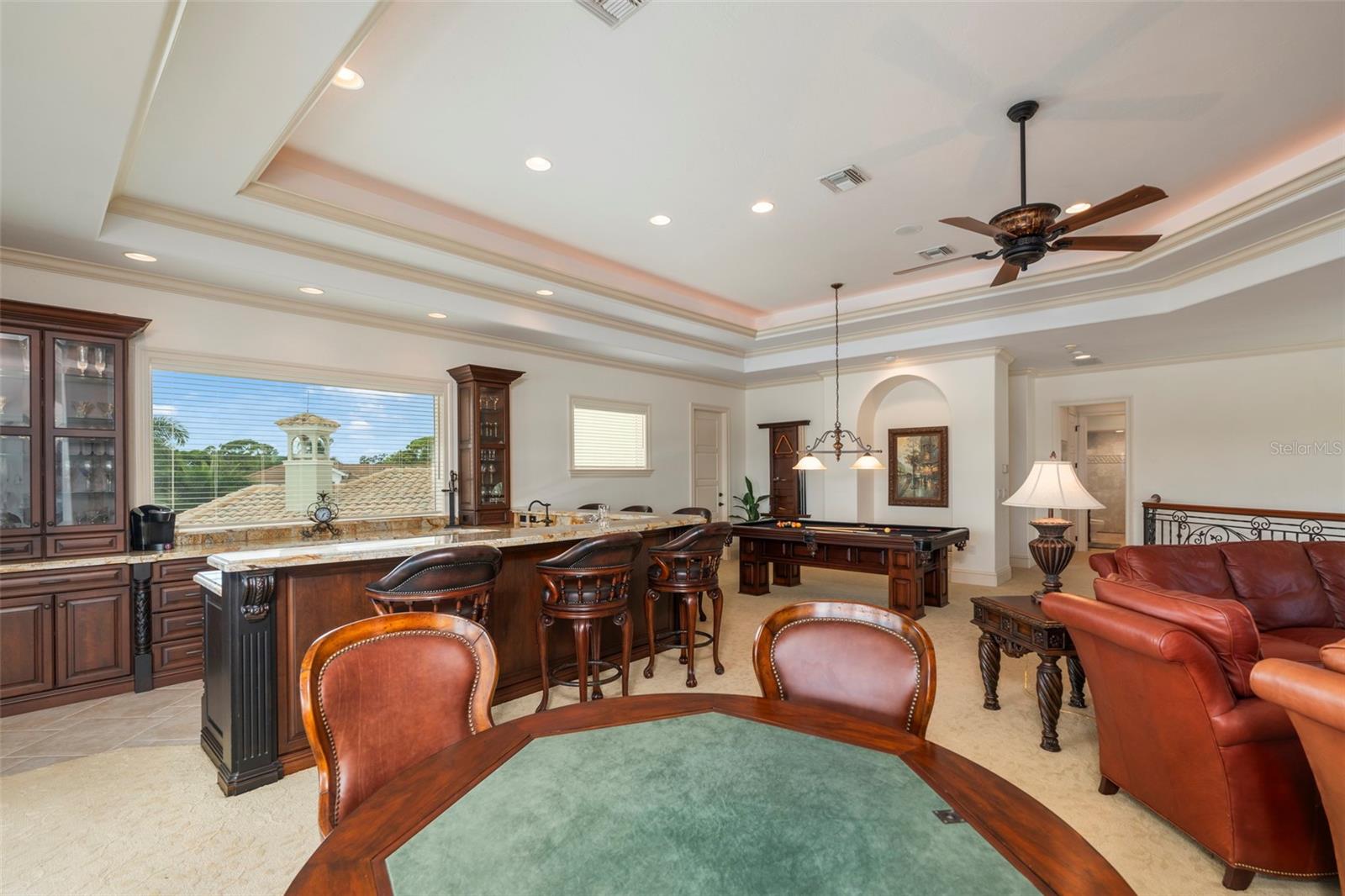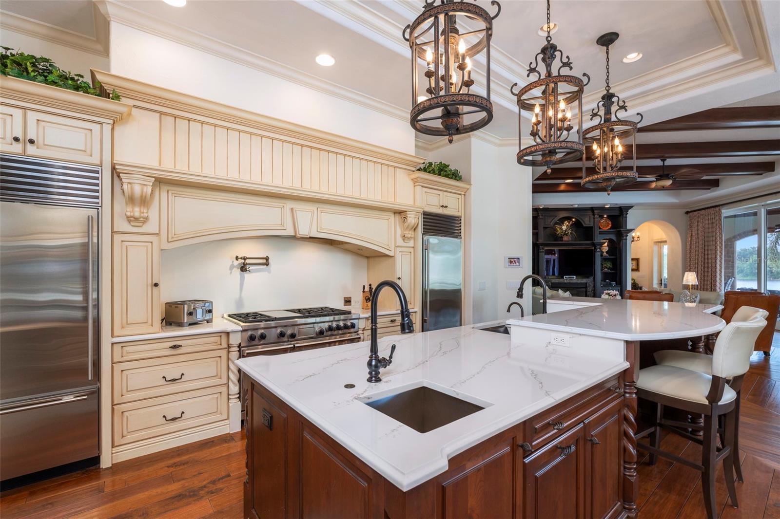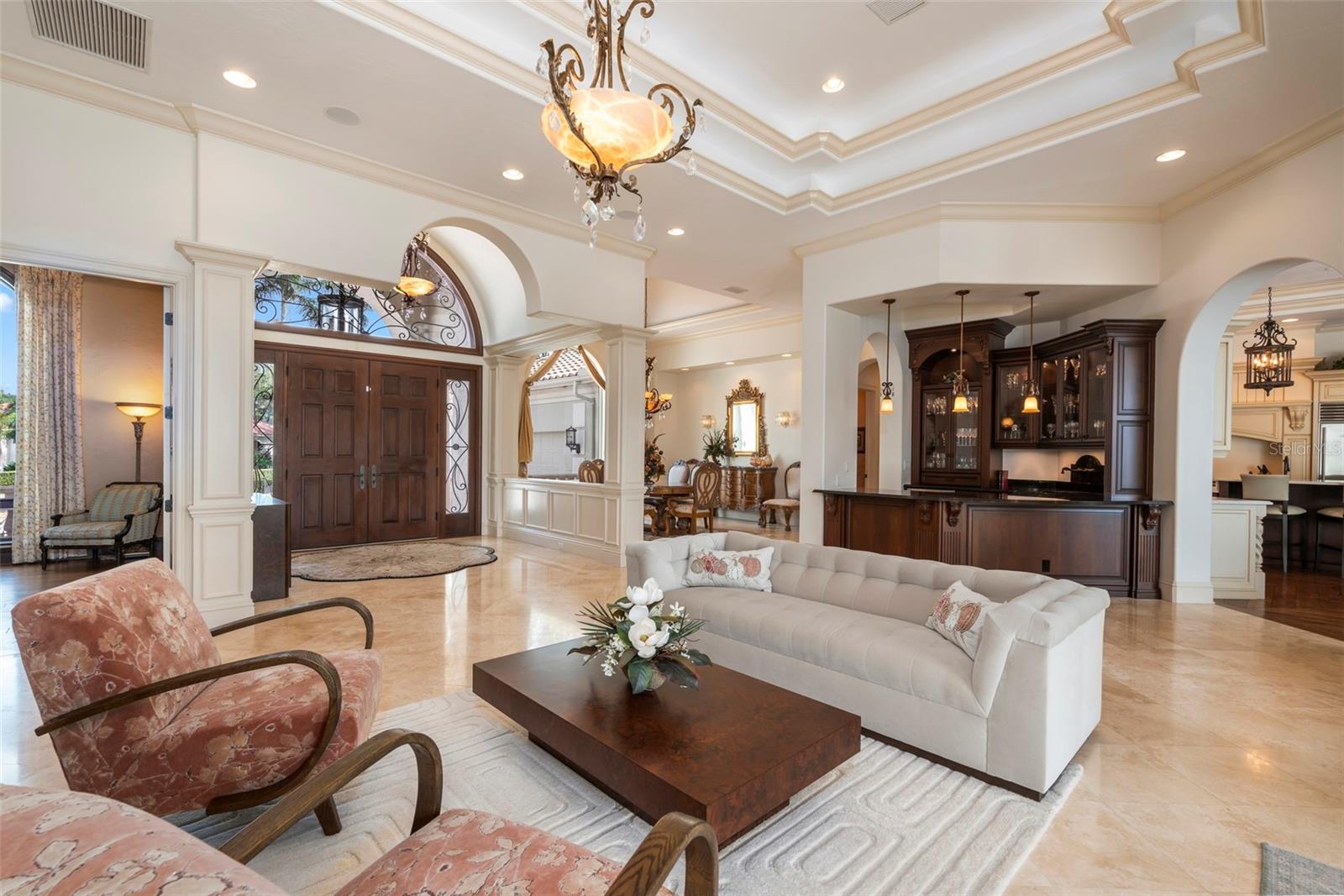 Dentro dos portões do University Park Country Club, no cobiçado enclave de Knightsbridge, esta notável residência combina arquitetura atemporal com atualizações modernas cuidadosas. Situada em ¾ acre e no maior lote à beira do lago do Parque, a casa desfruta de total privacidade com vistas deslumbrantes para o mar e o campo de golfe ao fundo. Construída por um dos principais construtores de Sarasota, a casa se distingue por uma piscina infinita ao ar livre e spa (revestidos e azulejos novos), fontes, um gazebo independente e paisagismo cuidado ao máximo. O interior com piso de travertino e tábuas de nogueira e marcenaria personalizada é uma prova do melhor artesanato. Os acabamentos eternos são aprimorados com paredes recém-pintadas, tratamentos de janela atualizados e outros refinamentos por toda parte. A cozinha do chef é uma verdadeira peça central, recentemente aprimorada com novas bancadas de quartzo. Armários personalizados, uma despensa de mordomo e eletrodomésticos premium incluem um fogão Wolf de seis bocas, forno de parede separado, duas geladeiras Sub-Zero, três máquinas de lavar louça e uma cafeteria Miele embutida - ideal para entretenimento em qualquer escala. Para quem anseia pela excelência na construção e pela elegância eterna – o talento neste ofício de carpintaria fina tornou-se mais precioso com o tempo. A suíte principal do primeiro andar possui armários personalizados, iluminação atualizada e persianas eletrônicas, uma lareira dramática, portas Anderson para a piscina e acesso a um pátio privado. No segundo nível, acessado por elevador ou uma grande escadaria, você encontrará uma sala de teatro para 8 pessoas, uma grande sala bônus com parede de mídia embutida, bar completo, suntuosa suíte de hóspedes e um terraço coberto. Os destaques adicionais incluem uma garagem com ar condicionado para 4 carros, entrada lateral, baía para carrinhos de golfe e uma arrecadação separada com ar condicionado. Um gerador para toda a casa, filtragem de água e RO, sistema de iluminação inteligente, cerca de alumínio mais recente para proteger todas as linhas de limite laterais traseiras, cozinha externa completa e blindada com lareira de pedra e sistema de áudio atualizado. Esta é uma vida em estilo resort em um dos principais clubes de campo fechados de Sarasota, que continua a desfrutar da reputação dos melhores (opcionais) esportes de golfe, tênis e raquete do mercado. Mixagens sociais e club dining fazem parte do estilo de vida. Aprecie a conveniência inequívoca da meca das compras do University Park, nas proximidades, dos restaurantes requintados, do Aeroporto Internacional SRQ e do centro de Sarasota, a apenas 20 minutos de carro.