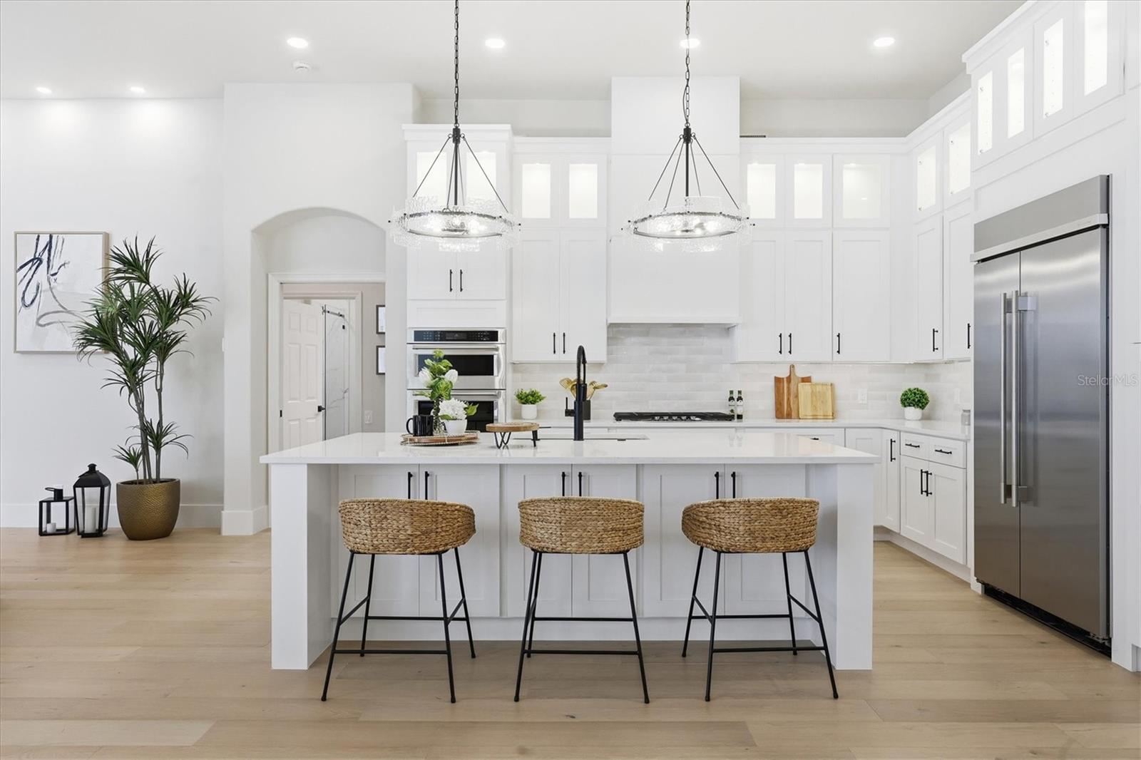Bem-vindo a uma residência extraordinária e totalmente remodelada no cobiçado condomínio fechado do University Park Country Club - um enclave famoso por suas paisagens exuberantes, golfe profissional e elegância arquitetônica atemporal. Esta casa impecavelmente redesenhada combina estilo glamoroso com conforto moderno, oferecendo um nível de qualidade e artesanato raramente encontrado no mercado atual. A partir do momento em que você chega, a propriedade causa uma impressão impressionante com seu telhado totalmente novo, acabamentos exteriores frescos e ambientes bem cuidados que dão o tom para a experiência de vida refinada que o aguarda no interior. Entre pela porta da frente e sinta imediatamente o luxo tranquilo que define esta casa. Os interiores foram completamente transformados com pisos de madeira de carvalho europeu de tábuas largas que percorrem toda a área, criando uma sensação contínua de fluxo e calor. Tetos altos, luz natural generosa e um layout aberto elevam todos os espaços, enquanto novas janelas e controles deslizantes de impacto não apenas melhoram a eficiência energética e a proteção contra tempestades, mas também enquadram vistas serenas da vegetação circundante. Armários personalizados, ferragens premium e elegantes bancadas de quartzo combinam perfeitamente com eletrodomésticos de nível profissional, oferecendo um ambiente inspirador para refeições diárias e entretenimento elevado. Uma ilha espaçosa ancora a sala, proporcionando o local de encontro perfeito para amigos e familiares. Perto dali, as áreas de estar e de jantar adjacentes criam uma conexão fácil entre interior e exterior, aprimorada por controles deslizantes retráteis que se abrem para a ampla varanda. A suíte principal é um santuário em si mesma, reimaginada com elementos de design tranquilos e acesso privado ao espaço ao ar livre. O banheiro principal inspirado em spa possui box amplo, banheira de imersão independente, pia dupla e azulejos selecionados que infundem uma sensação de luxo em nível de resort. As suítes de tamanho generoso garantem conforto e privacidade aos visitantes, enquanto os banheiros redesenhados refletem os mesmos acabamentos elevados encontrados em toda a casa. A vida ao ar livre é uma marca registrada da vida no University Park, e esta propriedade a abraça lindamente. A varanda coberta oferece um local convidativo para relaxar, jantar ou apreciar as vistas tranquilas que definem a comunidade. Com amplo espaço para melhorias ao ar livre, este espaço se torna uma extensão da elegância interior da casa - perfeito para o estilo de vida da Flórida durante todo o ano. Cada detalhe foi intencionalmente selecionado para oferecer conveniência, paz de espírito a longo prazo e apelo atemporal. Pronta para morar e com acabamentos de acordo com os mais altos padrões, esta casa oferece uma oportunidade excepcional de possuir um retiro refinado e contemporâneo em uma das comunidades mais desejadas da região.