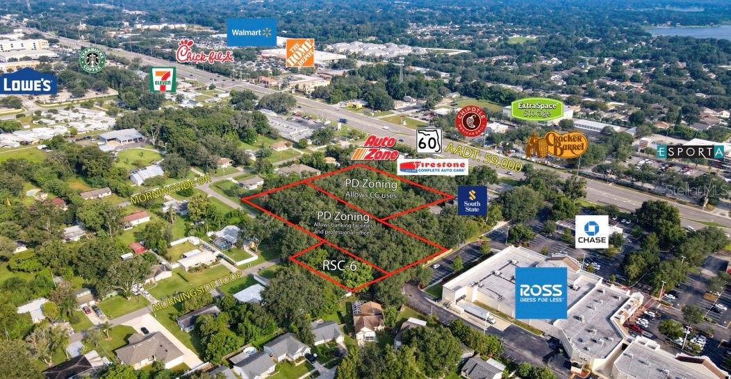 Este local tem 2,24 ± acres e está localizado entre SR 60 e Morningside Loop em Valrico, FL. A propriedade fica na saída da State Road 60 com uma grande oportunidade para varejo, escritório, hotel e/ou medicina, pois é cercado por vários grandes varejistas, como Publix, Walmart, Lowes, Home Depot, etc.