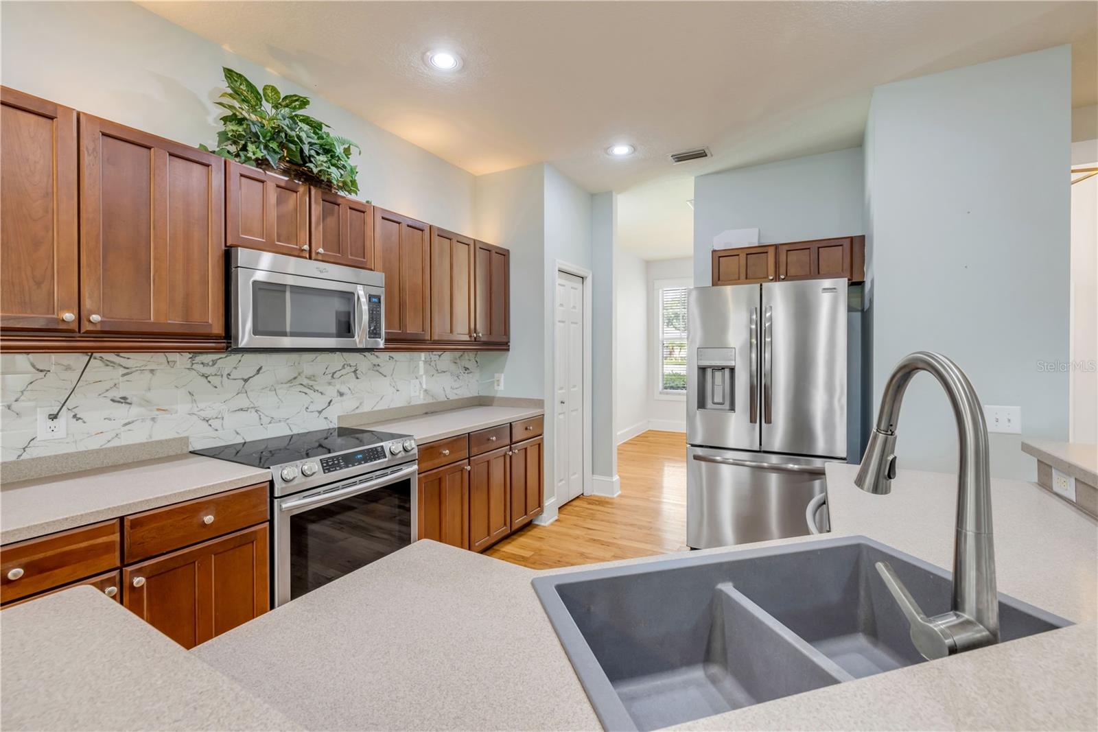 Bem -vindo ao seu retiro privado em um terço de um hectare, perfeitamente posicionado no icônico 14º "Hole Signature" do River Hills Country Club em Valrico. Esta casa de 4 quartos e 2,5 banheiros com uma garagem de 3 carros com piso epóxi e uma espaçosa sala de loft/bônus fica no final de um beco sem saída tranquilo, oferecendo privacidade e vistas deslumbrantes do campo de golfe. O layout aberto apresenta um hall de entrada, jantar formal com um passe para a cozinha e uma grande sala que flui perfeitamente para a cozinha do chef com utensílios de aço inoxidável, armários de madeira e uma grande ilha com assentos de bar de café da manhã. A suíte do proprietário do primeiro andar inclui armários duplos e um banheiro com bancadas em granito, pias duplas, um chuveiro de vidro sem costura e um armário de água privado. No andar de cima estão três quartos adicionais, um banheiro completo e um espaço versátil de loft. Do lado de fora, desfrute de uma varanda pizada com uma fogueira e uma cozinha ao ar livre equipada com uma grade de aço inoxidável, refrigerador de bebidas, assentos de bar e conexão de TV. O grande quintal oferece espaço para animais de estimação e brincar sob carvalhos maduros. O River Hills Country Club oferece trilhas, piscina, playground, quadras esportivas e associações opcionais de tênis e golfe. Convenientemente localizado próximo a escolas, compras, refeições e grandes rodovias, esta casa oferece uma rara combinação de privacidade, espaço e comodidades comunitárias.