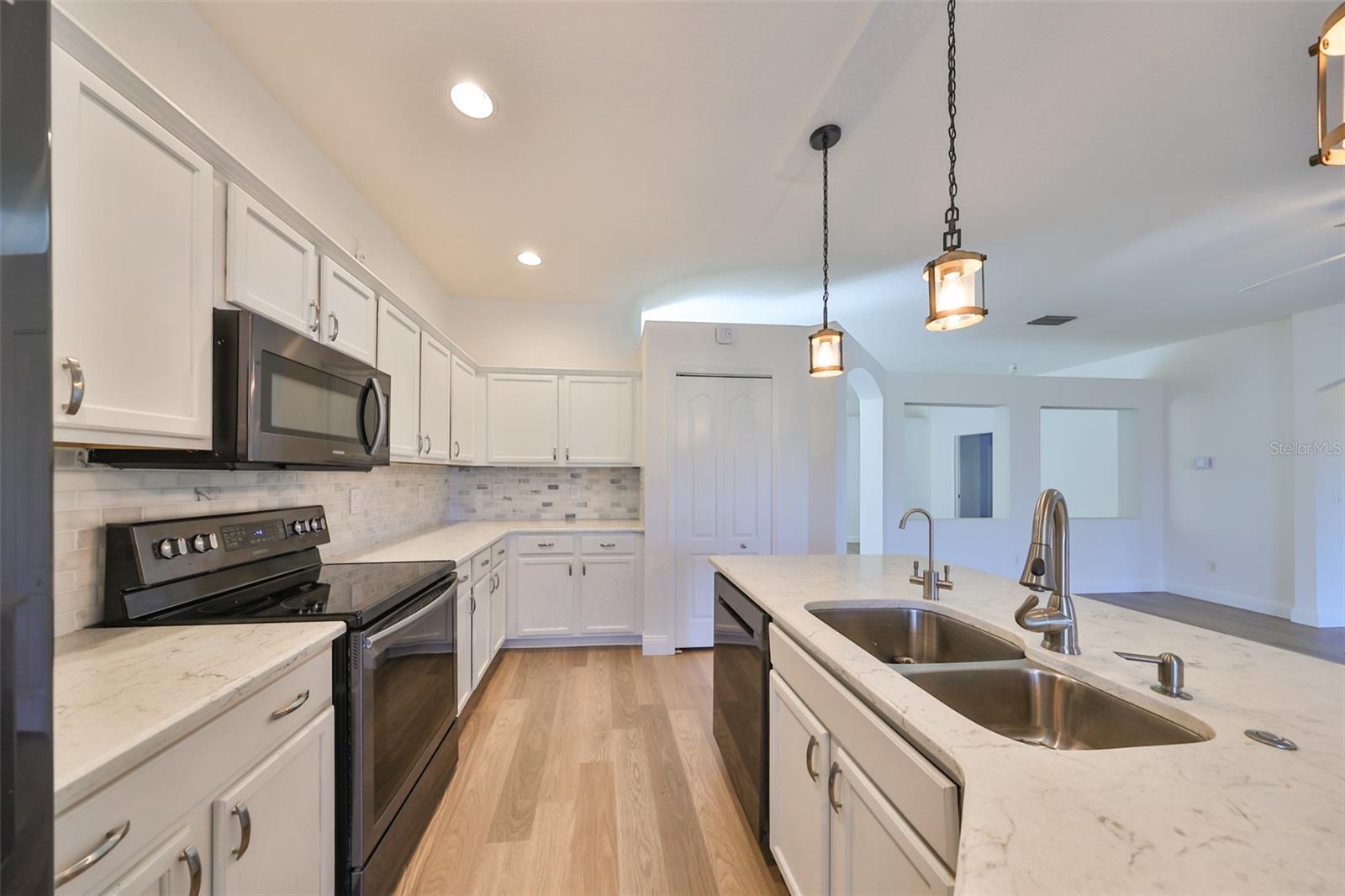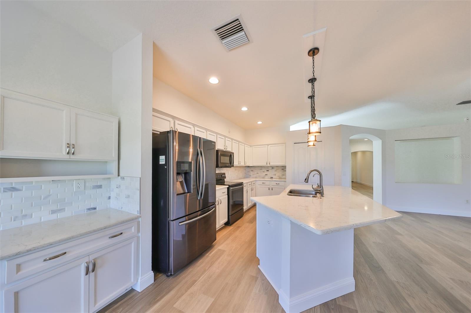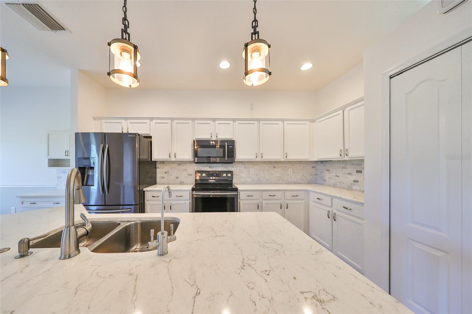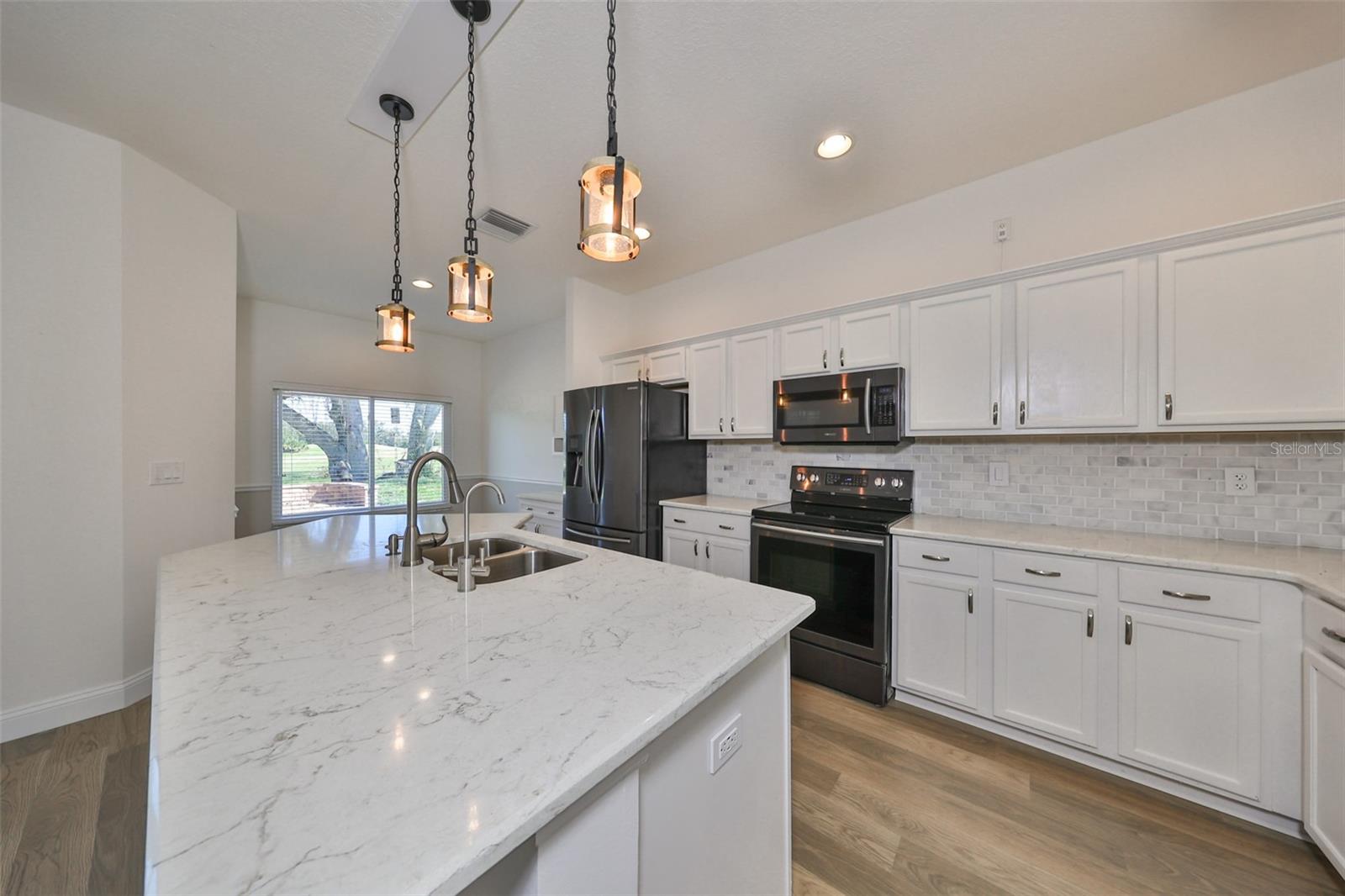 O vendedor que oferece US $ 10.000 para a taxa de juros do comprador e/ou os custos de fechamento .... Esta espaçosa casa de banheiros de 4 quartos de 4 quartos é uma jóia sentada no campo de golfe com vista para os 14º verde, com características que o tornam não apenas bonito, mas resistente aos furacões e eficientes em termos energéticos. O pátio traseiro de 500 sf pavimentador SF é o local de encontro familiar perfeito, perfeito para churrascos e festas. A cozinha atualizada possui aparelhos mais recentes, belos balcões de granito, um backsplash decorativo do metrô, armários de madeira novos, uma ilha com pia do país com um filtro de osmose reversa de 5 estágios, incluindo água quente instantânea. Eu mencionei o café e o armário embutidos e convenientemente localizados entre cozinha e lanchonete. Aproveite essa vista ao ar livre e sinta -se seguro com o novo furacão classificado com janelas em toda a casa com uma garantia vitalícia contra a quebra. Mantenha-se aconchegante o ano todo com isolamento R-31 adicional no sótão, bem como os benefícios isolados das janelas. O piso de madeira laminado de mohawk de luxo é executado nas áreas de estar e facilita o cuidado, além de durabilidade, e é acentuado com rodapés de 5 1/4 ". A suíte do grande proprietário tem vista para o espaçoso quintal, além de ter um closet de candidatos. Privacidade para todos. As calhas são garantidas para a vida.