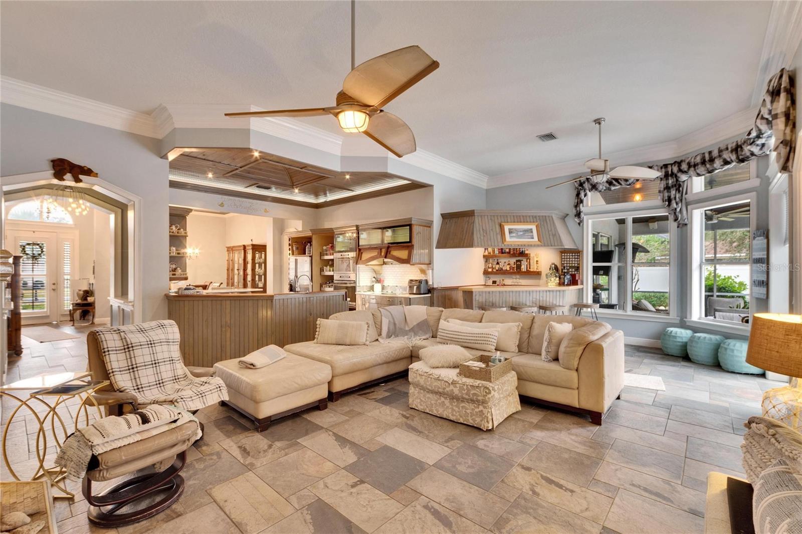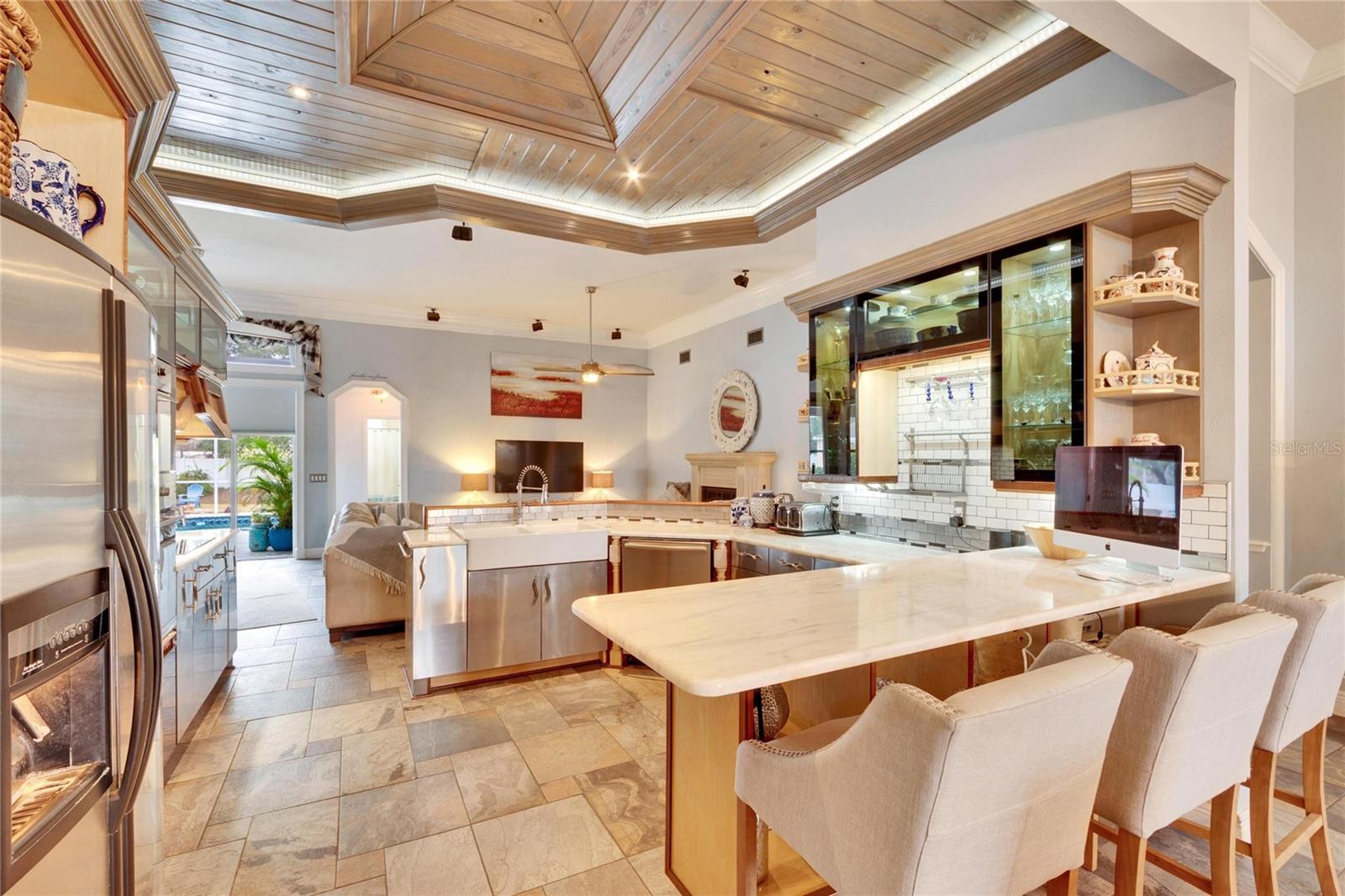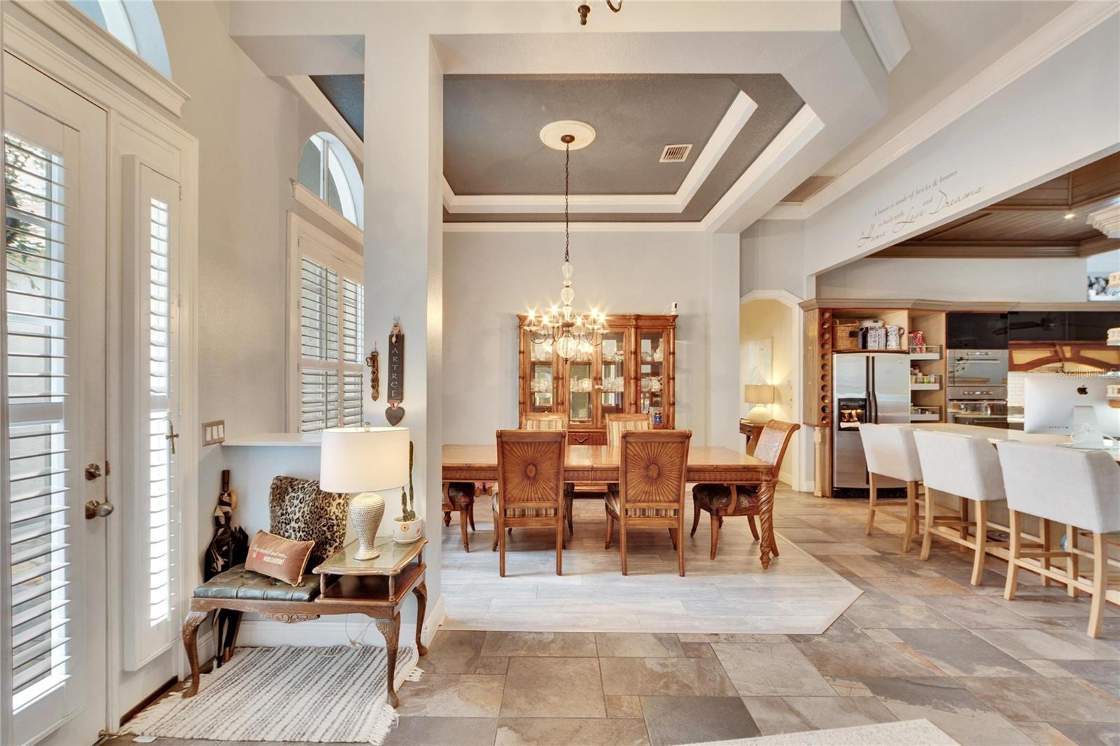 "Fotos Don't Lie" é uma representação precisa que captura a realidade desta bela casa personalizada. Localizado na comunidade desejável e fechada de Bonterra, esta casa de 5 quartos com 4 banheiros está cheia de caráter com seus recursos e atualizações personalizadas de alta qualidade. Desde os tetos altos até o piso de ardósia, moldagem de coroa personalizada, rodapés/acabamentos atualizados, tetos personalizados, persianas de plantações e muito mais, isso é uma casa obrigatória! A planta aberta incentiva você a deslizar por esta casa, apreciando seu aparente "orgulho de propriedade" em todos os cantos. A área de bônus no andar de cima inclui um espaço, quarto e banheiro completo (pintado na hora), criando os alojamentos privados perfeitos para sogros, adolescentes e familiares adultos. As características dignas de nota incluem uma cozinha personalizada de "Chef's Kiss" com utensílios SS, capuz de Walnut Range, armazenamento de vinhos de nogueira, iluminação de armários, bancadas de mármore e backsplash de ladrilhos; Um grande trimestre primário com banheiro completo, sala de estar e acesso ao Lanai; 3 Addl no primeiro andar quartos; Uma barra de nogueira personalizada; Um gazebo personalizado; E uma lavanderia dedicada. As comodidades/atualizações incluem: um embutido de piso de beisebol personalizado na área de bônus, lareira elétrica embutida e alto-falantes de Bose na área de estar principal, telhado 2020, AC (1) 2020, 3 dos 4 banheiros foram pintados recém-pintados, novo quente AQUECEDOR DE ÁGUA. Perto de Tampa, McDill Air Force Base, restaurantes e compras.