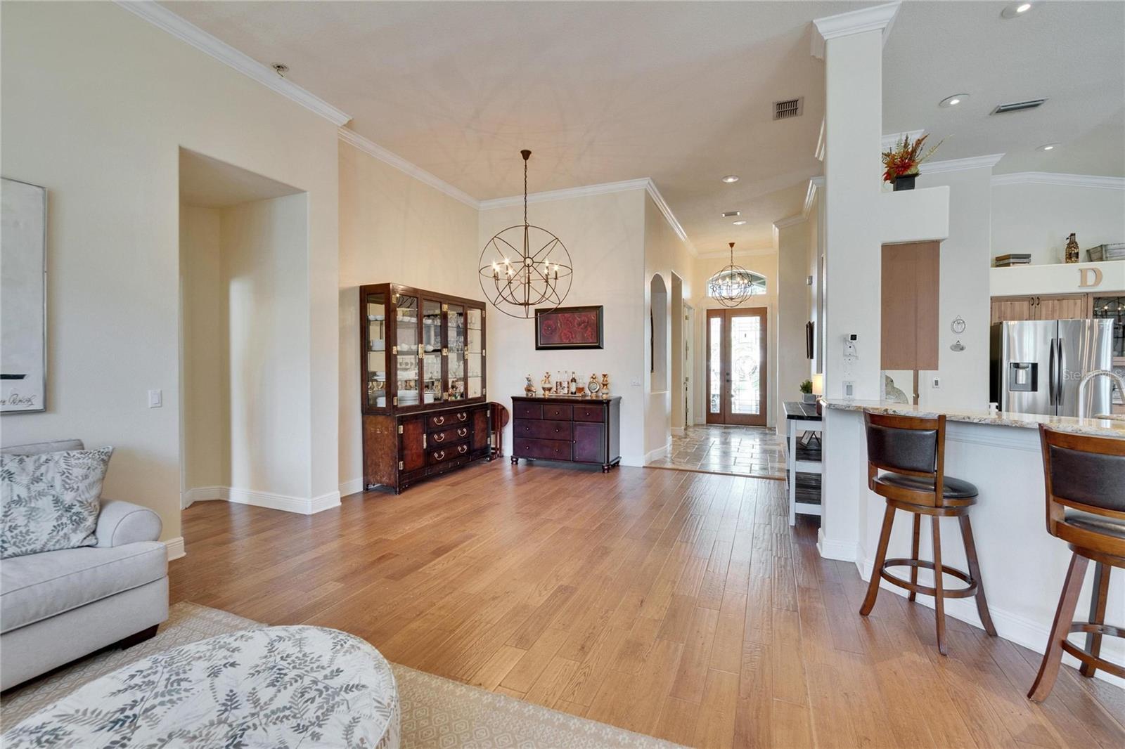 Bem -vindo para casa! Esta bela casa de 3 quartos e 2 banheiros na comunidade de Country Clube de River Hills, procurada, é imperdível! Desde o momento em que você passa pela porta da frente, você será recebido por uma casa bem mantida com uma planta aberta e inúmeras atualizações. Você vai adorar os lustres elegantes, acessórios atualizados e armários de cozinha personalizados. A casa possui lindos pisos de mármore e madeira em todas as áreas comuns, além de bancadas em granito na cozinha e nos banheiros. A cozinha também inclui iluminação insuficiente, gavetas de perto e uma pia da fazenda. Com persianas, armários personalizados e uma despensa espaçosa, esta casa foi cuidadosamente projetada com conveniência e estilo em mente. Além disso, o piso de garagem revestido com epóxi acrescenta um toque elegante! A suíte do proprietário de grandes dimensões é realmente um retiro, oferecendo um banheiro elegante em suíte com vaidades duplas, uma banheira de imersão relaxante e um grande closet. As portas duplas levam ao adorável lanai exibido, perfeito para apreciar seu quintal privado e cercado. River Hills é conhecido por suas comodidades excepcionais, incluindo segurança tripulada 24/7, um clube, campo de golfe recentemente atualizado, trilhas para caminhadas, parques e quadras de basquete e tênis. A localização é ideal, com excelentes escolas, restaurantes, compras e fácil acesso às principais estradas. Esta casa tem tudo! Não perca a chance de torná -lo seu. Agende sua exibição hoje!