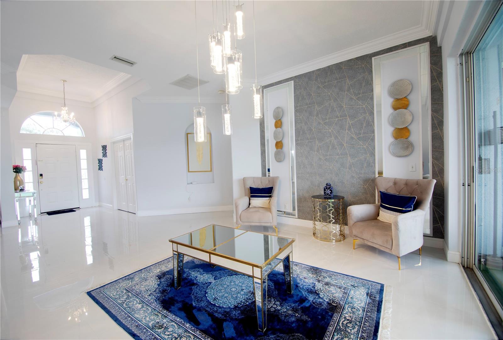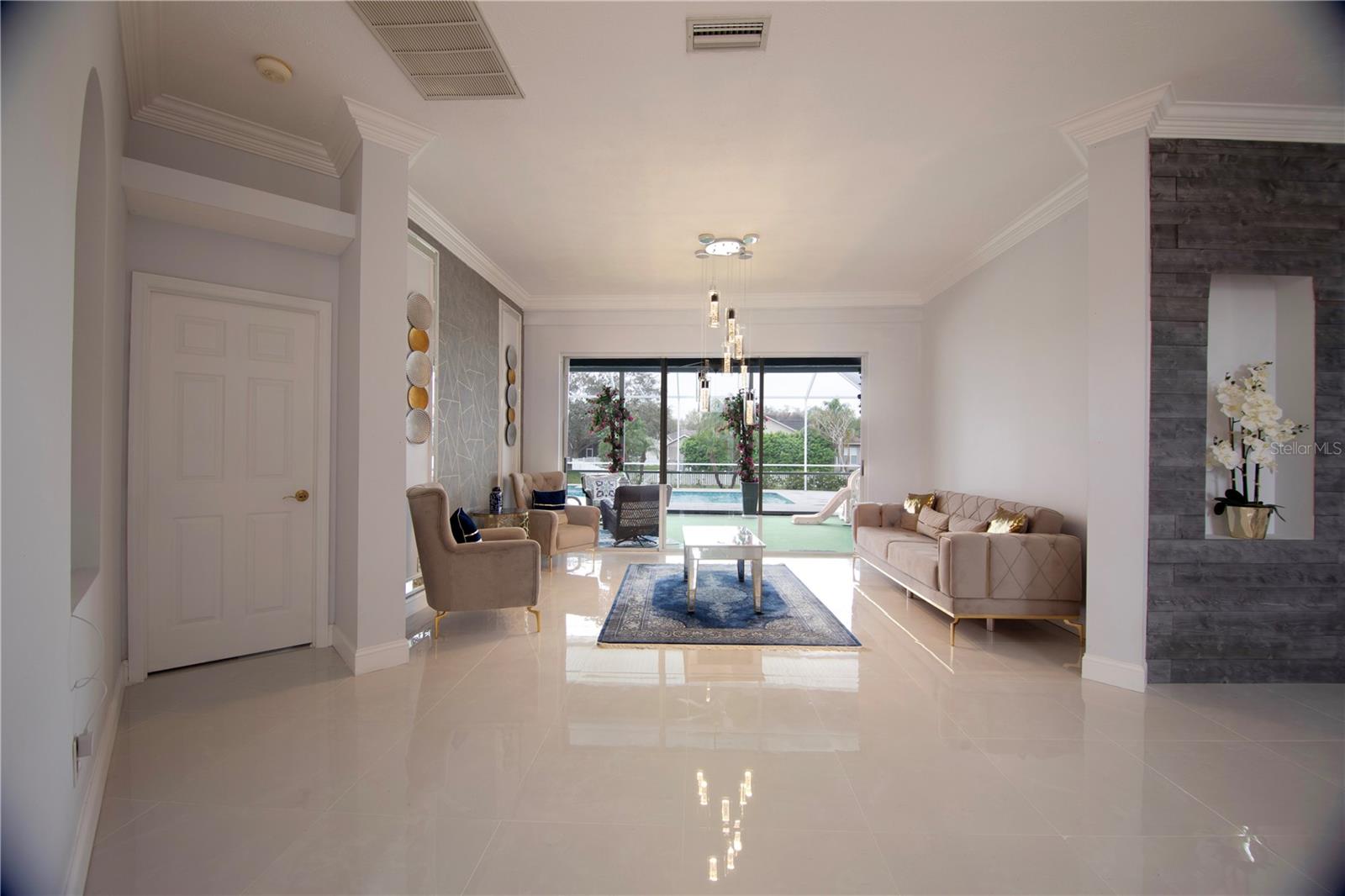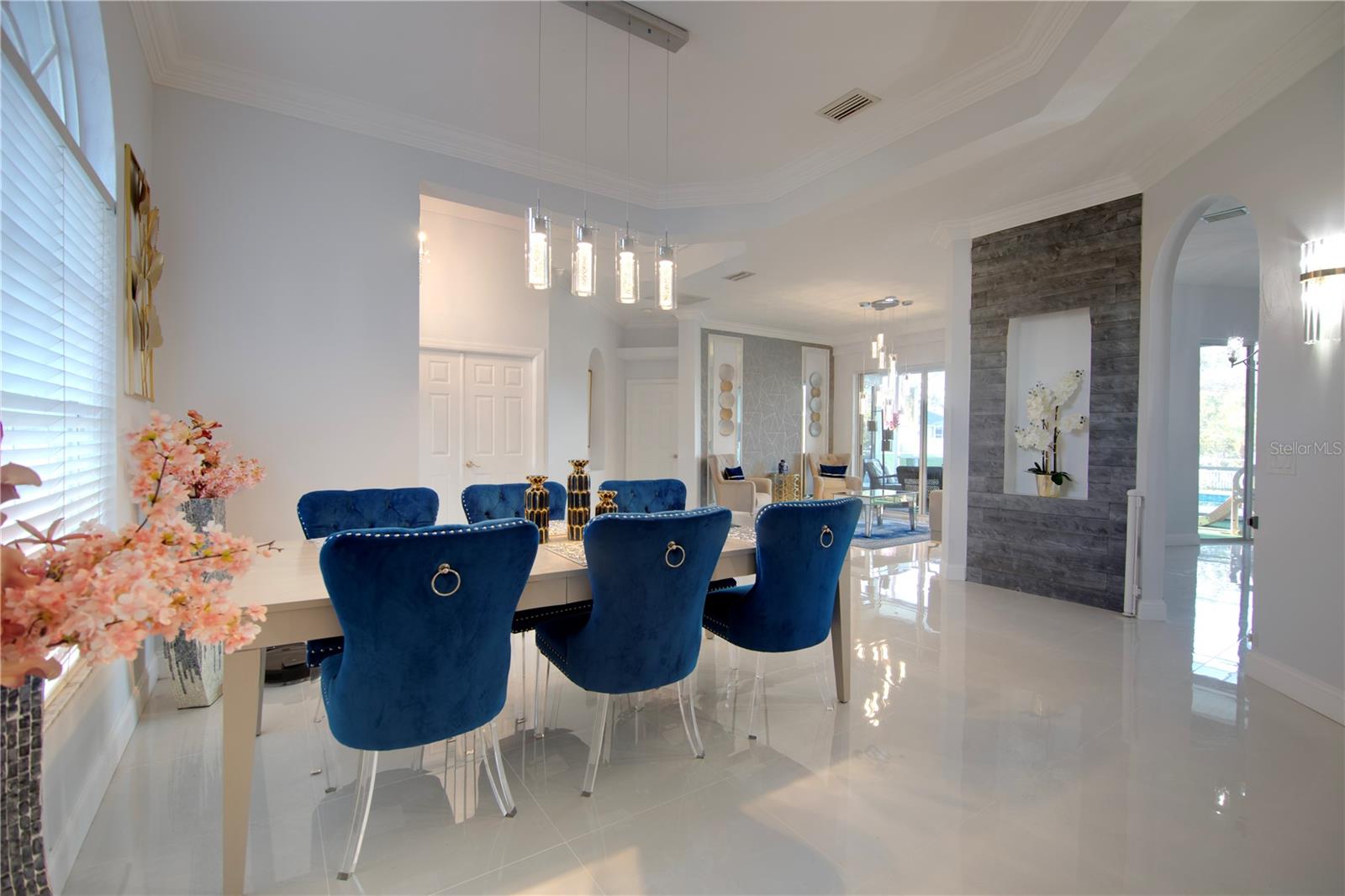 Casa elegante na comunidade de campos de golfe tranquila da Family Friendly Bloomingdale, aproveite sua piscina privada sem vizinhos diretos no quintal Esta casa fica perto de tênis/basquete/racquetball/vôlei e playground. Esta casa foi meticulosamente cuidada e atualizada para novos pisos, piscina nova e nova unidade de A/C. Desde o momento em que você entra, você notará a atenção a detalhes, como a bela moldagem da coroa em hall de entrada e teto da bandeja da sala de jantar. Quarto principal muito espaçoso tem portas de vidro deslizantes para a lanchonete coberta, armários e banheiros mestres igualmente espaçosos com banheira de jardim e chuveiro separado. As atualizações recentes incluem novo ar condicionado, banhos com paredes de azulejos de travertino e piso e pia de embarcação. Esta casa não estaria completa sem a lareira a lenha na sala da família, portas de vidro deslizantes de 8 'que levam ao lanei coberto e ao pátio estendido, perfeito para uma reunião externa ou cozinhar. O enorme quinto quarto com banheiro completo sobre a garagem pode ser usado como uma sala de bônus/mídia. Separe espaço para escritório e sala separada apenas para a lavanderia -completa com armários.