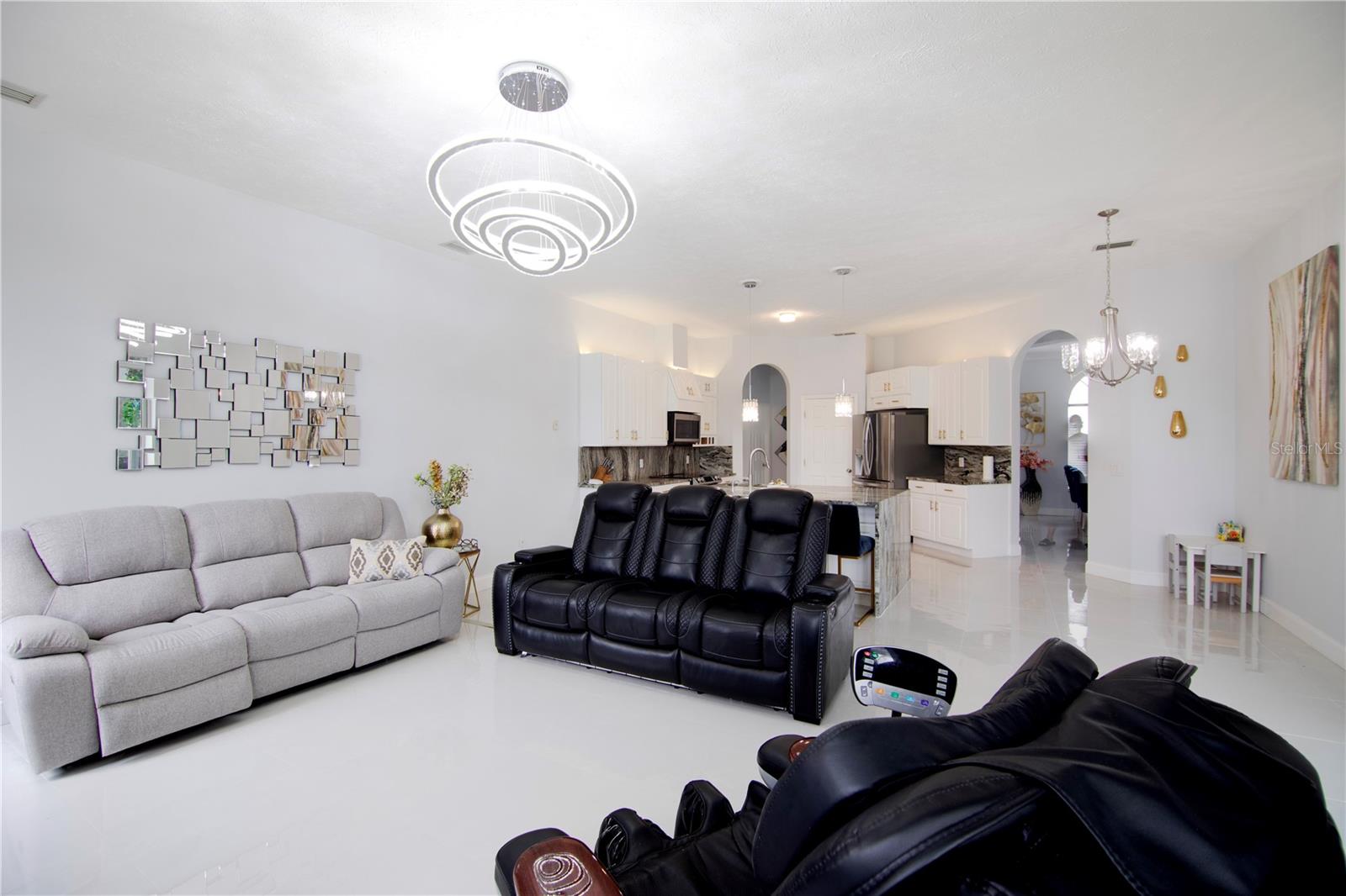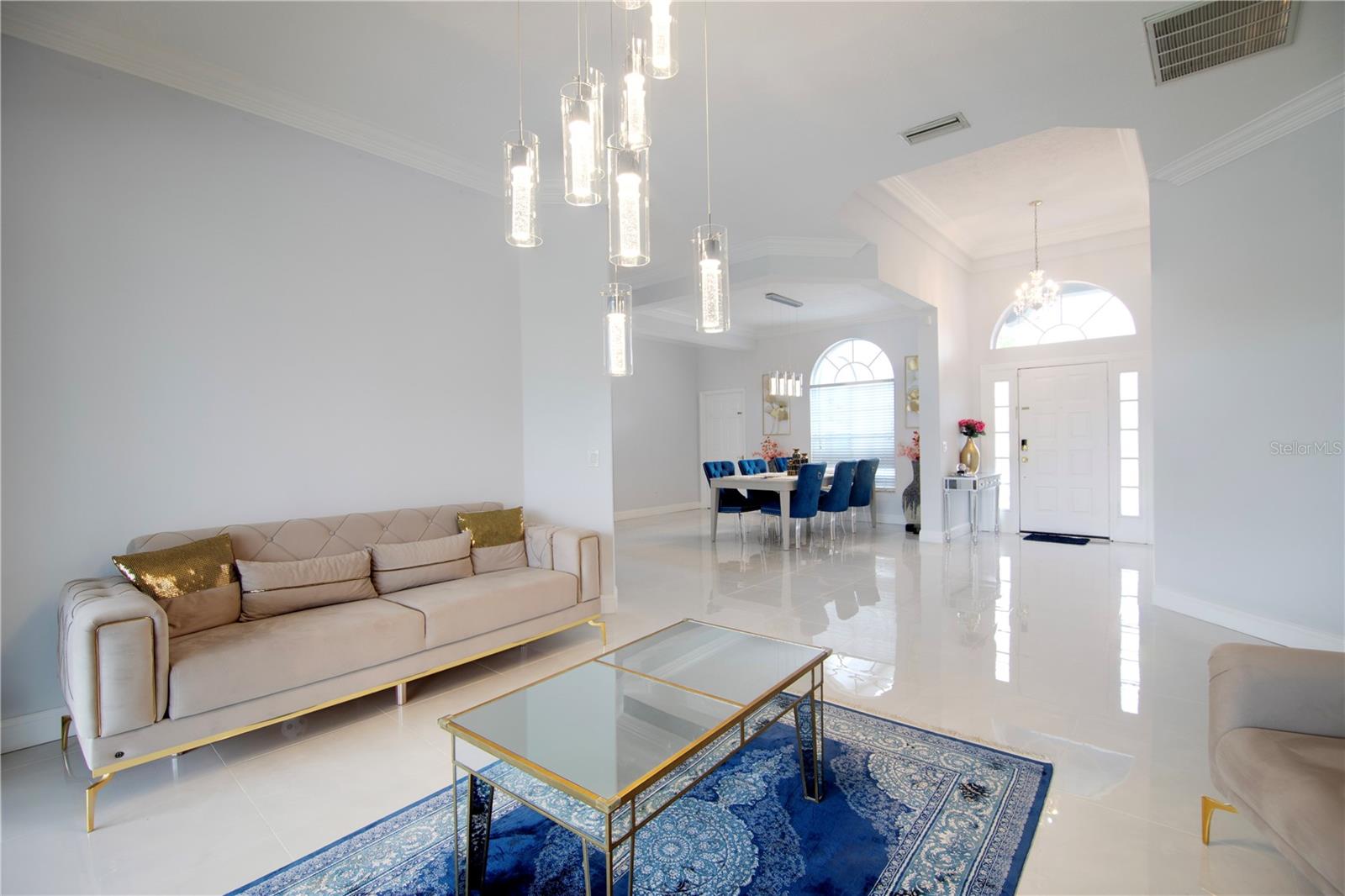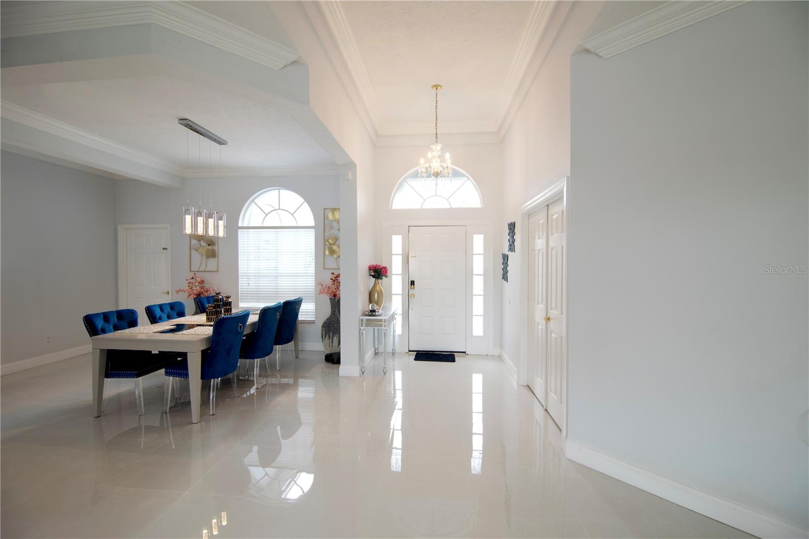 Casa elegante na comunidade de campos de golfe tranquila da Family Friendly Bloomingdale, aproveite sua piscina privada sem vizinhos diretos no quintal Esta casa fica perto de tênis/basquete/racquetball/vôlei e playground. Esta casa foi meticulosamente cuidada e atualizada para novos pisos, piscina nova e nova unidade de A/C. Desde o momento em que você entra, você notará a atenção a detalhes, como a bela moldagem da coroa em hall de entrada e teto da bandeja da sala de jantar. Quarto principal muito espaçoso tem portas de vidro deslizantes para a lanchonete coberta, armários e banheiros mestres igualmente espaçosos com banheira de jardim e chuveiro separado. As atualizações recentes incluem novo ar condicionado, banhos com paredes de azulejos de travertino e piso e pia de embarcação. Esta casa não estaria completa sem a lareira a lenha na sala da família, portas de vidro deslizantes de 8 'que levam ao lanei coberto e ao pátio estendido, perfeito para uma reunião externa ou cozinhar. O enorme quinto quarto com banheiro completo sobre a garagem pode ser usado como uma sala de bônus/mídia. Separe espaço para escritório e sala separada apenas para a lavanderia -completa com armários.