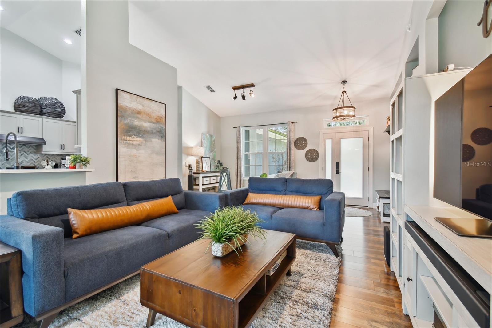 Completamente atualizado com todos os novos acabamentos por dentro e por fora. Esta casa de piscina lindamente renovada está situada na comunidade de golfe segura e dependente do River Hills Country Club e é dividida em escolas de melhor classificação. Apresentando três quartos e dois banheiros, a propriedade possui uma cozinha gourmet com utensílios de aço inoxidável preto, bancadas de quartzo e armários de close de close macio no estilo Shaker. Tetos abobadados e portas de vidro deslizantes na sala estendem o espaço para a área serena de Lanai e piscina, completa com uma característica de água no estilo de pedra e fontes de fluxo lateral. A suíte primária oferece um closet personalizado e um banheiro totalmente atualizado. É importante ressaltar que o seguro contra inundações não é exigido pelo credor atual. As atualizações significativas incluem um teto de 50 anos instalado em 2016, novo HVAC, aquecedor de água e janelas e portas com classificação de furacões adicionadas em 2022.