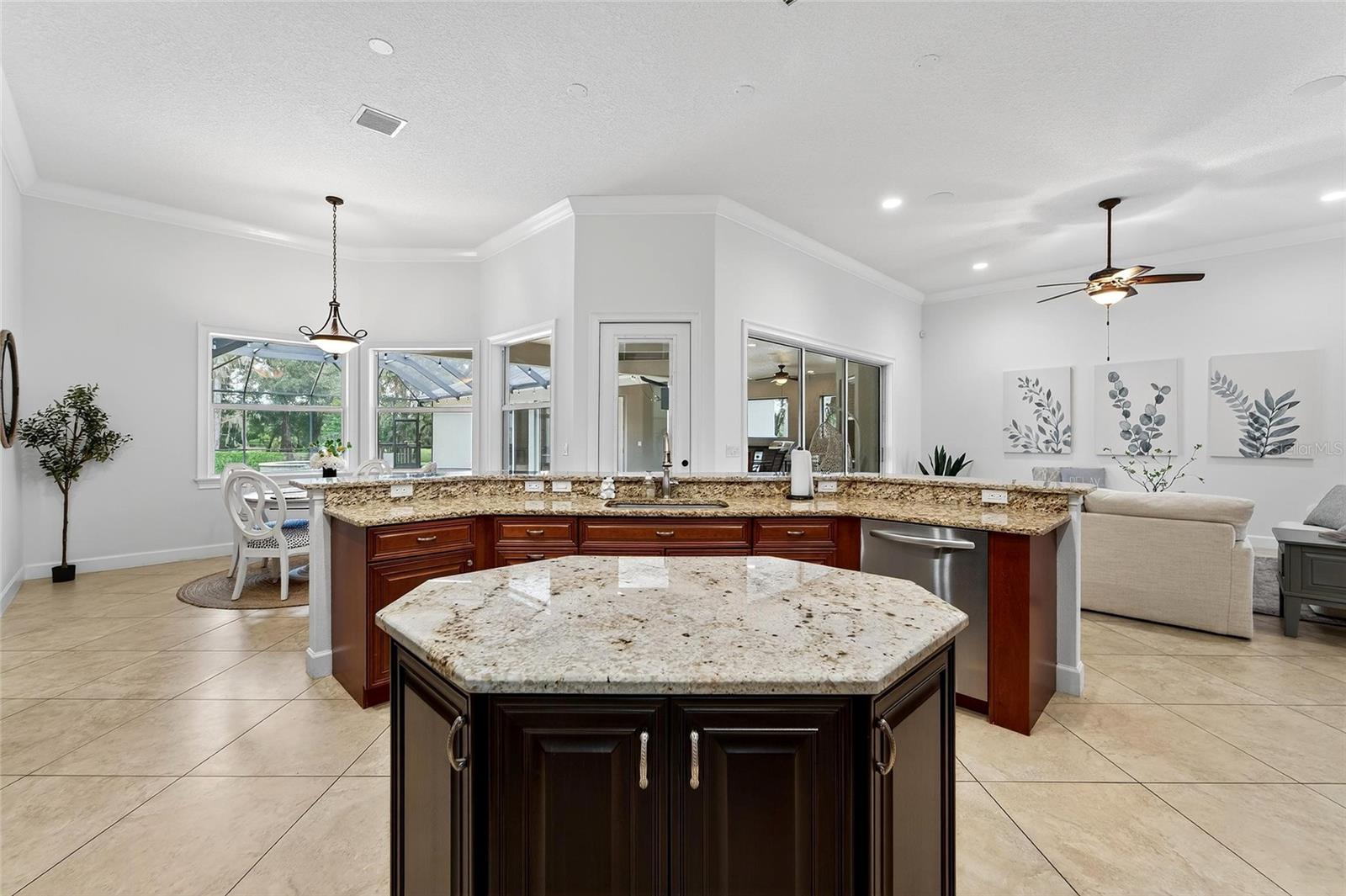 Estrada Culbreath 4411 | Valrico | 5 camas | 5 banheiros | 5.452 pés quadrados | Sem HOA | Sem CDD Bem-vindo ao 4411 Culbreath Road - quase um acre de vida flexível com espaços para trabalho, lazer e facilidade diária. No interior, o nível principal apresenta uma planta aberta que flui para uma cozinha de grandes dimensões com bancadas de pedra e eletrodomésticos de aço inoxidável, projetada tanto para culinária séria quanto para reuniões casuais. A cozinha se abre para uma sala de estar repleta de luz e para áreas de jantar casuais e formais com vista para a piscina e para o amplo quintal. Um verdadeiro layout dividido mantém a suíte principal privada em um lado da casa. Possui tetos retangulares com sancas, dois closets espaçosos e uma banheira inspirada em spa com pias duplas, banheira de imersão e box amplo. As portas francesas vão diretamente para a varanda. No lado oposto da casa, você encontrará todos os quartos secundários e as escadas para uma suíte principal no andar de cima com varanda com vista para a piscina. Uma suíte acessível no primeiro andar com entrada separada oferece uma configuração prática para uma vida multigeracional ou uma suíte para cuidadores. A vida ao ar livre é marcada: piscina de água salgada, spa aquecido a gás e varanda coberta com cozinha externa e churrasqueira a gás embutida. Dois prédios independentes ampliam suas opções - um com acabamento como escritório/estúdio com cozinha e lavabo, o outro como um grande espaço flexível ao lado da piscina com lavabo (perfeito para academia, ponto de encontro de adolescentes ou cabana). Completando: garagem para 4 carros, portão de segurança e câmeras, portas externas resistentes a furacões e isolamento de sótão com espuma em spray para eficiência energética. Itens essenciais do dia a dia, parques e rotas de deslocamento estão por perto - venha ver como esta casa personalizada se adapta facilmente à sua vida.