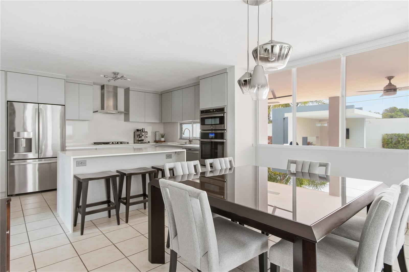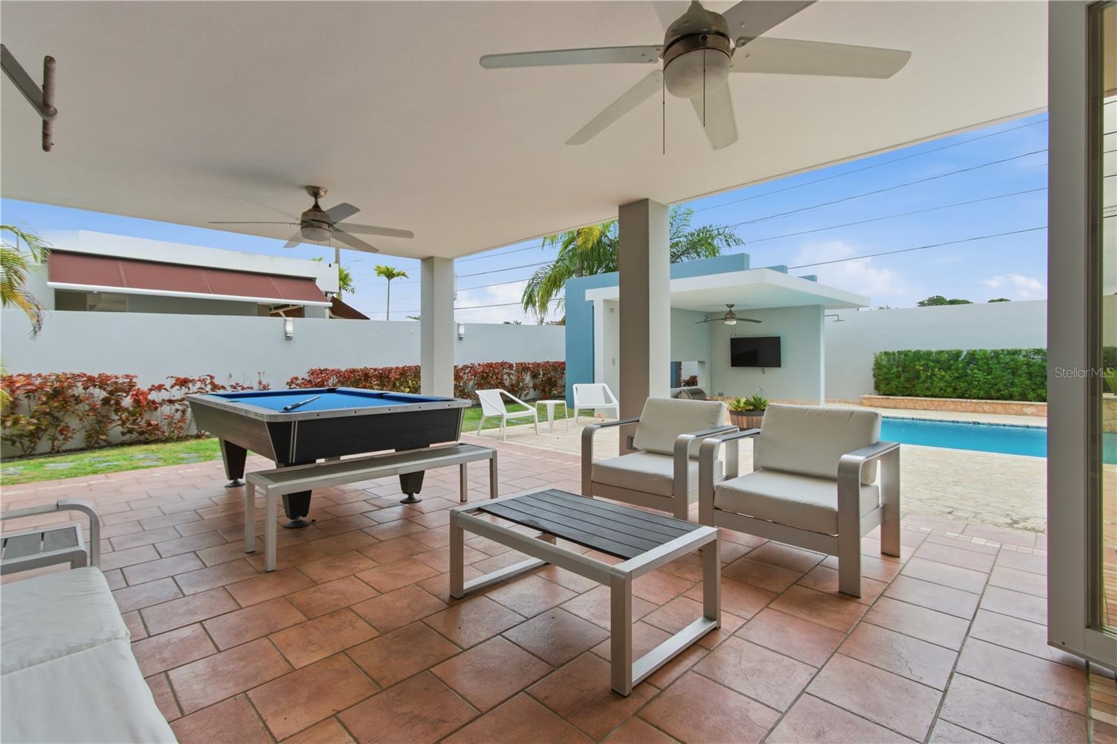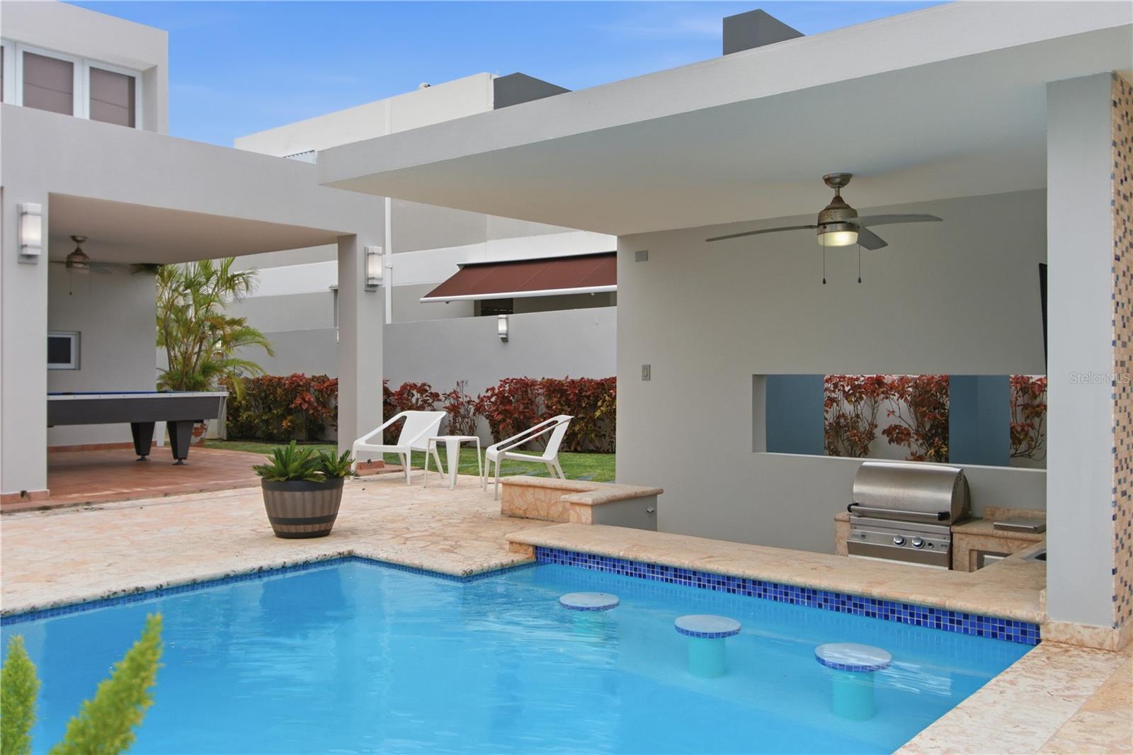 Residência principal localizada no condomínio fechado e familiar de Villas de la Playa em Vega Baja, a poucos passos da praia. A residência é definida por um layout cuidadosamente composto onde amplas janelas emolduram a piscina, permitindo que a luz natural permeie a sala e a cozinha, mantendo uma conexão visual constante com o exterior. As áreas de estar transitam perfeitamente para um terraço coberto projetado para diversão e entretenimento diário, com um bar dedicado e área para churrasco. A piscina funciona como elemento central, ancorando os espaços interiores e exteriores com facilidade e continuidade. A suíte principal está situada no segundo nível e se abre para um terraço privativo, oferecendo um retiro calmo e bem proporcionado. O layout geral equilibra abertura com privacidade, proporcionando uma vida confortável em tempo integral. Os recursos adicionais incluem um sistema de energia de reserva completo, acesso controlado e um ambiente residencial tranquilo próximo ao litoral.