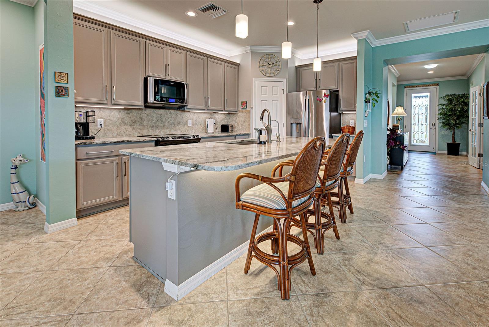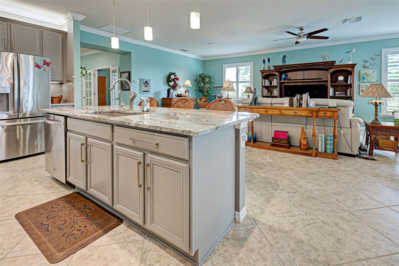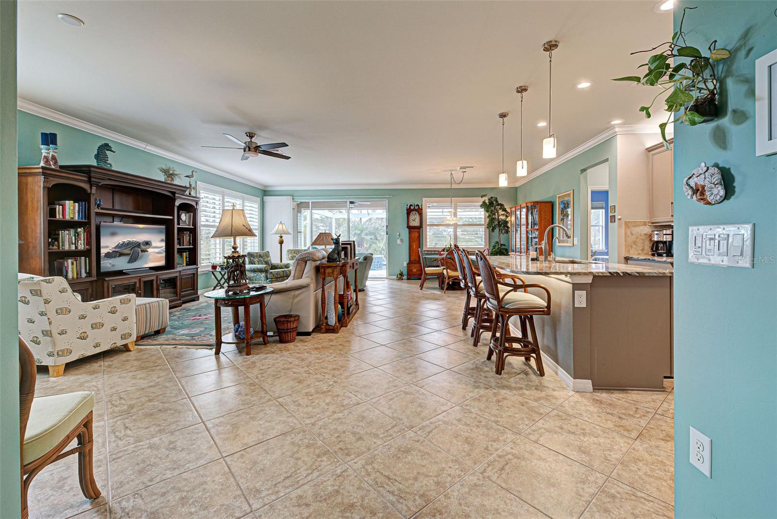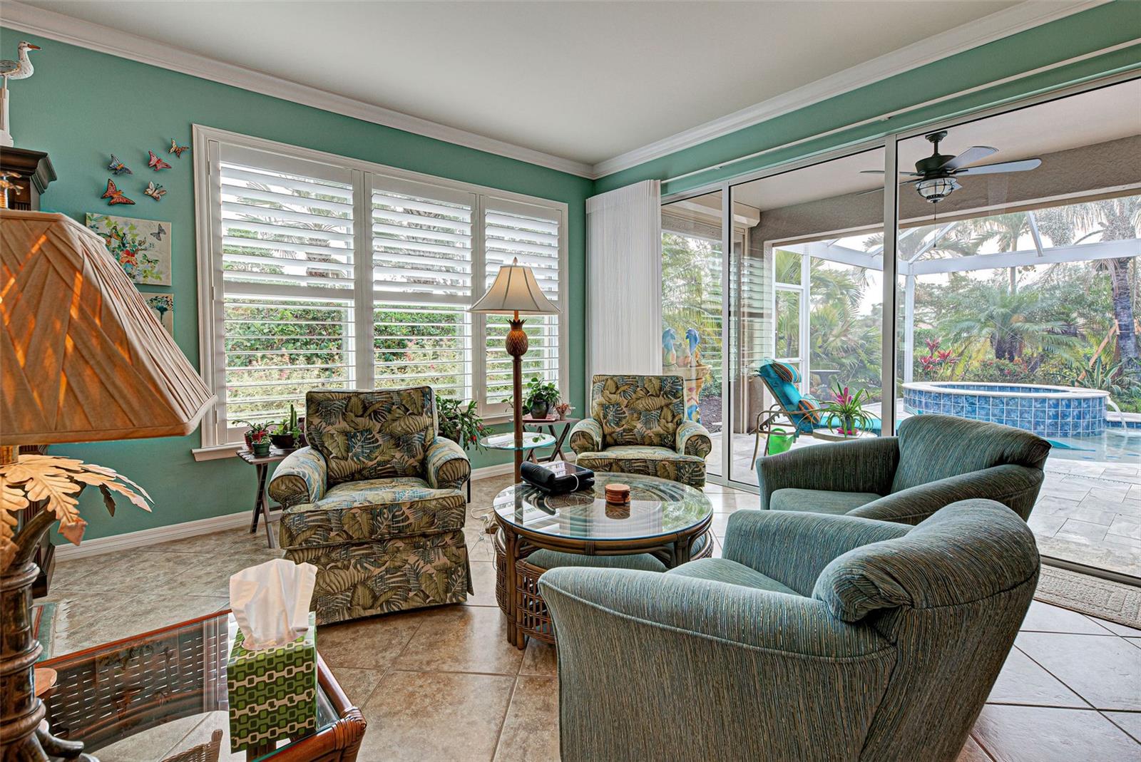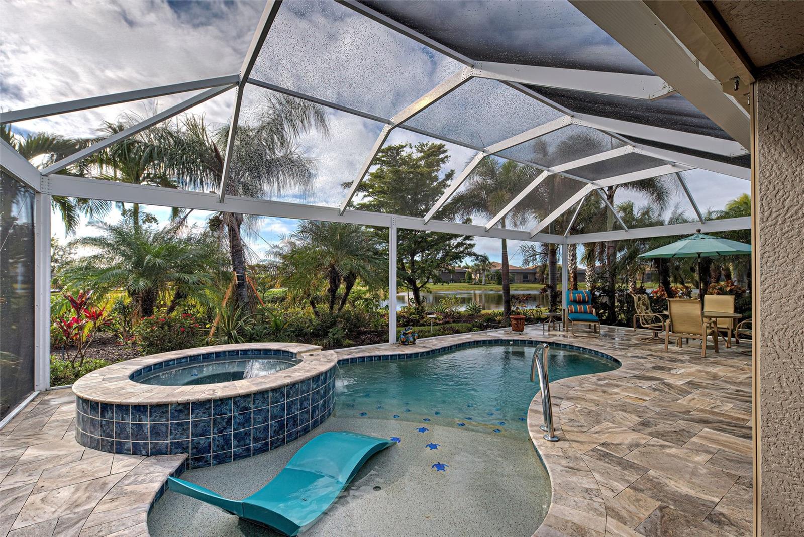 CAMINHADA NA ILHA - bela casa de banho 2 BR 2 sem manutenção, além de casa com piscina aquecida e spa. Tem vistas deslumbrantes sobre o lago, a vida selvagem e o pôr do sol. Ventiladores de teto na varanda mantêm-no confortável quando você está relaxando. Enorme espaço verde ao lado acrescenta muita privacidade. Lanai oferece estilo resort com piso de travertino e amplo espaço para móveis, churrasqueira e bar, se desejar. A grande reforma feita há 3 anos na cozinha, nos banheiros e na lavanderia de grandes dimensões inclui iluminação embutida, novos balcões, novas pias, armários reformados e sancas na área de estar principal. Persianas em todos os quartos, exceto no quarto principal, que possui persianas que escurecem. A garagem é ampla e tem capacidade para 2 carros e um carrinho de golfe; conta ainda com estantes e revestimento epóxi recém aplicado no piso. As venezianas de fácil fechamento oferecem proteção adicional quando necessário. Island Walk possui 2 clubhouses com tênis, vôlei e muitas outras atividades para tornar sua vida agradável. Island Walk faz parte do Wellen Park, com suas belas lojas, restaurantes, parque, playground e lago no centro da cidade. Relaxe no centro da cidade ouvindo música ao vivo com frequência.