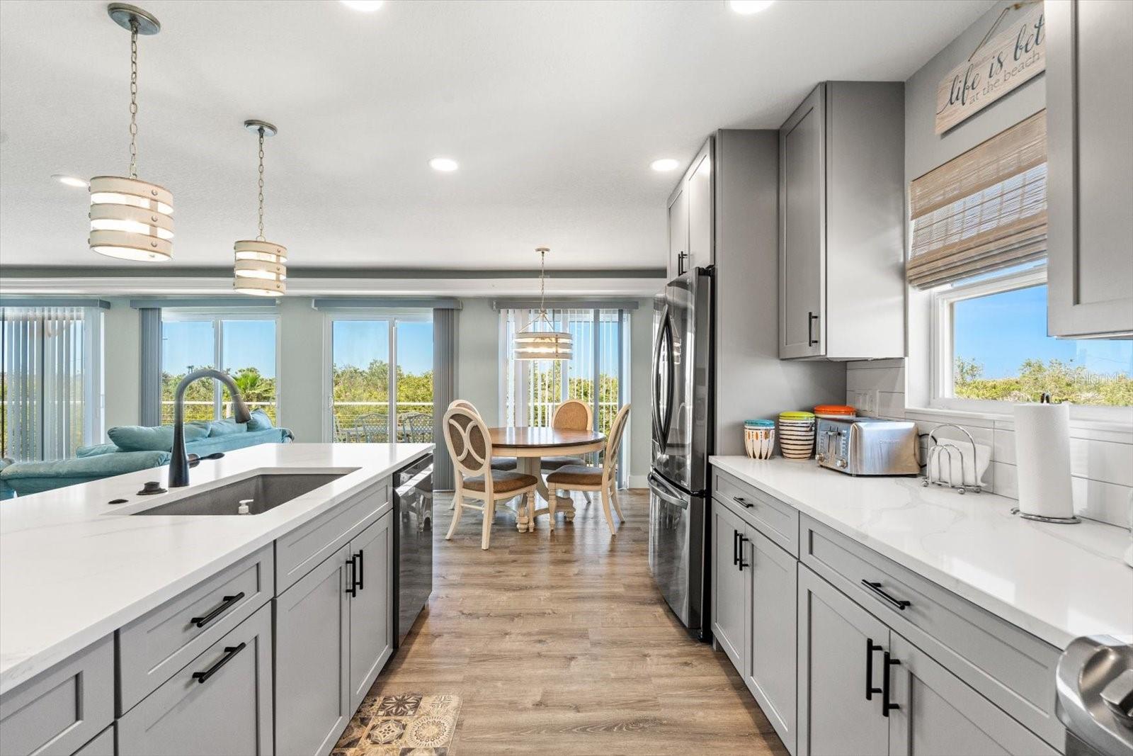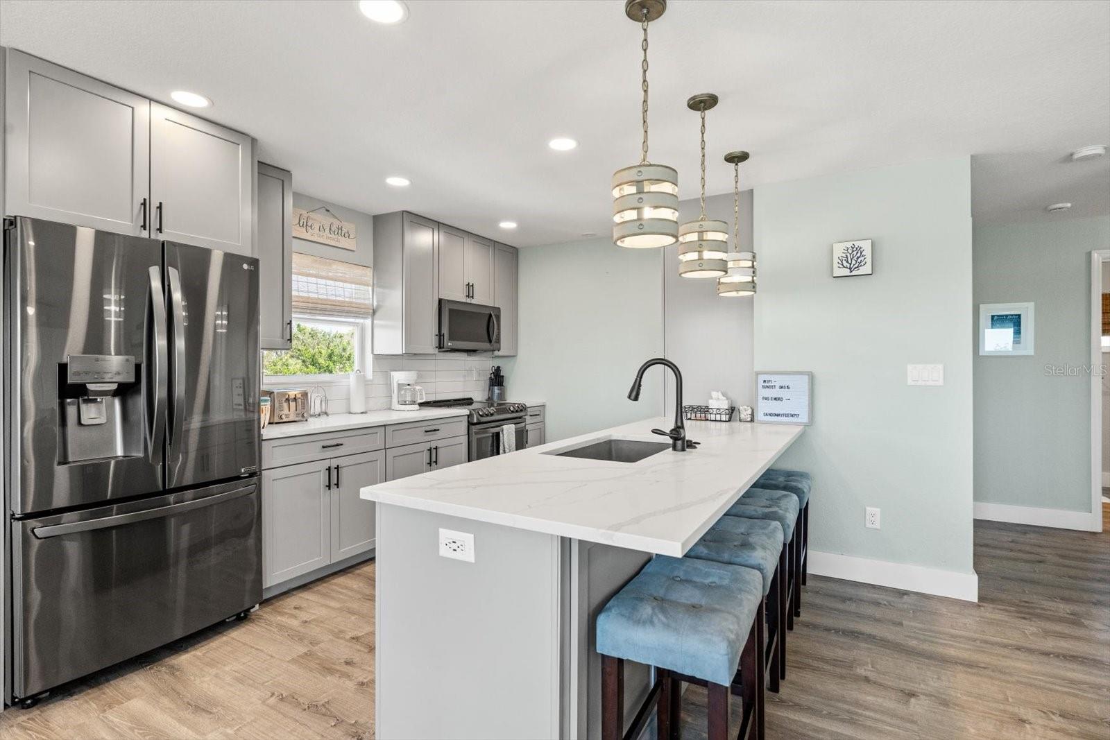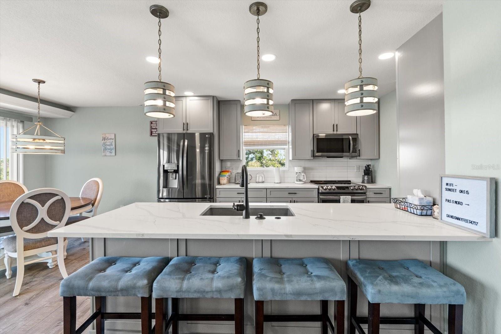 Vistas frontais do Golfo e acesso privado na praia com uma nova piscina por menos de um milhão! Com vista para o Golfo com vistas incríveis, esta deslumbrante casa à beira-mar com vistas de 180 graus da via hidrográfica intercoastal e do Golfo do México não deve ser desperdiçada! Novo telhado 2024! Nova piscina 2023! Completamente remodelado em 2020, esta fabulosa casa unifamiliar de três níveis possui bancadas de quartzo por toda parte, utensílios de aço inoxidável, um aquecedor de água quente, sistema de amaciador de água, armários suaves na cozinha e ambos os banheiros, um sistema CA comercial e pisos de tábua de vinil de luxo por toda parte. A suíte primária está no nível superior, com uma área de sessão de grandes dimensões, closet interno e banheiro espaçoso atualizado na suíte. A principal área de estar, dois quartos secundários, juntamente com o Inside Utility, estão todos no segundo nível. As varandas em ambos os níveis fornecem abundantes áreas de estar ao ar livre com vista para o Golfo! A recém-concluída piscina aquecida de grandes dimensões oferece vida ao estilo resort no pátio cercado e prepara o terreno para uma ótima área de entretenimento. Espaços adicionais ao ar livre incluem uma chiminea embutida e grade ao ar livre e estação de cozinha. Uma pérgola coberta sobre a banheira de hidromassagem independente ao ar livre fornece uma configuração tranquila e sombra adicional. Um chuveiro ao ar livre e um vasilheiro privado completam a área do quintal. Na frente, uma garagem circular com um enorme espaço de estacionamento está incluída, com plugue de 50 amp para um campista na lateral da casa! O HOA opcional oferece acesso apenas a membros a uma rampa de barcos particulares, doca de pesca e balsa para a praia. Esta fatia do paraíso tem uma ótima história de aluguel sazonal, com vários locatários prontos para reservar para o futuro próximo. Uma curta viagem de carro o levará ao centro de Veneza, com suas fabulosas compras, restaurantes e entretenimento. O centro de Sarasota e as praias -chave de Siesta também estão a uma curta distância. Venha proteger sua peça privada do paraíso!