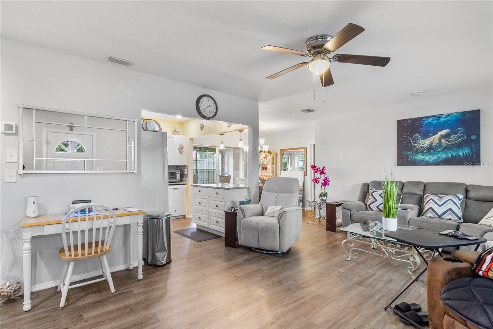 Bem-vindo a esta casa lindamente renovada de 2 quartos e 2 banheiros, localizada em um espaçoso lote de canto na altamente desejável comunidade de Veneza Gardens. Atualizado cuidadosamente nos últimos cinco anos, esta casa combina conforto, estilo e conveniência moderna. Esta casa é recursos: New Roof (2019-Proprietário anterior), sistema HVAC (2020), aquecedor de água (2021), sistema reverso do sistema e amaciante de água, balcões de granito, revisão de encanamento da casa, cozinha atualizada e banheiros, pisos novos (laminado sobre terrazzo original), tinta interior e externa atualizada, prisão para estacionamento extra. Entre em casa para experimentar um layout de conceito aberto e cheio de luz, perfeito para entreter ou tranquilidades noites em casa. O quintal cercado e o pátio aconchegante oferecem o espaço perfeito para relaxar ou grelhar, enquanto a sala da Flórida de 4 temporadas oferece flexibilidade bônus interna/externa. Como parte de Venice Gardens, você terá a opção de ingressar na Associação Cívica e apreciar a piscina comunitária - todos a poucos minutos de Venice Beach (Capital do Dente do Subardo do Mundo), um centro de uma ilha, compras, restaurantes e instalações médicas. Uma oportunidade de destaque para os compradores, pois esta casa oferece valor duradouro, tranquilidade, um local fabuloso, tudo a um preço acessível. Proteja sua turnê privada hoje. *** Compradores de VA - Esta é sua oportunidade! A casa apresenta um empréstimo de VA assumido elegível, oferecendo valor excepcional e o potencial de grandes economias para compradores qualificados. Tire o seu tiro nesta jóia pronta para se mover em um bairro bem estabelecido.