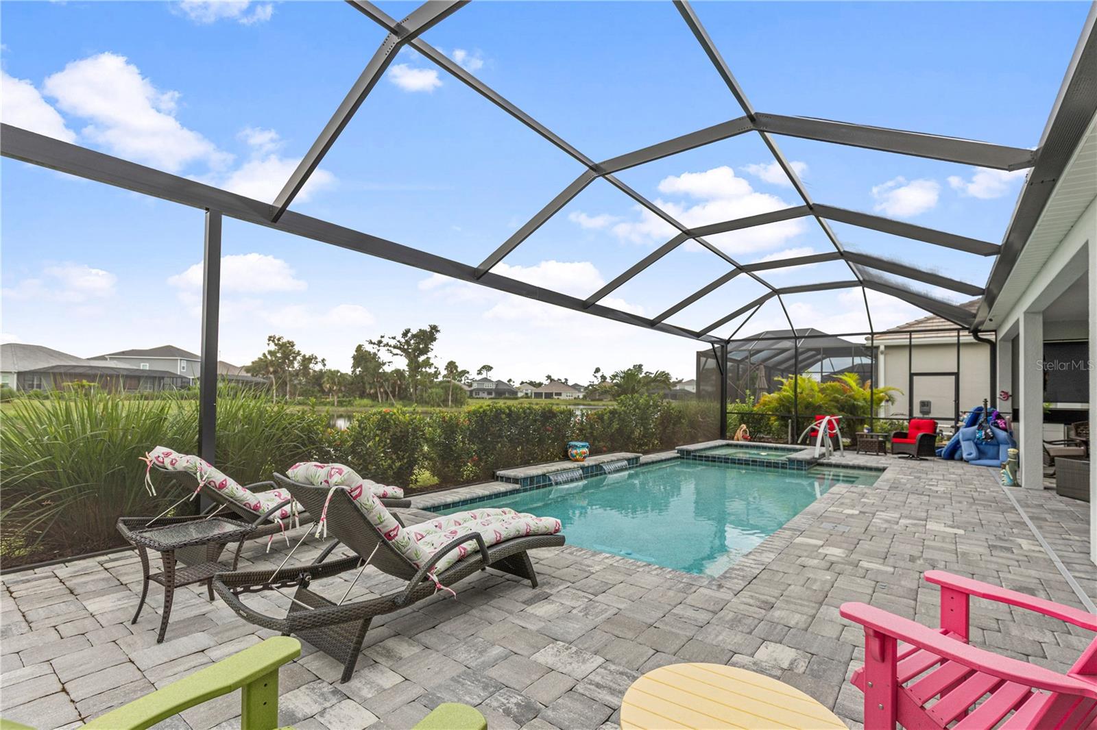 Bem-vindo a pouco menos de 3.000 pés quadrados de vida refinada nesta sala flexível de 4 quartos com sala de jogos com vista para a piscina e 3 banheiros completos, lote grande, construído em 2023 e aprimorado com atualizações para o estilo de vida atual. Situada em Grand Palm, reconhecida como uma das 10 melhores comunidades planejadas nos EUA, esta residência equilibra perfeitamente estilo, função e tranquilidade. O design aberto é preenchido com luz natural e elevado por sancas, iluminação atualizada e lustres extravagantes. A cozinha está equipada com todos os eletrodomésticos GE Smart, incluindo uma máquina de lavar louça GE Smart e uma janela de serviço para entretenimento sem esforço. Janelas com classificação contra furacões, persianas elétricas e proteção Guardian com alerta de vida acrescentam conforto e segurança. Saia para o seu retiro privado: uma varanda espaçosa com exposição ao sul, uma piscina de água salgada de 18' x 34' e um spa de 8' x 8', todos operados remotamente através do iAqua. Há também uma entrada direta para a piscina a partir da sala bônus, agregando comodidade e fluxo para a vida interna e externa. Paisagismo excepcional, lote amplo e vistas desobstruídas proporcionam privacidade e serenidade. Os destaques adicionais incluem um gerador Generac para toda a casa (gás natural) de US$ 20.000, sistema de filtragem de água e uma segunda entrada fechada para exclusividade. Como residente de Grand Palm, você desfrutará de piscinas estilo resort, uma academia de ginástica de última geração, Adventure Lake com lançamento de caiaque, 45 quilômetros de trilhas, pickleball, tênis, bocha, basquete, vôlei, vários parques para cães, playgrounds e amplos espaços verdes. Casas com esta combinação de lote grande, piscina de água salgada, spa, exposição ao sul e atualizações extensas raramente estão disponíveis. Isto é mais do que uma casa, é um estilo de vida e um investimento duradouro em uma das comunidades mais desejáveis não apenas do condado de Sarasota, mas também dos EUA. Agende sua exibição privada hoje e entre na vida que você estava esperando. Clique no link do tour para um tour virtual em 3D!