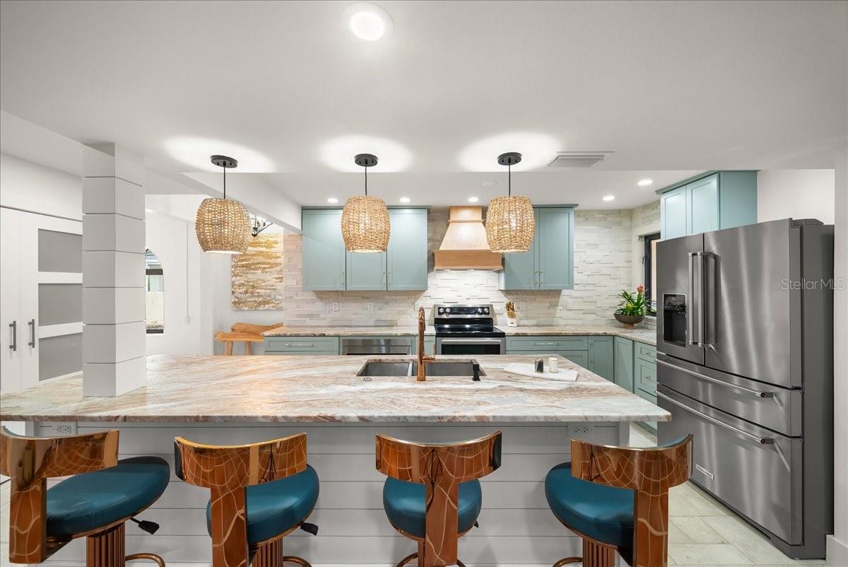 Uma ou mais fotos foram virtualmente encenadas. Um retiro reimaginado no Gulfside em Golden Beach. Esta residência direta à beira-mar em 718 Golden Beach Blvd #1 redefine a vida costeira. Abrangendo 2.252 pés quadrados com 3 quartos, 3 banheiros e um loft, a casa foi totalmente reformada com detalhes cuidadosos. Projetado para aqueles que sonham com uma escapadela sazonal ou um santuário sereno durante todo o ano, este condomínio único vive como uma casa unifamiliar privada, ao mesmo tempo que oferece a facilidade de viver à beira-mar. Com o Golfo como pano de fundo, cada momento aqui parece uma página de uma revista de estilo de vida costeira. No interior, a elegância encontra a praticidade. Pisos de travertino com bordas lascadas guiam você para uma cozinha com tons suaves da costa, armários novos, bancadas de pedra revestidas de couro, prateleiras de despensa personalizadas e novos eletrodomésticos KitchenAid de aço inoxidável com osmose reversa. O layout aberto mantém o espaço tão tranquilo quanto a vista além. A sala de estar passa pela cozinha com tetos abobadados em pinho Radiata, porcelanato terracota e uma impressionante lareira a lenha. Uma janela panorâmica do impacto do furacão, que será instalada em breve, emoldura o pôr do sol do Golfo enquanto inunda a sala com luz natural. Acima, um loft acessível por uma escada rolante agora tem aquecimento e ar central, criando um retiro aconchegante para os hóspedes durante todo o ano. A suíte principal continua a paleta costeira com uma parede com detalhes em shiplap, luzes pendentes adornadas e portas de correr para a varanda. Diretamente em frente à cama, uma nova janela classificada como furacão está sendo instalada para capturar vistas desobstruídas do Golfo sem sair do travesseiro. O banheiro privativo foi completamente transformado com uma penteadeira de carvalho, balcões de granito e um luxuoso box amplo com piso de pedra. Um espaçoso closet leva à lavanderia recém-imaginada, agora equipada com uma nova lavadora e secadora, bem como aquecimento central e ar para maior conforto. Aqui, grandes janelas salientes preenchem o espaço com luz natural, enquanto um café-bar, incluindo armazenamento de vinho e cerveja, refrigerador de bebidas e máquina de fazer gelo, cria um espaço tão prático quanto bonito. Um banheiro remodelado possui balcões de granito, armários novos, chuveiro de azulejos e shiplap. O quarto adjacente tem acesso à varanda e uma sensação luminosa e convidativa. Um terceiro quarto ao lado da cozinha oferece uma suíte privativa com banheiro completo, entrada no pátio e acesso rápido à piscina estilo resort. A varanda se conecta perfeitamente em ambientes internos e externos - perfeita para grelhar, rir e pôr do sol. A poucos passos de distância, a piscina recapeada e a entrada privativa na praia facilitam o relaxamento. Com poucos residentes primários, Ocean Sands parece seu próprio enclave à beira-mar. As atualizações incluem fiação elétrica totalmente nova, um telhado plano totalmente novo e um novo elevador no prédio principal. Oferecido em sua maioria pronto para uso, mobiliado com amplo estacionamento, está pronto para morar. A arrecadação remodelada com armários embutidos e tomada pode facilmente ser convertida em garagem para carrinhos de golfe. Para sua tranquilidade, a casa também possui fiação atualizada com um painel de disjuntor adicional, uma unidade CA elevada e um novo aquecedor de água sem tanque. Além deste santuário costeiro, Veneza oferece refeições à beira-mar no Sharky's ou Fins, na praia para cães Paw Park, boutiques, cafés e mercados de agricultores na histórica Main Street. Hospitais próximos, golfe, eventos culturais e parques naturais tornam cada dia uma aventura. Esta casa é mais do que uma residência – é um estilo de vida de luxo tranquilo e tranquilidade costeira. Descubra por que Golden Beach é o epítome do Endless Summer Living. Veja os tours virtuais na seção de fatos e recursos.