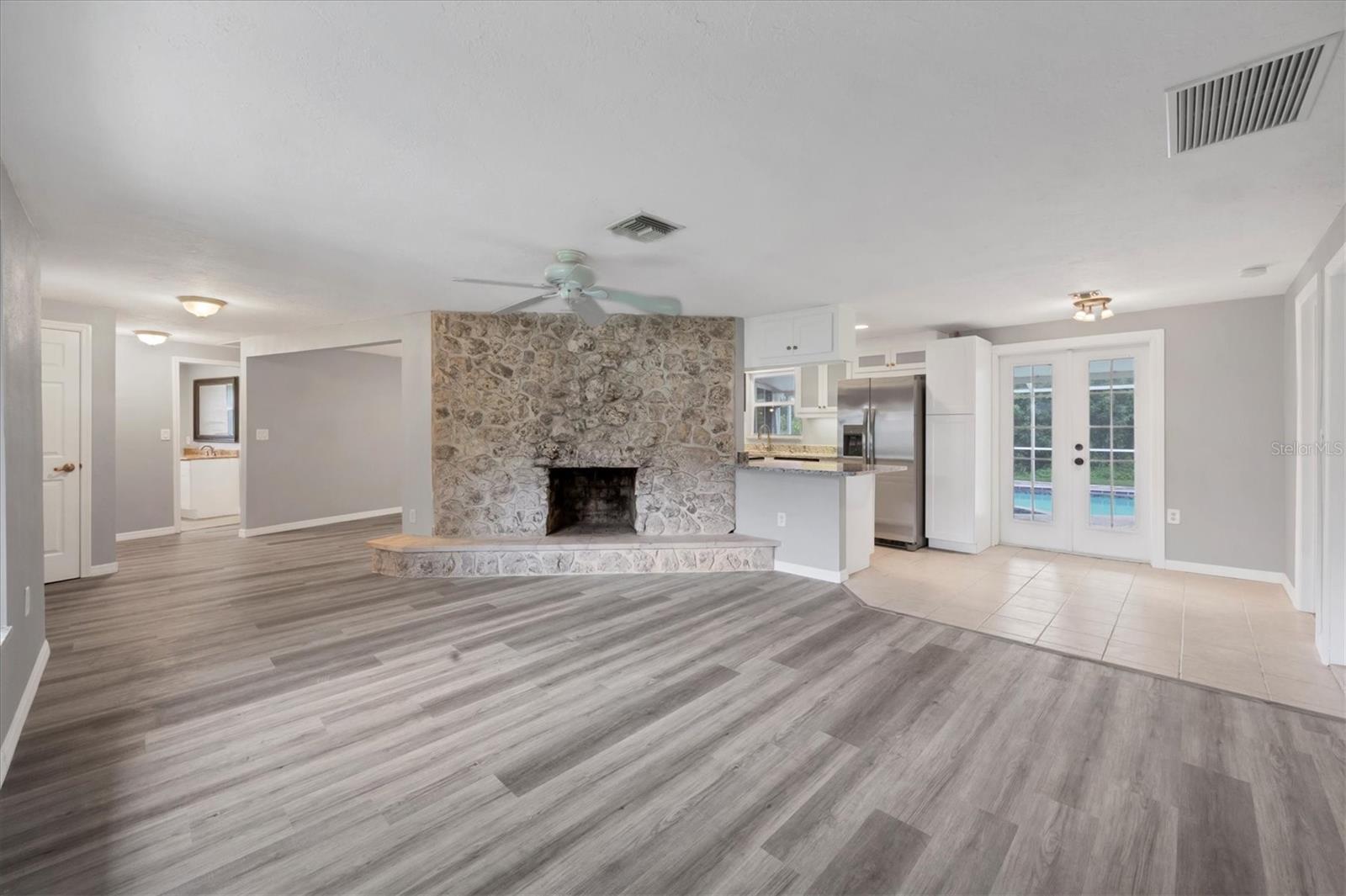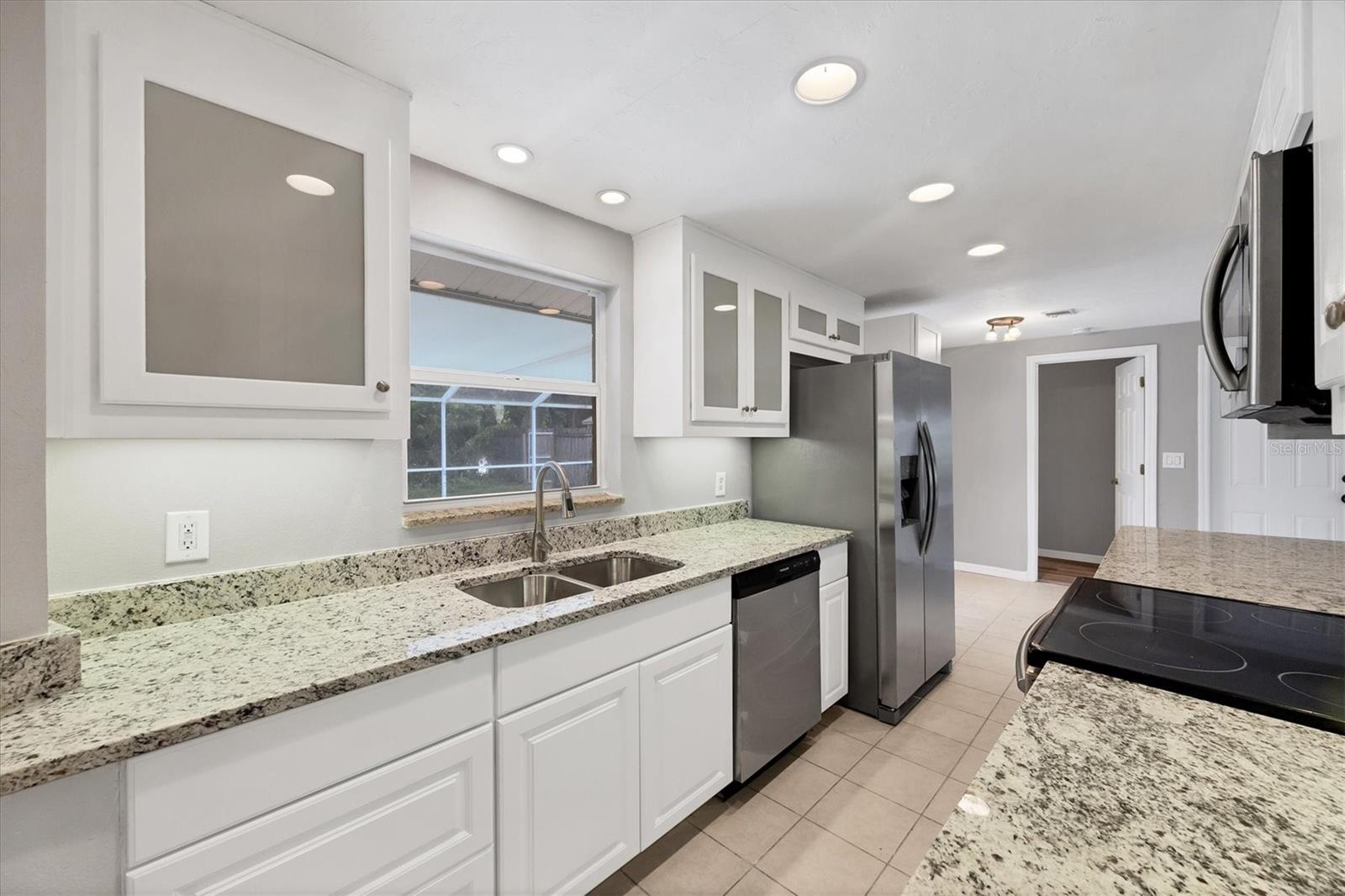Esta encantadora casa de 3 quartos e 2 banheiros oferece 1.471 pés quadrados de espaço confortável, completo com uma garagem de 1 carro. Aninhado em mais de um estacionamento de um quarto de hectare, a propriedade apresenta um quintal privado lindamente paisagístico com uma vista tranquila da lagoa, perfeita para relaxar ou divertir. Desfrute da Flórida que vive no seu melhor com um lanai e uma piscina cintilante. No interior, a casa possui uma aconchegante lareira a lenha, uma cozinha atualizada com bancadas em granito e armários decorativos no estilo agitador e banheiros renovados com bom gosto. Idealmente, localizado a menos de 6 km de Venice Beach e perto de fazer compras, restaurantes e conveniências diárias.
