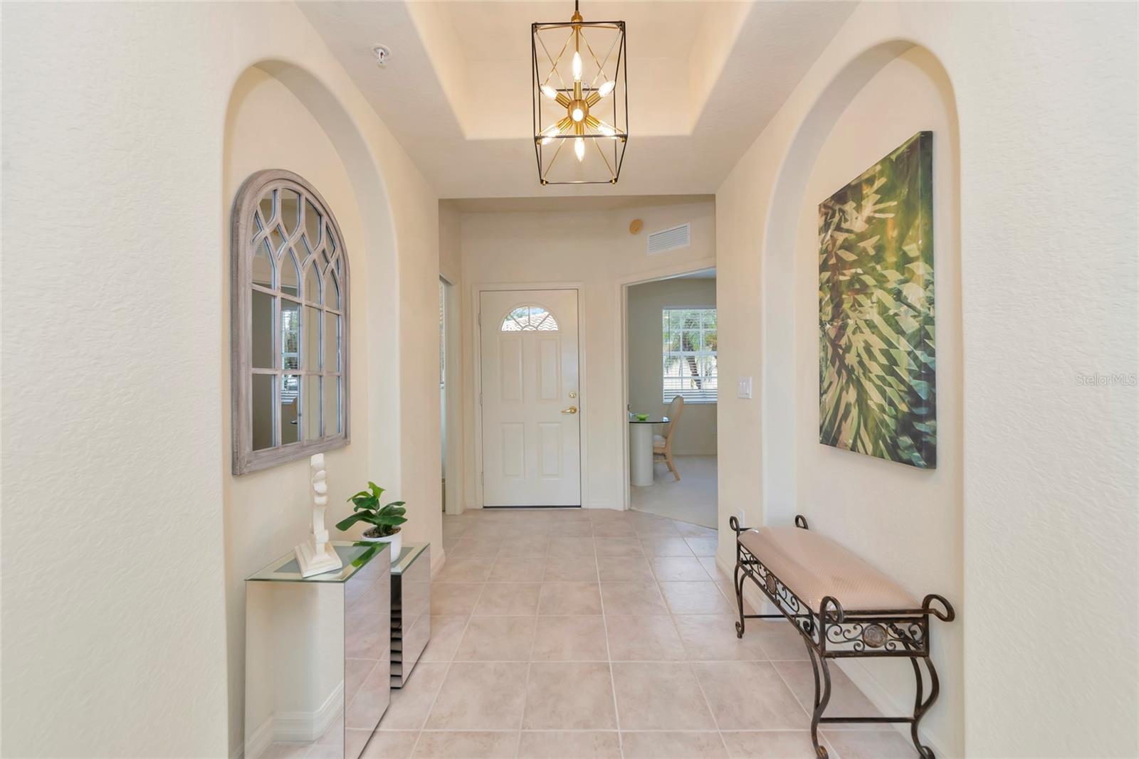 Bem-vindo a este condomínio de unidade final de primeiro andar, meticulosamente cuidado e imaculado, no altamente desejado condomínio fechado de Casa Di Amici, em Venetia. A partir do momento de sua chegada, você será recebido por uma exuberante paisagem tropical e pela conveniência de sua própria garagem para um carro. Entre para descobrir uma casa cuidadosamente projetada com piso de cerâmica fácil de limpar, luminárias elegantes e um layout aberto e claro, tudo isso com vista para o belo lago. A ampla área de estar possui carpetes aconchegantes, impressionantes embutidos, grandes janelas e portas de vidro deslizantes que emolduram a vista serena do lago. Perfeitamente adequada para relaxamento e entretenimento, a área de estar flui perfeitamente para a cozinha totalmente equipada, completa com amplos armários, eletrodomésticos combinando e uma barra de café da manhã ideal para café da manhã ou jantar casual. Ao lado da cozinha, a sala de jantar oferece um local convidativo para jantares ou festas de fim de ano. A suíte primária isolada é um verdadeiro retiro, afastada das principais áreas de estar. Oferece vários armários, incluindo um enorme closet, além de um banheiro privativo com pias duplas e um luxuoso box amplo. Um quarto adicional e uma sala bônus versátil oferecem muitas opções para hóspedes durante a noite, um escritório em casa ou um espaço de hobby. Uma segunda casa de banho completa e uma espaçosa lavandaria garantem a comodidade do dia a dia. Saia para sua pitoresca varanda com tela, um oásis tranquilo com vista para o lago, onde você pode desfrutar do nascer do sol, observar pássaros e os sons suaves da natureza da Flórida com total privacidade. Virado a sul e banhado de luz solar. Esta casa também vem com inúmeras atualizações, incluindo um descarte mais recente, aquecedor de água quente, controle e iluminação da porta da garagem, fechaduras e ferragens atualizadas, cartuchos de chuveiro e banheira aprimorados, telas nas janelas, lustres e muito mais, oferecendo tranquilidade aos novos proprietários. Os residentes da Casa Di Amici desfrutam de um estilo de vida excepcional, sem taxas de CDD, classificações favoráveis de zonas de inundação e comodidades em estilo resort. Aproveite a piscina e o spa comunitários cintilantes, uma piscina cabana, clube com gerenciamento no local, academia, quadras de tênis, basquete, pickleball e bocha, além de terrenos bem cuidados com entradas para cachoeiras. Com localização central perto de supermercados, lojas, restaurantes e a apenas uma curta distância de carro das mundialmente famosas praias da Flórida, este condomínio é perfeito para vida sazonal, residência em tempo integral ou como investimento de aluguel de primeira linha. Não perca esta oportunidade de experimentar a verdadeira vida na Flórida. Agende sua exibição privada hoje mesmo!