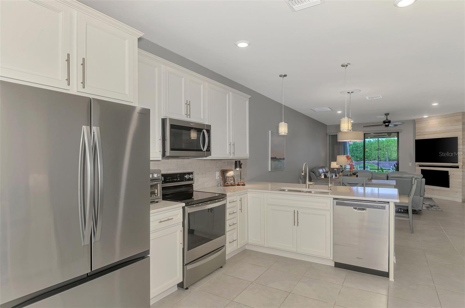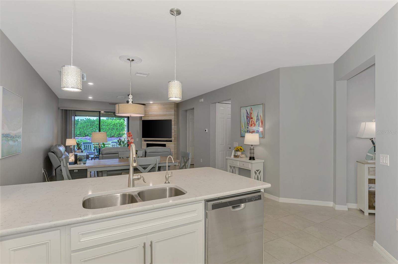 Elegante casa de 2 quartos + escritório com garagem para 2 carros em IslandWalk, Venice, FL. Descubra a vida em estilo resort nesta casa lindamente conservada de 2 quartos, 2 banheiros e escritório, localizada no altamente desejável condomínio fechado IslandWalk em Venice, Flórida. Projetada para oferecer conforto e funcionalidade, esta casa apresenta um layout convidativo de conceito aberto com piso de cerâmica nas principais áreas de estar e no escritório. A cozinha moderna possui eletrodomésticos de aço inoxidável, bancadas leves e armários leves com osmose reversa de cozinha e sistema de amaciante de água para toda a casa. A espaçosa suíte principal oferece um closet em forma de L e um luxuoso banheiro privativo com pia dupla e box amplo com luz natural. O banheiro de hóspedes tem uma combinação de chuveiro/banheira. Um escritório/escritório dedicado oferece flexibilidade para trabalho remoto, hobbies ou portas francesas fechadas para uma sala de leitura silenciosa e com muita luz. Saia para a ampla varanda com tela, ideal para relaxar ou organizar reuniões. A tela Storm Smart está localizada entre o pátio coberto e a área abobadada com tela. A garagem para 2 carros dispõe de prateleiras para arrumação extra e para cadeiras de praia. IslandWalk é um dos principais condomínios fechados e livres de manutenção de Veneza, conhecido por seu belo paisagismo, lagos e comodidades de classe mundial. Desfrute de dois clubes em estilo resort com uma infinidade de atividades sociais e de fitness, lagoa aquecida e piscinas olímpicas, quadras de pickleball, quadra de tênis e bocha, academia de ginástica de última geração, trilhas para caminhada e ciclismo que serpenteiam por canais pitorescos, diretor de atividades em tempo integral e um calendário de eventos durante todo o ano. Perto do Wellen Park e das praias do Golfo. Esta casa oferece acesso rápido a lojas, restaurantes e entretenimento no Downtown Wellen Park, além de fácil proximidade com o CoolToday Park, casa de treinamento de primavera do Atlanta Braves. A uma curta distância de carro estão as praias imaculadas do Golfo de Veneza, incluindo Venice Beach, Manasota Key e Caspersen Beach, onde você pode desfrutar de passeios ao pôr do sol, descasque e pesca. Experimente o melhor da vida costeira da Flórida - onde luxo, conveniência e comunidade se unem.
