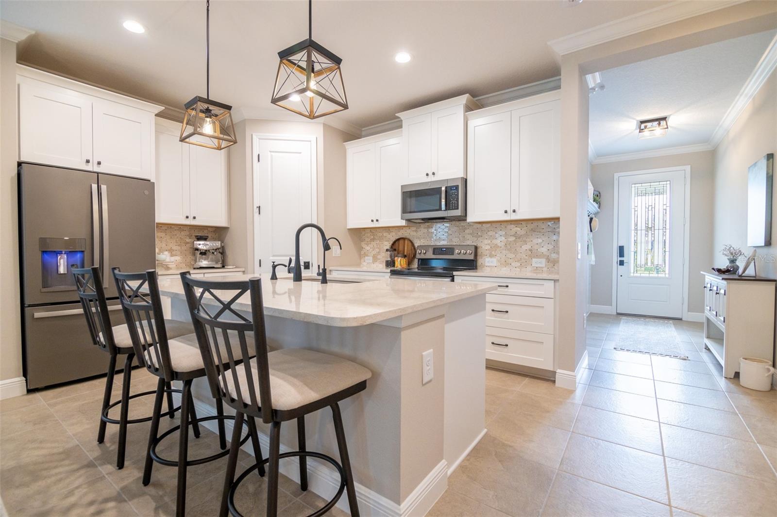 Entre na vida em estilo resort com este modelo Fresh Spring meticulosamente atualizado da Neal Homes, situado no condomínio fechado Grand Palm em Venice, Flórida. Melhor do que nova, esta casa de 3 quartos, 2 banheiros e sala combina design atemporal com atualizações funcionais que tornam a vida cotidiana fácil e elegante. No interior, descubra uma planta aberta repleta de luz natural, realçada por tetos em caixotões e sancas no quarto principal e na área de estar, venezianas e portas de 2,5 metros. A cozinha do chef brilha com bancadas de quartzo, armários de madeira maciça com fechamento suave, pia de casa de fazenda, backsplash de azulejos e iluminação de destaque acima e abaixo dos armários. A suíte principal possui closet com embutidos personalizados, espelhos feitos à mão e banheira tipo spa com pias duplas e box amplo. Dois quartos compartilham um banheiro completo com pias duplas, e a sala com portas francesas é ideal para home office ou hobby. Aproveite as noites da Flórida na varanda estendida com telas de Kevlar contra furacões e vistas paisagísticas pacíficas. As atualizações adicionais incluem janelas e portas com classificação de impacto, entrada para navio, piso de garagem com acabamento em epóxi, armazenamento de teto Safe Rack na garagem, armários adicionais na lavanderia, amaciante de água, água potável RO e máquina de fazer gelo, segurança com fio e muito mais! Os residentes de Grand Palm podem desfrutar de 45 quilômetros de trilhas naturais, resort e piscinas, parque aquático, Adventure Lake, que aceita caiaque, pickeball, tênis e dois parques para cães. As taxas HOA incluem cuidado do gramado e comodidades comunitárias, tornando a vida na Flórida simples. Localizada a poucos minutos do centro histórico de Veneza, das praias do Golfo, do parque CoolToday e do novo centro de Wellen Park, esta casa também oferece fácil acesso à I-75 e à Trilha Tamiami. Pronto para morar, bem conservado e nunca afetado por tempestades ou inundações - Faça desta a sua casa na Flórida para viver no seu melhor!