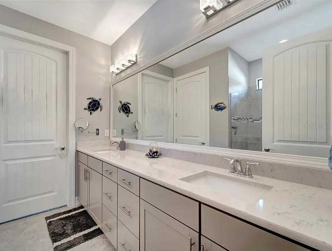 IMPRESSIONANTE CASA MODELO ABBEYVILLE COM LINDAS VISTAS PARA A ÁGUA EM ISLANDWALK, WELLEN PARK, FL. Descubra a casa dos seus sonhos em Venice, FL, com este lindo apartamento de 3 quartos (2 quartos mais um escritório que pode ser usado como 3º quarto com armário no corredor). Este modelo de Abbeyville está localizado na altamente desejável comunidade IslandWalk at Wellen Park. A partir do momento em que você entrar, você apreciará a elegância moderna e o design cuidadoso, aprimorados pelas vistas deslumbrantes da água no pátio dos fundos e na varanda estendida. Esta casa pronta para morar possui venezianas, portas de 2,5 metros e uma porta frontal com tela retrátil para ventilação cruzada arejada durante os meses mais frios. A casa possui piso diagonal de cerâmica, uma cozinha gourmet com armários extraíveis personalizados, bancadas de quartzo, eletrodomésticos premium, um backsplash elegante e um SISTEMA DE FILTRAGEM DE ÁGUA ECO para toda a casa. Toques atenciosos, como paredes de destaque nos quartos principal e de hóspedes, ventiladores de teto em todos os quartos e uma porta de celeiro personalizada que separa as áreas de lavanderia e armazenamento elevam o charme da casa. A garagem oferece comodidade com escadas rebatíveis de alumínio, duas prateleiras suspensas e plataforma elevatória de arrumação. O destaque desta casa é a varanda estendida de 20 x 27 pés, onde você pode relaxar e apreciar a vista deslumbrante do mar, perfeita para manhãs tranquilas ou pôr do sol colorido na Flórida. A varanda também inclui um guarda-sol suspenso no lado oeste para maior conforto nos dias quentes e ensolarados. IslandWalk é um condomínio fechado que oferece comodidades em estilo resort, como 12 quadras de pickleball iluminadas, 8 quadras de tênis Har-Tru, 3 piscinas, 2 academias de ginástica, quadras de bocha, espaços para eventos, trilhas panorâmicas para caminhadas, um PARQUE PARA CÃES e canais pitorescos. Situada em Wellen Park, esta comunidade planejada de 830 acres oferece acesso conveniente a restaurantes, compras (Costco, Publix) e recreação ao ar livre, tornando-a a melhor escolha em Venice, FL. Não perca a oportunidade de possuir esta casa excepcional com vista para o mar em um condomínio premiado. Agende sua exibição privada hoje e experimente a combinação perfeita de luxo, conveniência e vida serena!