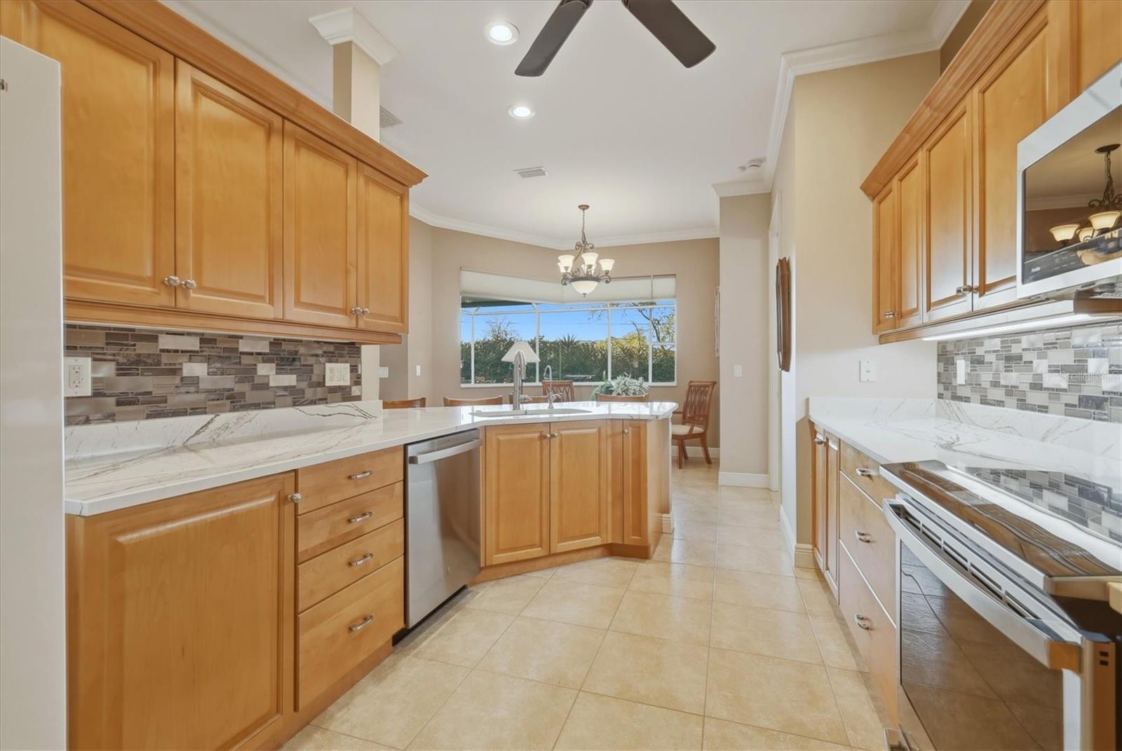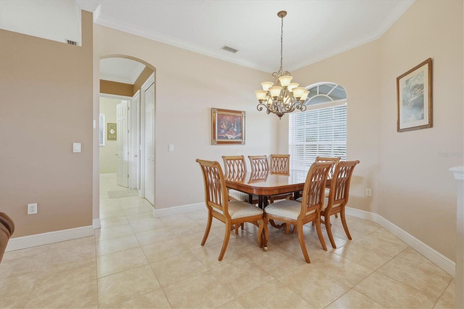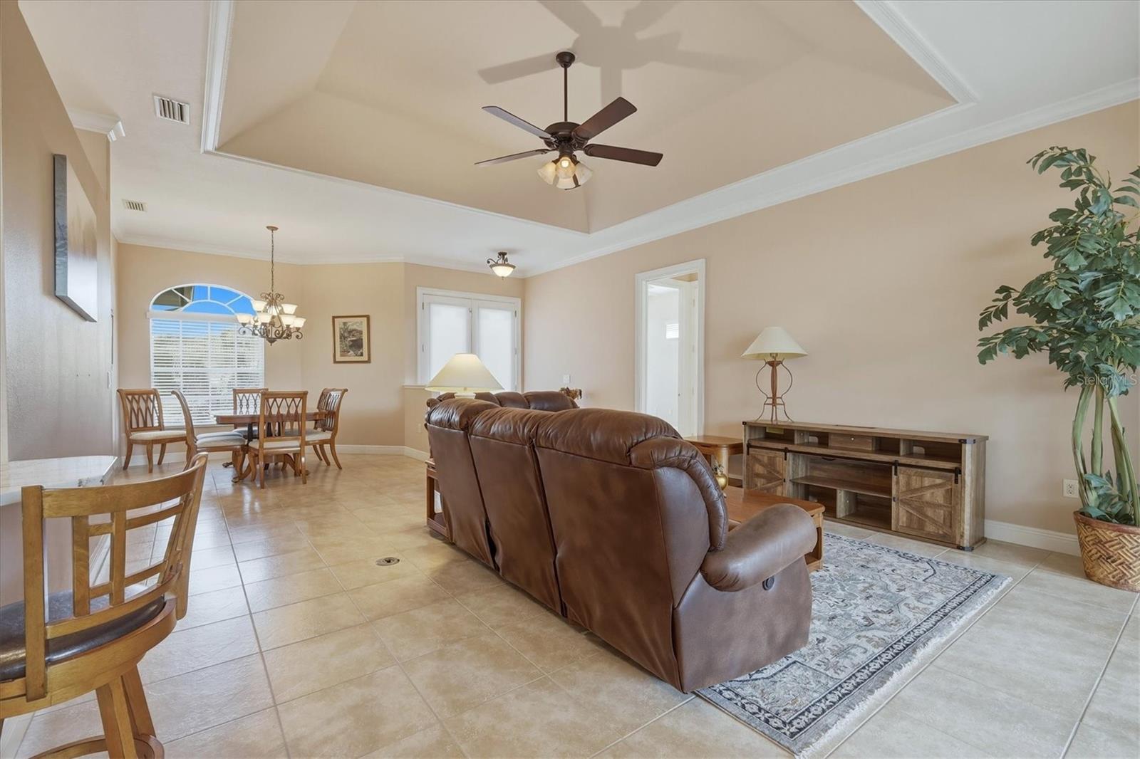 Descubra a essência da Flórida vivendo nesta casa lindamente atualizada de três quartos e dois banheiros na desejável comunidade de Venetia. A partir do momento em que você entra, as elegantes sancas, os tetos das bandejas e o elegante piso de cerâmica dão um tom caloroso e acolhedor. No coração da casa, a cozinha moderna e iluminada brilha com bancadas de quartzo, um impressionante backsplash de azulejos, uma espaçosa pia de aço inoxidável, uma barra de café da manhã e um amplo espaço de trabalho, ideal para refeições diárias ou para receber convidados. A sala de café da manhã possui uma grande janela de aquário e convida você a sair para sua varanda privativa, acessível a partir do quarto principal e da sala de estar, ideal para relaxar e aproveitar a suave brisa do Golfo. Ao lado da cozinha, a lavanderia bem equipada oferece armários abundantes, uma pia funda e uma lavadora e secadora Samsung mais recente. Todos os três quartos possuem piso de vinil luxuoso, criando uma sensação coesa e sofisticada. A suíte principal possui dois closets generosos e um banheiro privativo inspirado em spa com piso de cerâmica, box amplo personalizado com chuveiros duplos, pias duplas com pias embutidas e venezianas. Não há mais nada para você fazer, exceto entrar imediatamente! O exterior bem cuidado aumenta o apelo convidativo da casa. As comodidades em estilo resort do Venetia incluem uma piscina comunitária cintilante, clube, quadras de pickleball, tênis e basquete, shuffleboard e academia.