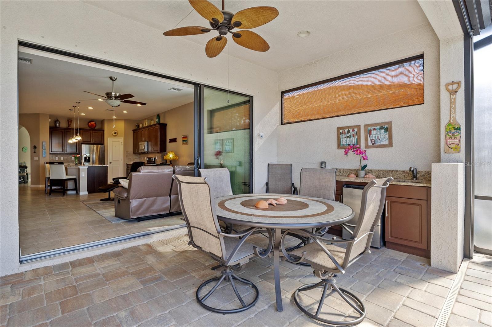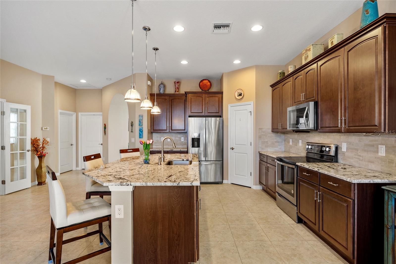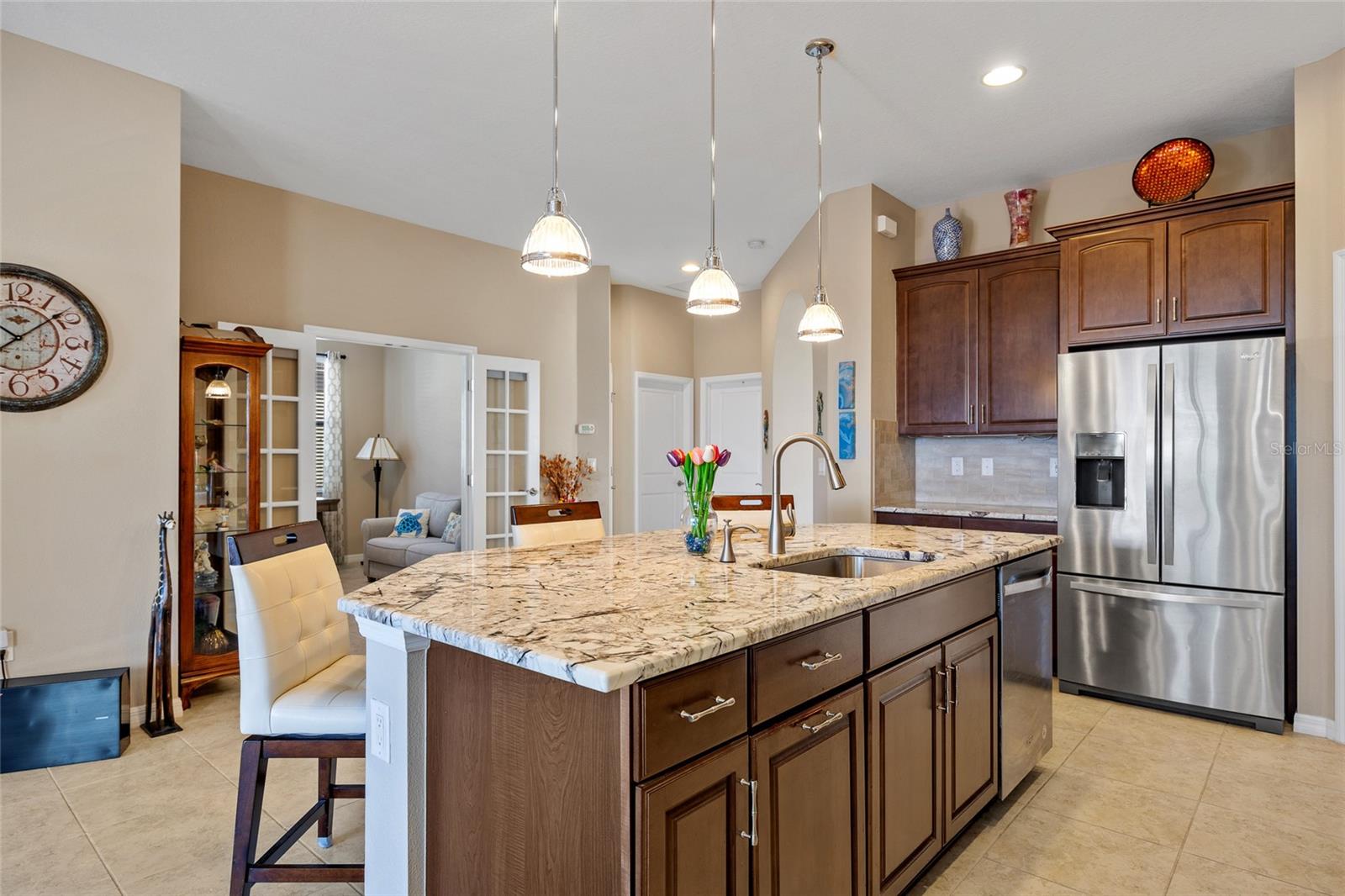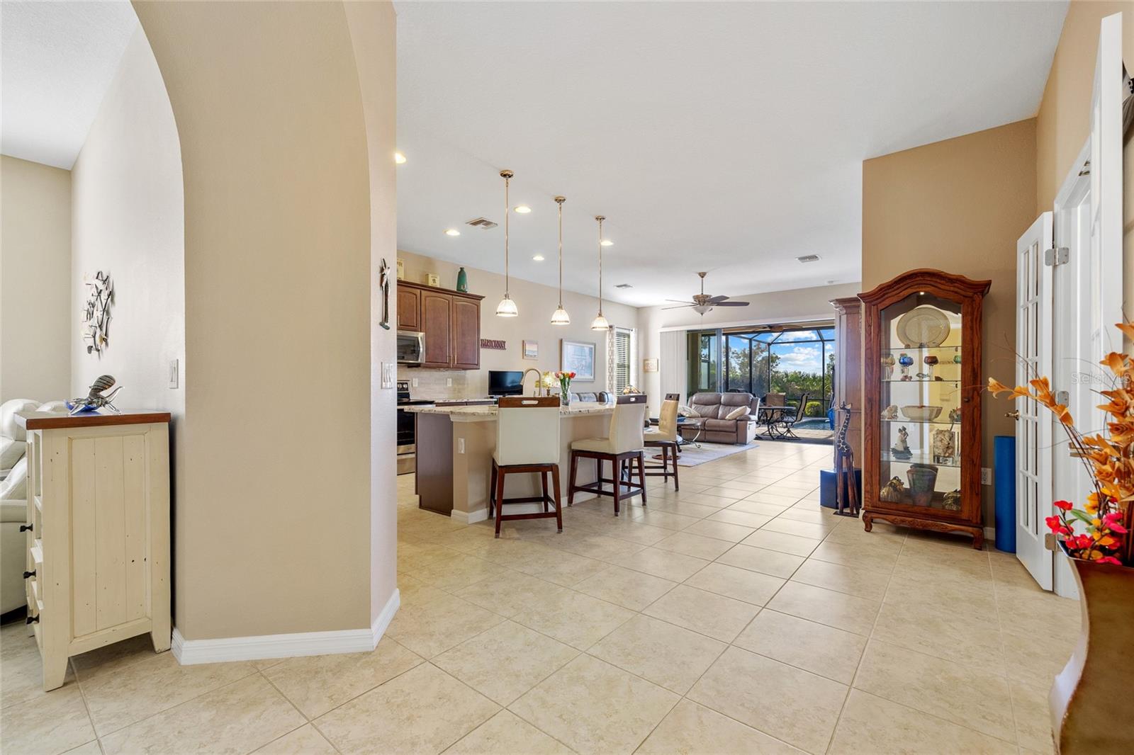 Comunidade de golfe fechado da Sarasota National! Apenas novo no mercado é esta bela casa construída pela WCI em Lake Village, com 2 quartos e 2 banheiros com um covil que pode ser usado como um terceiro quarto. Esta casa tem uma das melhores vistas do Crooked Creek Dr. Com uma vista desobstruída do lago na frente da exibição na Loggia, a melhor vista da reserva da propriedade traseira Lanai Plus é cercada por paisagismo atualizado. Convidar a planta apresenta tetos altos, entrada em arco, decoração neutra, uma abundância de luz natural, piso de ladrilhos sem manutenção em toda a maior parte da casa, sala formal, porta francesa para sala de jantar/sala de jantar e cozinha aberta e sala de estar com um controle deslizante grande para Lanai. A cozinha bem equipada oferece armários de close macio atualizados, granito sofisticado, backsplash de telha, aparelhos inoxidáveis e grande ilha central com bar de café da manhã. O quarto principal oferece ladrilhos de vinil de luxo, seus armários e seus armários personalizados por "armários por design" e private banheiro com pias duplas e chuveiro de vidro. A área de entretenimento ao ar livre possui lanai coberto, piscina de água salgada personalizada com um monte de atualizações, incluindo a prateleira solar, as cachoeiras com bancada e ladrilhos de piscina atualizados, além de uma cozinha ao ar livre com pia e geladeira. A verdadeira exposição ao sul para que os hóspedes do norte possam desfrutar de muito sol da Flórida enquanto relaxava na piscina. Para proteção contra tempestades, há um obturador inteligente de tempestade motorizado para as persianas de Lanai e acordeão para o resto do lar. Os recursos adicionais incluem balcões de pedra de Verona em banheiros, hóspedes com portas de chuveiro de vidro, atualizadas dentro de lavanderia e garagem de 2 carros com armazenamento de rack de teto. A taxa de HOA inclui manutenção de gramado e paisagem. O Sarasota National apresenta uma série de comodidades fabulosas, incluindo piscina de resort e spa, bar e restaurante tiki, pickleball, bocce bola, quadras de tênis, além de uma série de comodidades sociais para conhecer seus vizinhos. Ótima localização perto da US-41, restaurantes, compras, escolas, parques e uma curta viagem de carro até a pesca, passeios de barco, Manasota Key e Veneza Beaches. Esta linda casa não vai durar muito. Agende sua exibição particular hoje!