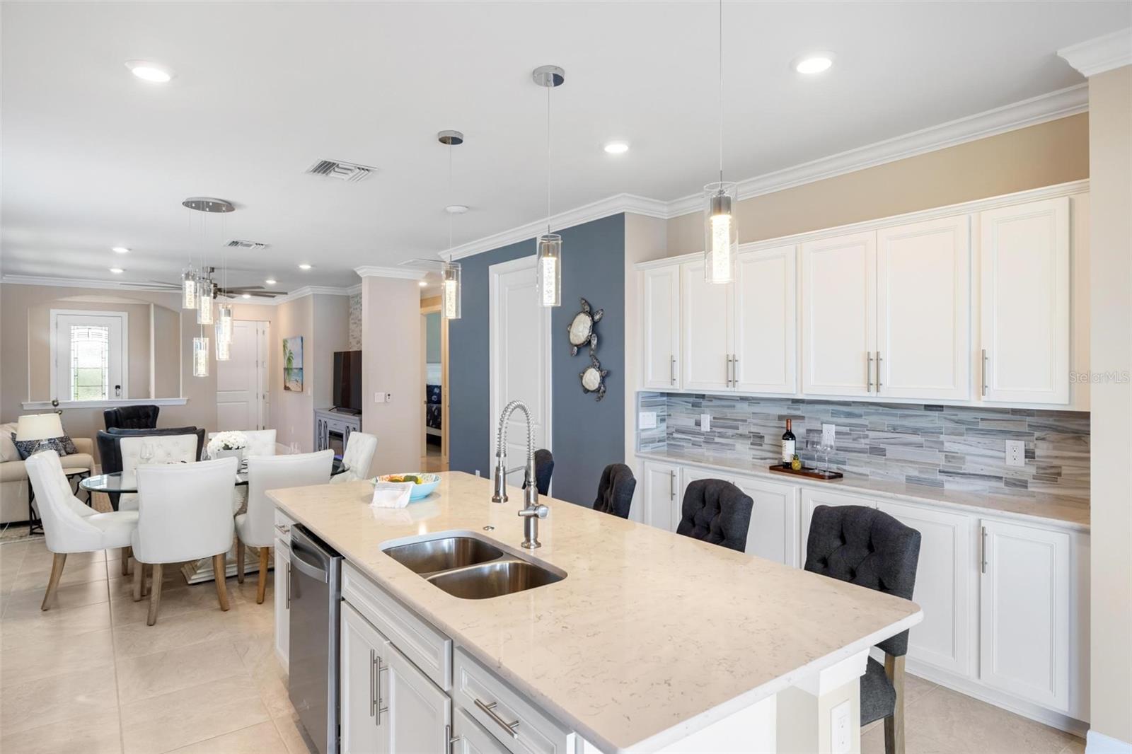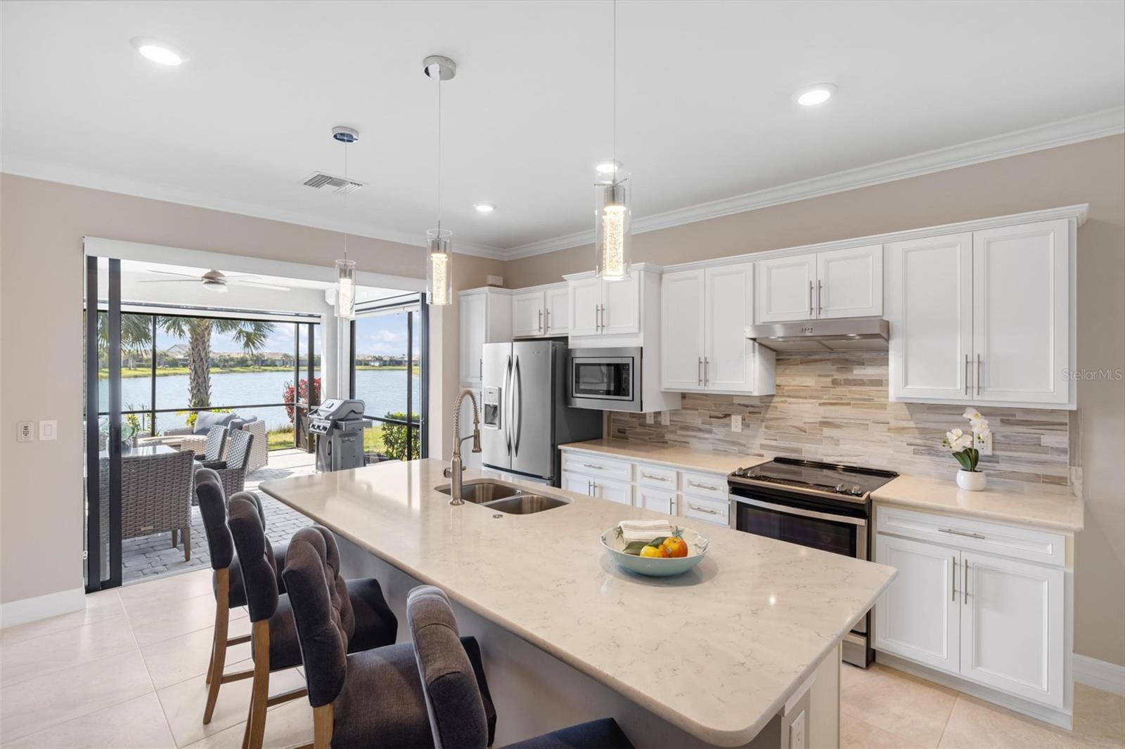 Entre em uma casa que redefine conforto e estilo em ISLANDWALK. Construída em 2020, esta residência unifamiliar meticulosamente projetada se destaca por sua localização imbatível, a apenas uma curta caminhada do Clubhouse e atualizações premium que superam até mesmo uma casa modelo de construtor. Desde o momento em que você entra pela porta, o design cuidadoso e os acabamentos impecáveis causam uma impressão imediata. PORTAS DE OITO PÉS, amplo piso de TELHA de 20 polegadas, MOLDURA DE COROA e uma PAREDE DE PEDRA PERSONALIZADA criam uma atmosfera acolhedora, mas refinada, na grande sala. A cozinha aberta está lindamente decorada com bancadas de QUARTZO, eletrodomésticos de aço inoxidável e ARMÁRIOS DE BUFFET ESTENDIDO, oferecendo armazenamento e estilo. Quer esteja a preparar uma refeição ou a divertir-se, este espaço foi concebido para reunir amigos e familiares. Os espaços internos e externos fluem sem esforço, atraindo você para a ampla varanda que oferece vistas deslumbrantes e ininterruptas do lago. O LANAI GRANDE, completo com assentos cobertos e área protegida, oferece o cenário perfeito para tudo, desde manhãs tranquilas com café até reuniões animadas ao pôr do sol. Desfrute de tranquilidade com TRÊS TELAS DE TEMPESTADE ELETRÔNICAS, que oferecem proteção aprimorada, OPERAÇÃO REMOTA para preparação sem esforço e uma maneira elegante de ampliar seu espaço fechado. Para maior comodidade e segurança, todas as JANELAS são equipadas com PERSIANAS DE HURRICANE ACCORDIAN, permitindo uma preparação rápida e descomplicada para tempestades. A suíte principal é um santuário próprio, um espaçoso closet, uma banheira tipo spa com chuveiro de vidro sem moldura de grandes dimensões e persianas de privacidade permitem que você aprecie a vista enquanto mantém uma sensação de isolamento. UMA COBERTURA/ESTUDO COM CLOSET permite maximizar a flexibilidade do espaço ou funcionar como terceiro quarto sempre que necessário. Este uso inteligente do espaço aumenta a adaptabilidade e o apelo da casa. Este é um espaço que você vai querer experimentar em primeira mão. Melhorias residenciais inteligentes, iluminação LED personalizada e PERSIANAS DE PLANTAÇÃO acrescentam conveniência e sofisticação a toda a casa. Até a GARAGEM AMPLIADA é meticulosamente mantida, apresentando PISO EXPOXY e um espaço de oficina dedicado que certamente irá agradar. Além da casa, o ISLANDWALK oferece mais do que apenas um lugar para morar – é uma EXPERIÊNCIA DE ESTILO DE VIDA completa. Esta comunidade vibrante está repleta de comodidades e atividades para manter todos os dias emocionantes, incluindo dois clubes, piscinas estilo resort e olímpicas, academias de ginástica, quadras de pickleball e tênis, bocha, parque para cães, quadras de basquete, trilhas para caminhada e eventos durante todo o ano organizados por diretores de atividades em tempo integral. Isto é mais do que apenas uma casa – é uma rara oportunidade de desfrutar de belos cenários, comodidades de primeira linha e o melhor da vida na Flórida. Venha experimentar você mesmo - agende sua exibição privada hoje mesmo!