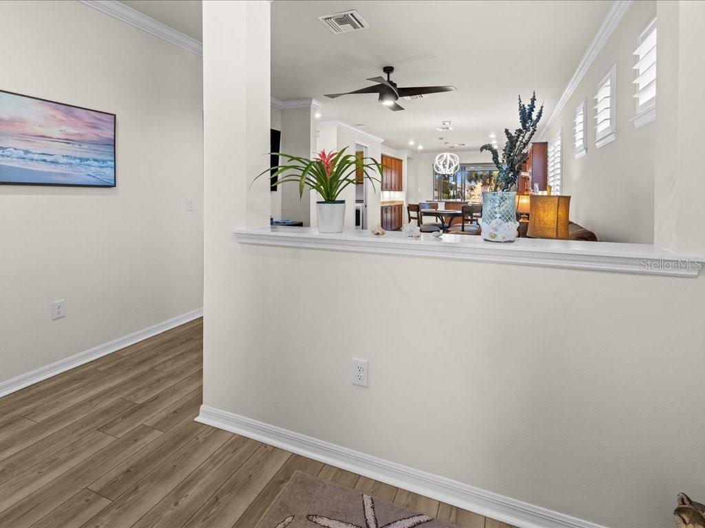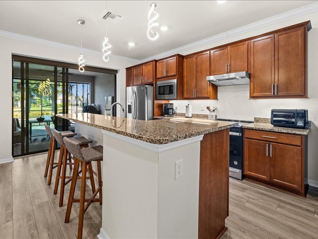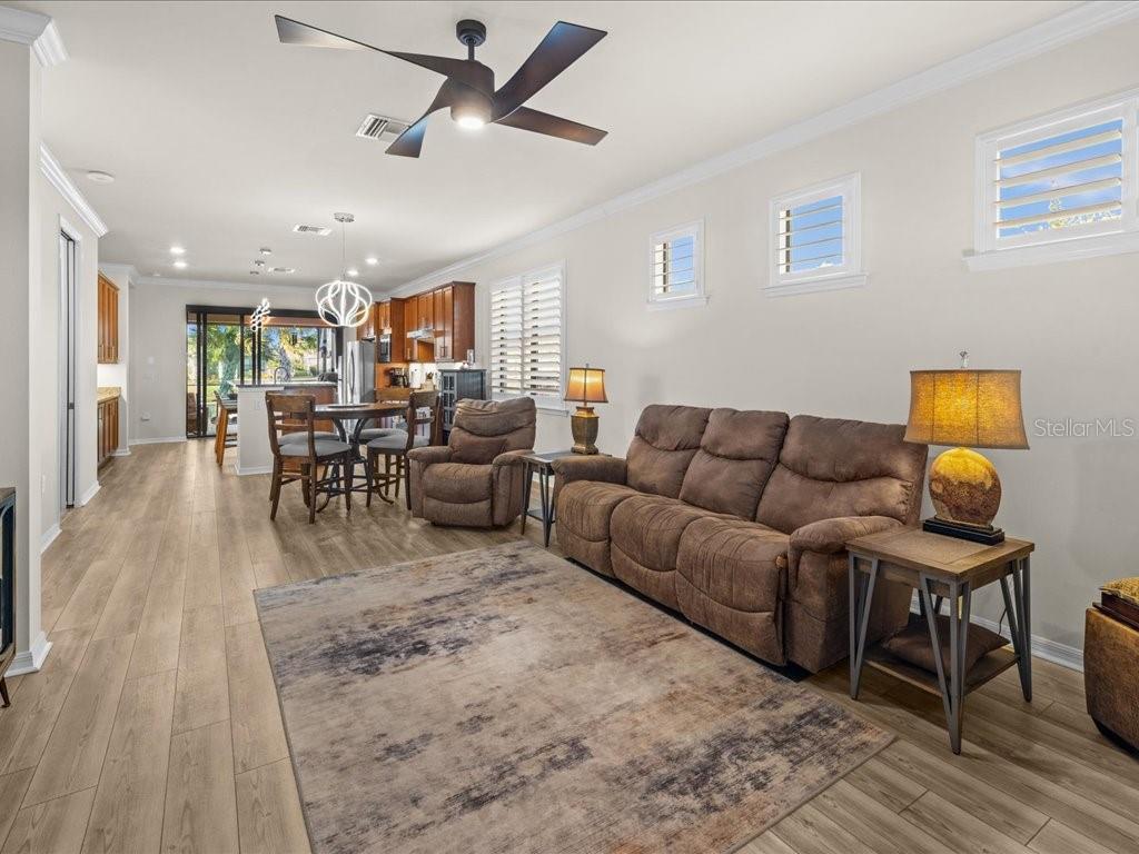 Viva o estilo de vida da Flórida com o qual você sempre sonhou nesta casa lindamente decorada de 3 quartos e 2 banheiros, situada em um terreno de esquina localizado no altamente desejável IslandWalk, no West Villages, em Veneza. A partir do momento em que você passa pela porta decorativa de vidro, seus olhos são atraídos pela área de estar aberta até as portas deslizantes de vidro e para a piscina aquecida de água salgada com vista para um lago tranquilo - o cenário perfeito para o café da manhã, banhos ao pôr do sol ou receber amigos. A piscina possui muro construído, cascata e iluminação aprimorada. Foi canalizado para uma cozinha ao ar livre. Telas elétricas Impact Ultra Shield e controle manual foram instaladas na varanda. Painéis de proteção contra tempestades transparentes para todas as janelas. A cozinha cuidadosamente projetada combina estilo e função com bancadas de granito, armários atualizados, eletrodomésticos de aço inoxidável, iluminação sob o armário, máquina de lavar louça elevada, bandejas extraíveis e uma lixeira embutida. A suíte principal é um retiro privado com closet personalizado, banheira tipo spa com pia dupla, toalete privativo e box amplo com chuveiro com efeito de chuva. Dois quartos de hóspedes e um banheiro de hóspedes bem equipado proporcionam conforto e privacidade para familiares ou visitantes. Os destaques adicionais incluem uma lavanderia com armários, pia e uma conveniente rampa de passagem para lavanderia, sancas e venezianas por toda parte, fiação doméstica inteligente e uma fechadura digital na porta da frente. A garagem para dois carros recentemente revestida com epóxi inclui prateleiras atualizadas para amplo armazenamento. Desfrute de uma vida em estilo resort em um ambiente tranquilo à beira do lago - esta casa realmente tem tudo. Comodidades IslandWalk: Condomínio fechado em estilo resort com clubhouse, lagoa e piscinas, spa, academia, quadras de pickleball e tênis, bocha, trilhas para caminhada/ciclismo, parques para cães, playground e atividades sociais durante todo o ano. Vida livre de manutenção com cuidado do gramado incluído e acesso conveniente ao Wellen Park