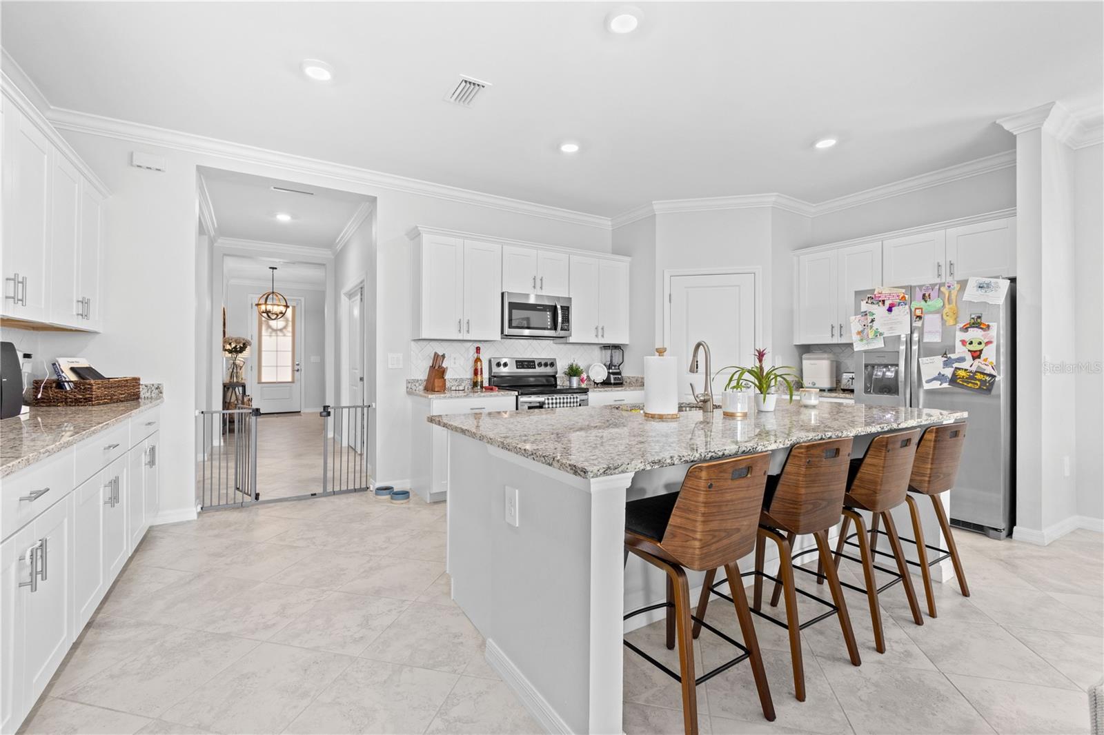 Bem -vindo a Tortuga - um condomínio fechado. Este modelo de Marsala aumenta 3 quartos, 3 banheiros, uma cova e uma grande planta aberta. A cozinha é o sonho de um chef com muito espaço de gabinete, grande ilha central, bancadas em granito e uma caminhada no armário da despensa. Os aparelhos de roubo de aço inoxidável acrescentam esse toque extra. A planta baixa é ótima para entreter os hóspedes - ele abre para a área de jantar e a família/sala de estar. Persianas elegantes de plantações em toda a casa e sombra retrátil eletrônica na grande porta deslizante. A suíte master oferece um walk-in mais próximo, a banheira de imersão, a grande caminhada no chuveiro, a bancada de granito de vaidade dupla e o armário de água separado. O elegante ladrilho de cerâmica é exibido em toda a casa. O segundo quarto tem seu próprio banheiro privativo com chuveiro - perfeito para a privacidade dos seus convidados. O terceiro banheiro aumenta uma combinação de banheira/chuveiro e fica em frente ao quarto da frente. O Den é espaçoso e pode ser usado como sala de leitura, sala de jogos ou escritório em casa. O rastreado em Lanai tem vista para o playground com fácil acesso. A lavanderia é espaçosa e também tem uma pia de lama por conveniência. Esta casa também oferece uma garagem de 2 carros. A casa está convenientemente localizada perto do novo Wellen Park Community, Braves "Cool Today" Stadium e proximidade de restaurantes, lojas e muito mais!