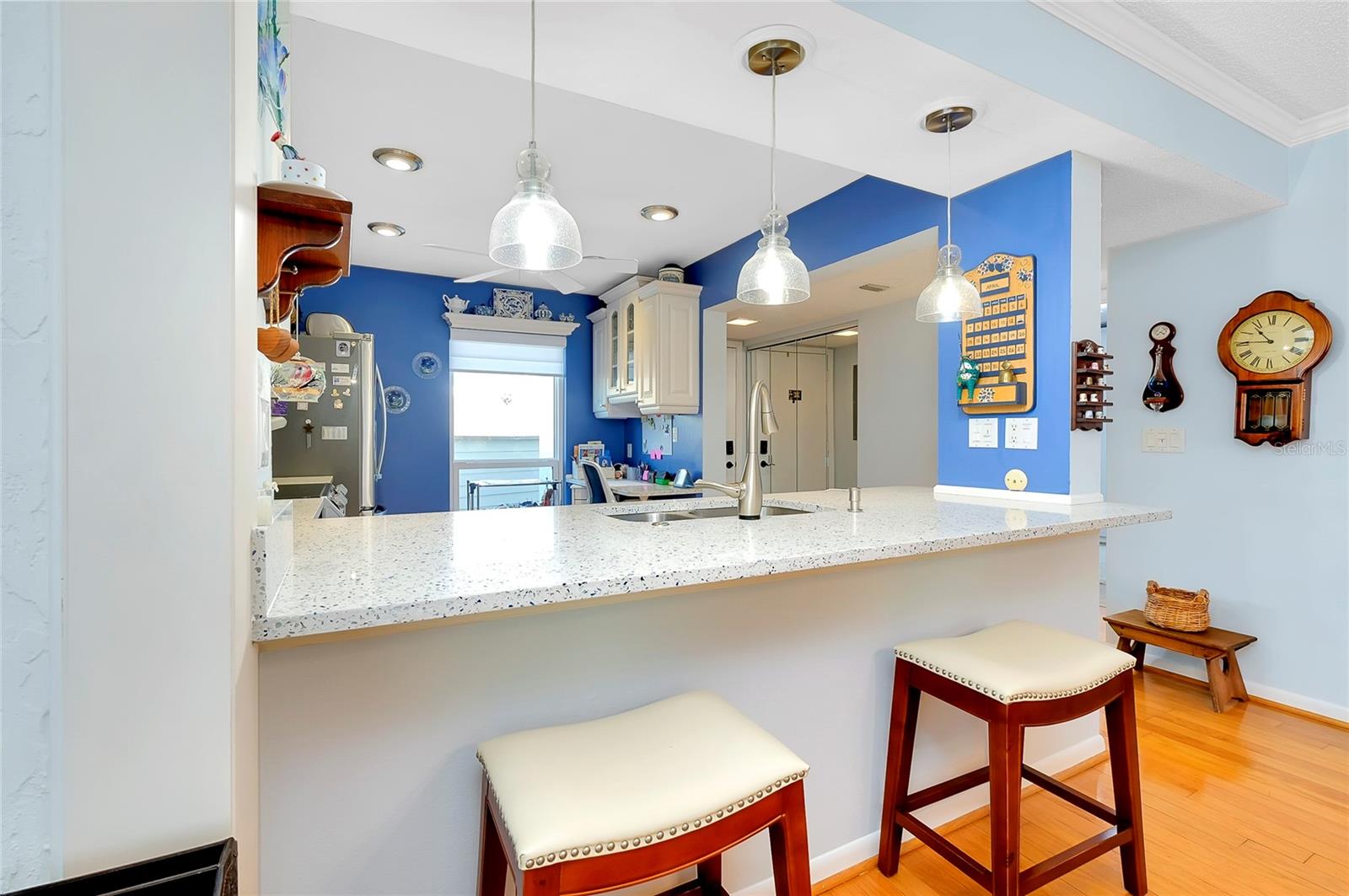 Lindo condomínio atualizado no primeiro andar espaçoso 2 quartos, 2 banheiros aninhados em Bird Bay Village oferece uma vista serena a poucos passos da piscina comunitária. A cozinha atualizada de 2020 brilhante e arejada possui aparelhos inoxidáveis com uma bancada colorida de Corian e mesa embutida. O espaço oferece um acolhedor retiro de relaxamento ou entretenimento com uma sala de jantar de piso plano aberto, combinação de sala de estar com belos pisos de madeira. Desfrute da Lanai com vista para a paisagem madura com toda a luz do sol entrando através dos controles deslizantes. O quarto primário recém-carpetado está equipado com um closet, além de um banheiro com chuveiro de azulejos, vaidade e pia atualizados. Seu hóspede apreciará o quarto completo com uma cama Murphy e mesa embutida. O segundo banheiro foi atualizado com nova vaidade e pia. Aproveite o seu café na ensolarada sala da Flórida com muita luz solar. Os recursos adicionados incluem 2020 janelas de furacão instaladas e tons elétricos em todo o condomínio. As portas deslizantes que levam a um deck externo cercadas por vegetação tornam -o um retiro perfeito. O AC foi substituído em 2020. Do lado de fora, os moradores podem desfrutar de várias comodidades para a vida ao ar livre, desde nadar na piscina até jogar pickleball. O local conveniente para a ilha de Veneza a apenas 2 minutos é uma mistura perfeita de conforto e lazer em um cenário encantador. Adjacente à Bird Bay Village está o Legacy Trial, uma ciclovia dedicada que se estende até Sarasota. Bird Bay também apresenta um Centro de Fitness, Biblioteca e Clubhouse. Aprecie as quadras de tênis e piscina, shuffleboard e quadras de bocha. Não há necessidade de sair da propriedade! Venha para uma visita, fique por toda a vida.