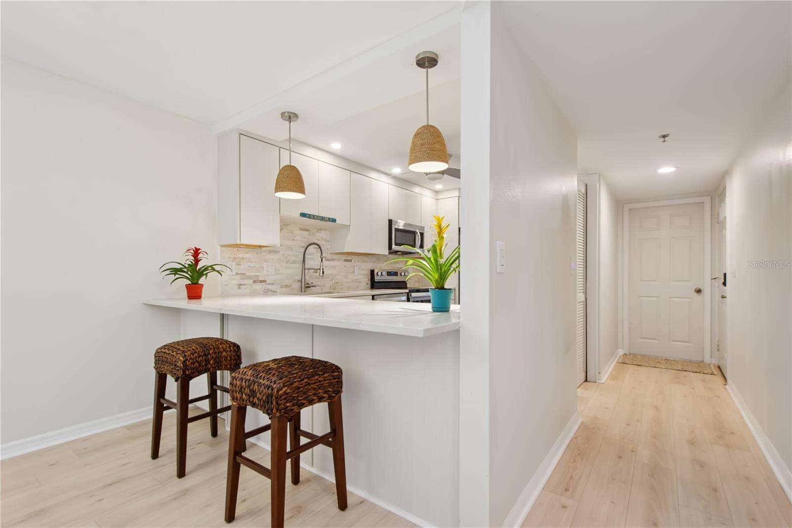 Condomínio elegantemente renovado de 2 camas e 2 banheiros no primeiro andar com garagem! Bem-vindo ao Easy Living neste condomínio lindamente atualizado no primeiro andar, com 2 quartos espaçosos e 2 banheiros completos. O piso de tábuas de vinil de luxo flui por toda parte, oferecendo um toque moderno e de baixa manutenção. Aproveite a conveniência de sua própria garagem privada com amplos armários de armazenamento e entre em sua casa através do vestíbulo da garagem ou da encantadora entrada frontal. Lá dentro, você vai adorar o layout de conceito aberto-perfeito para entretenimento ou simplesmente relaxar em conforto. A cozinha atualizada é um verdadeiro showstopper, completo com: armários novinhos em folha, backsplash de azulejos elegantes, ilha de granito elegante, ideal para cozinhar, jantar ou hospedar, aparelhos de aço inoxidável (geladeira, lava-louças, microondas, alcance/forno), iluminação recente, ventilador de teto e manobra além de uma lavadora e secadora empilhável na unidade conveniente Da cozinha, desfrute de um fluxo contínuo para a sala de jantar, com um lustre de globo chique e uma sala de estar cheia de luz com seu próprio ventilador de teto e acesso a um lanai exibido-seu oásis privado com vistas pacíficas do jardim e exposição ao sul ensolarada. No corredor, você encontrará um armário de utilidade, um armário de linho e acesso ao quarto da frente e ao banheiro de hóspedes. O quarto da frente oferece um armário duplo, ventilador de teto e persianas para privacidade. Este condomínio combina conforto, conveniência e estilo - tudo em uma localização privilegiada. Agende sua exibição hoje e veja como é a vida sem esforço! O Golf Vista está próximo das praias de Veneza e Nokomis, bem como da miríade de lojas, cafés e restaurantes na Avenida de Veneza. Perto do Hospital Memorial de Sarasota em Laurel Road e I-75, escolas, campos de golfe e casas de culto.