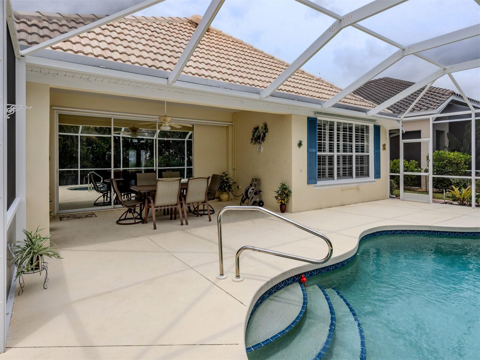 Bem -vindo para casa em Wexford, no Green, localizado em Plantation Golf and Country Club. Imagine -se nesta lindamente mobiliada, bem conservada, 3 camas, 2 banheiros, 2 carros, garagem, piscina em casa. Este condomínio fechado oferece um estilo de vida livre de manutenção para que você possa passar mais tempo no campo de golfe, na piscina ou até melhor, na praia. Esta grande casa de plano aberto apresenta pisos de azulejos nos principais espaços de estar e é uma planta baixa dividida em que foi relembolada e o HVAC foi instalado em 2018. Desfrute de relaxar na Lanai e nadar na piscina solar. Nenhuma taxa de CCD e esta casa não está em uma zona de inundação! A associação ao golfe é opcional e, além de golfe, as outras comodidades incluídas são tênis, pickleball, fitness center, piscina, bocha e eventos sociais e de refeições. Localizado perto do centro de Wellen Park e a apenas alguns quilômetros a mais para o centro de Veneza, ambos oferecem uma variedade de refeições, compras, opções de golfe e praias. Ligue hoje para uma exibição! Você vai adorar aqui!