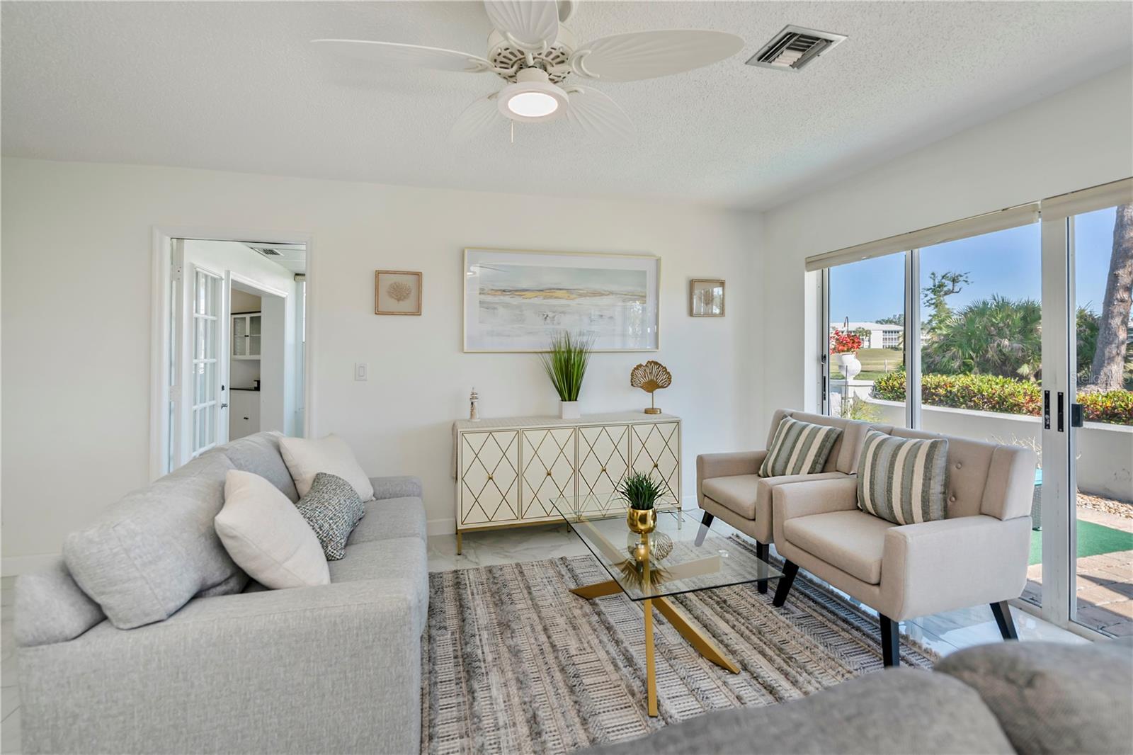 A sua casa de sonho está agora aqui e pode ser sua! Torne -se totalmente a chave! Esta casa requintada da Villa foi completamente remodelada e é totalmente mobiliada e pronta para se mudar. Tudo o que precisa é você! A villa possui dois quartos, dos quais um é um segundo quarto (convidado) com um grande armário e vista para o lanai traseiro, o quarto principal possui um conjunto de cama king size, banheiro privativo com 2 áreas de pia separadas, um chuveiro grande e um belo piso de azulejo e um grande armário. Os recém -remodelados recursos espaçosos de cozinha, belos armários de clínica suaves e bonitos, novos bancadas de granito. Ambos os banheiros da vila têm os mesmos balcões de granito combinando e armários de estilo shaker suave. Existem novas luminárias e ventiladores de teto em toda a casa. Exclusivo desta casa é uma bela sala de sol, perto da área da cozinha, com persianas de privacidade. Ótimo para plantas ou torná -lo um escritório. O exterior inclui dois pátios, dos quais o pátio fora dos dois quartos é um lugar privado e perfeito para desfrutar do seu café da manhã. O pátio traseiro tem uma visão do 5º Fairway e 6º buraco no campo de golfe Bobcat. Acabe de fora do pátio privado há uma lavanderia espaçosa que inclui uma lavadora, secadora e pia. com novo gabinete. Também é ótimo para armazenamento de bicicletas, ferramentas de jardinagem ou seus clubes de golfe. A vila tem um novo telhado em janeiro de 2024. Vem com um novo aquecedor de água quente e calor central e AC. Também está incluída a sua TV a cabo como parte das taxas do HOA. A uma curta caminhada na rua, há uma piscina aquecida com um clube para os proprietários de casas na Cerromar Way South Street! O Plantation Golf and Country Club também oferece associações individuais (opcionais). Associação, se você escolher, oferece "Main Club House, piscina grande e banheira de hidromassagem, barra de lanche, sala de ginástica e quadras de bocha, tênis e quadras de pickleball. O clube principal apresenta refeições finas, barra de lounge, belas vistas do campo de golfe, de dentro ou de fora. Rodadas de qualificação uma vez por ano.