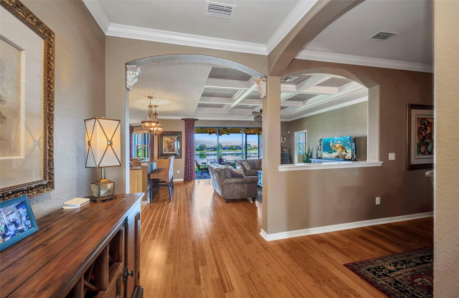 Chave na mão com móveis! A casa deste designer de interiores apresenta US $ 80 mil em atualizações: ótima sala com teto em caixotões, iluminação atualizada, piso de madeira de bambu, persianas, cozinha remodelada com novos eletrodomésticos gourmet, box de vidro para chuveiro, fachada de pedra, detalhes internos / externos em paredes de tijolos, armazenamento embutido na garagem e interior e exterior recém-pintados. Além disso, a casa fica em um lago de 8 acres que oferece vistas panorâmicas do mar, “sem” as feias linhas de energia de alta tensão encontradas em outras casas! Dentro da planta de conceito aberto, a sofisticação encontra o conforto. A casa foi projetada e lindamente mobiliada, completa com luxuosos móveis de couro italiano, madeiras nobres, tapetes e lençóis importados, decoração requintada e acessórios (selecionados Wall Art não transmitem), permitindo que você comece a viver seu sonho sem esforço. A cozinha gourmet ancora a área de estar, com eletrodomésticos premium, armários personalizados em branco quente, iluminação de destaque e toques de designer, ideais para a vida cotidiana e entretenimento. O Chef da sua família vai adorar criar refeições luxuosas com o forno/fogão duplo Forno French Door. O Breakfast Nook apresenta uma parede com detalhes em tijolos e iluminação aprimorada, criando um espaço que parece íntimo e charmoso. Para reuniões maiores esta casa oferece uma espaçosa sala de jantar. O design sofisticado da casa se estende ao ar livre através de grandes portas de vidro deslizantes, onde a varanda em estilo pátio apresenta uma impressionante parede de tijolos de design, mesas de jantar ao ar livre e churrasqueira, tudo realçado por detalhes arquitetônicos do teto. Esta casa de 4 quartos e 2 banheiros fica em um terreno enorme em um dos maiores lagos de Gran Paradiso. Oferece uma suíte master privativa com cama king-size, closet, banheiro privativo com pia dupla, banheira de imersão, chuveiro com box de vidro e vaso sanitário privativo. Sancas, caixotões e tetos em bandeja enfeitam as paredes do quarto principal/banheiro e G/R, além de sancas no D/R, cozinha, recanto e hall de entrada. Um segundo quarto oferece outra cama king size para seus convidados. Os dois últimos quartos estão sendo usados como sala de mídia com som surround, proporcionando uma experiência de cinema com qualidade de cinema, e outro é um Home Office totalmente equipado. A arrumação não é problema pois a garagem para 3 carros tem armários embutidos, bancada de trabalho e arrumação superior. Esta casa reside em Gran Paradiso, um condomínio fechado de estilo de vida de inspiração toscana com 1000 acres de trilhas naturais, piscina/banheira de hidromassagem estilo resort, quadras de tênis e pickleball, academia de ginástica de última geração, vestiários com sauna/vapor, salas de cartas/bilhar/artesanato, juntamente com um diretor social de estilo de vida. É mais que uma casa, é um estilo de vida! X ZONA DE INUNDAÇÃO - Não é necessário seguro contra inundações. A casa inclui sistema de segurança, paisagismo atualizado e sistema de irrigação. As taxas HOA cobrem manutenção de gramado, serviços de cabo/Internet e segurança fechada. (Detalhes adicionais do Turnkey podem ser encontrados nos Anexos da Listagem.) Se a localização determina o valor, esta casa tem tudo. Endereço postal e escolas de Veneza, a poucos minutos de Publix e das belas praias do Golfo, a uma curta distância de carro de Boutique Shopping, restaurantes e entretenimento do Downtown Wellen Park e do centro histórico de Veneza - tudo isso com trilhas locais para ciclismo/caminhada, caiaque/pesca em um lago de 80 acres, campos de golfe de primeira linha, juntamente com o Atlanta Braves Cool Today Park, todas as "bases" são cobertas. Marque hoje mesmo a sua consulta para ver esta joia de casa - você não vai querer perder muitos pores do sol!