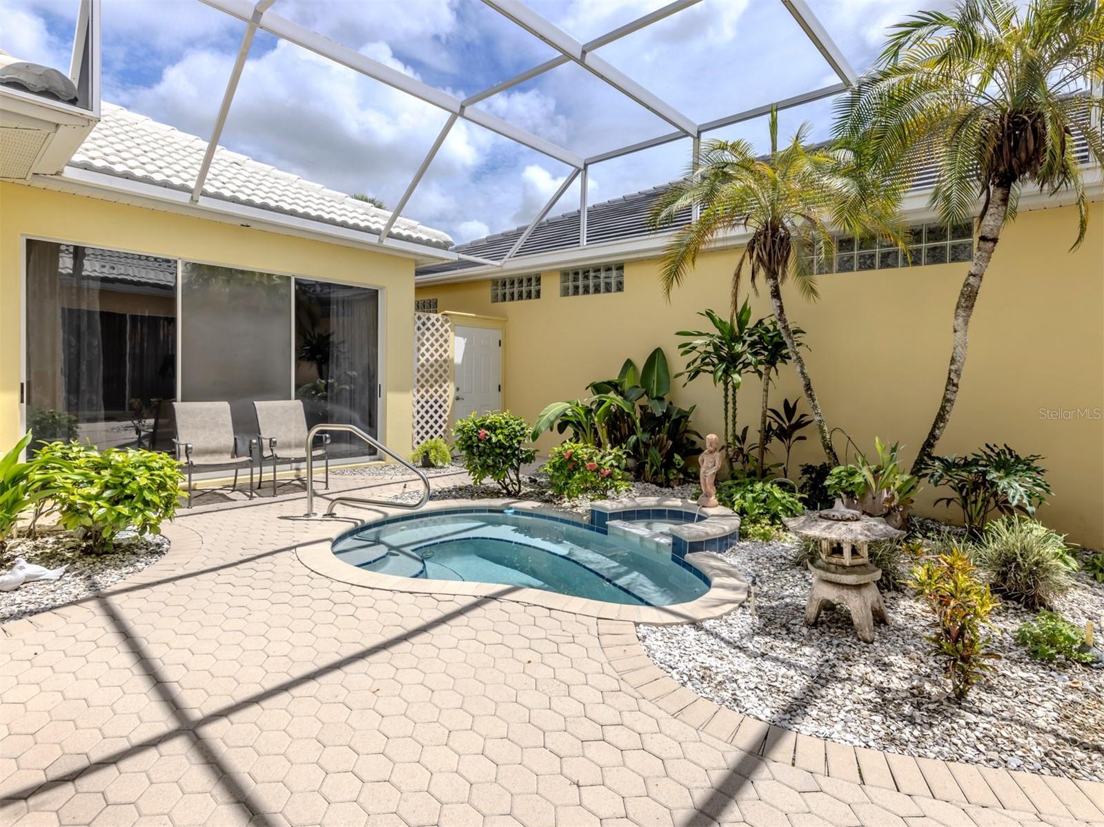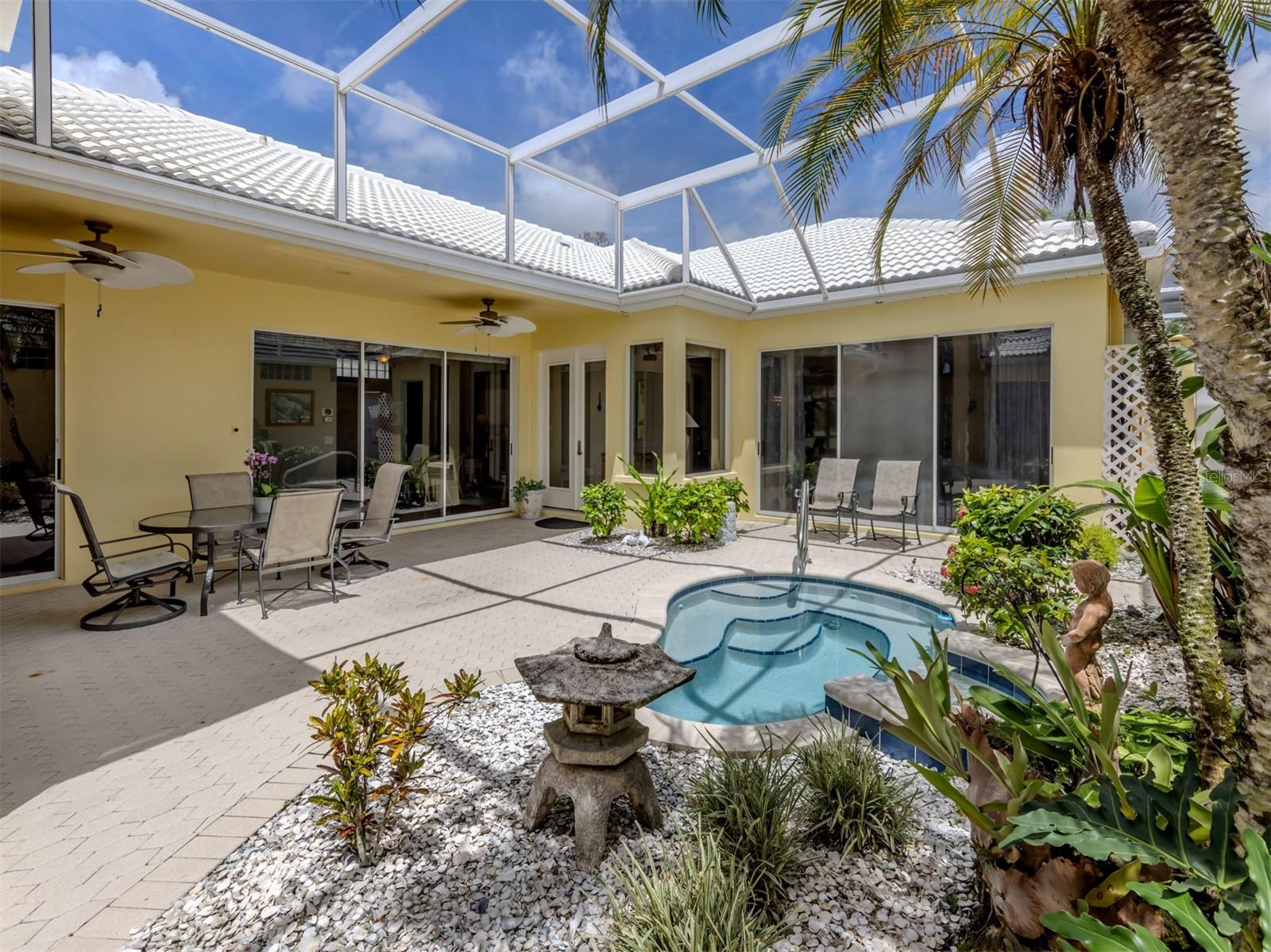Posicionada ao longo do terceiro fairway do The Venice Golf & Country Club, você encontrará esta casa com pátio cercada por uma exuberante paisagem tropical. Em um bairro livre de manutenção com piscina própria, esta residência oferece um layout aberto e luminoso, aprimorado por janelas abundantes e portas de vidro deslizantes, combinando o conforto interno com o charme descontraído da vida ao ar livre. Aproveite seu pátio privativo, ideal para relaxar ou se divertir no estilo da Flórida, com um spa reformado. A suíte principal oferece janela tipo bay window, closet e banheiro privativo. O quarto de hóspedes com banheiro se abre para o pátio através de portas de vidro deslizantes e a cabana separada tem banheiro. Esta casa é pronta para uso, com algumas exceções, e uma assinatura de golfe também está disponível. Descubra o estilo de vida incomparável do The Venice Golf and Country Club, onde começa uma vida extraordinária. Recentemente reimaginado, o clube expandido apresenta um espaçoso bar de reunião, cozinhas gourmet e comerciais e uma aconchegante fogueira. O novo Centro de Bem-Estar de última geração oferece uma abordagem holística à saúde e ao bem-estar. Os residentes desfrutam de um campo de golfe profissional de 18 buracos lindamente reformado, projetado por Ted McAnlis, quadras de tênis Har-Tru, pickleball, bocha e uma piscina e spa olímpico júnior, equilibrando vida ativa com relaxamento. Como um orgulhoso Santuário Cooperativo Audubon com certificação geográfica, o VGCC adota a gestão ambiental e a sustentabilidade. Com uma classificação financeira A-plus, a comunidade é tão sólida quanto serena. Idealmente, fica a poucos minutos de aeroportos, lojas, restaurantes, da Interstate 75, de locais culturais e do Wellen Park. Também fica a uma curta distância de carro da encantadora Ilha de Veneza, onde 22 quilômetros de praias imaculadas encontram a cintilante Costa do Golfo.