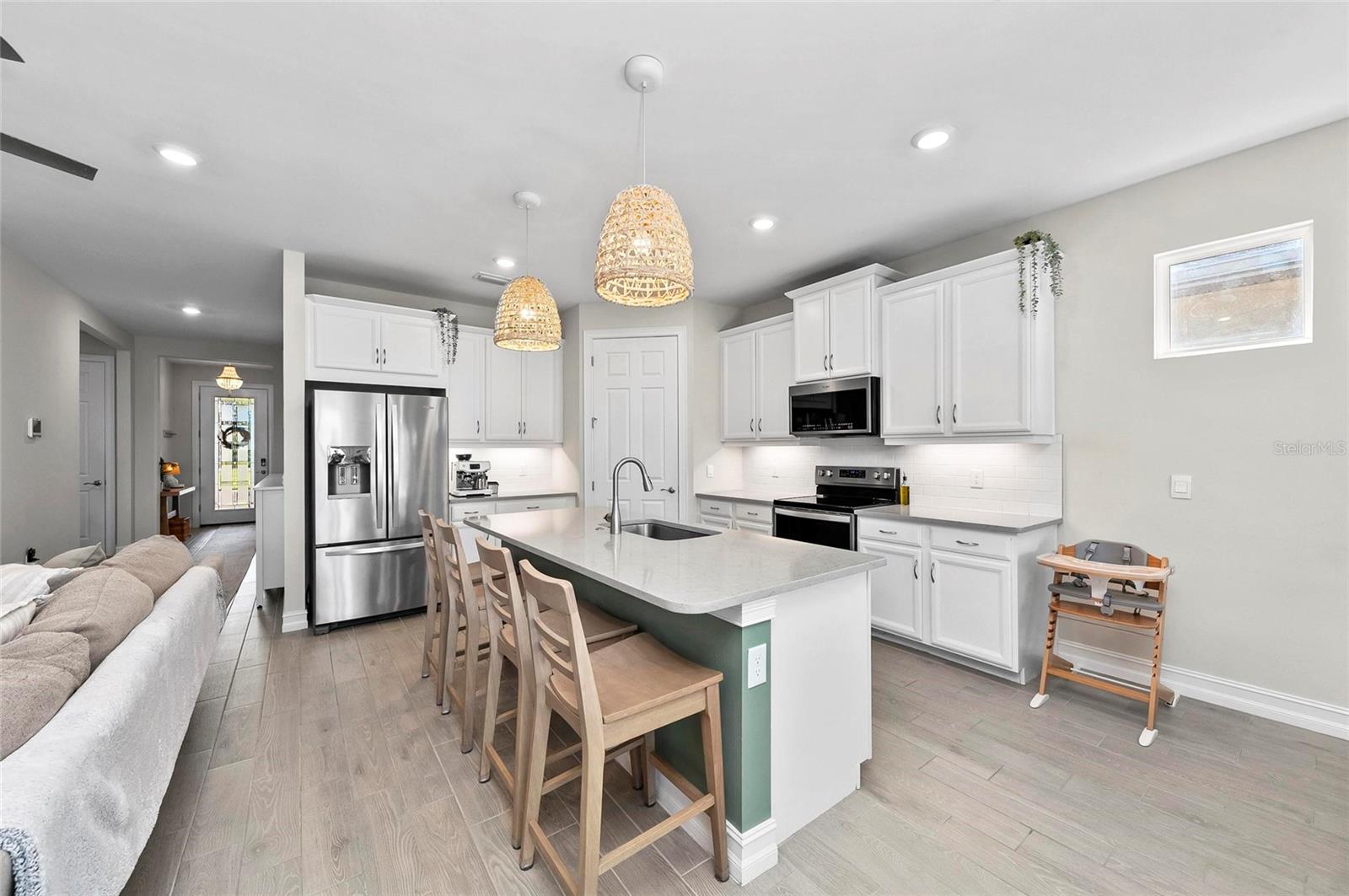 PREÇO PARA VENDER RÁPIDO **ZONA DE ESCOLA MÉDIA DE VENEZA**Quase NOVA Casa sem o novo preço e taxas de construção! Fechado, Central e BAIXO HOA! Bem-vindo a este deslumbrante modelo Delray 2023, localizado no condomínio fechado boutique de Palencia. JANELAS DE IMPACTO. Oferecendo mais de 2.000 pés quadrados de área útil, esta casa de 4 quartos e 2 banheiros está em perfeitas condições e repleta de luz natural graças à sua desejável exposição ao sul. Entre para encontrar uma verdadeira planta dividida com dois quartos de hóspedes na frente, um quarto de hóspedes adicional (perfeito para um escritório doméstico ou escritório) e uma espaçosa suíte master escondida na parte de trás da casa. O master possui closets duplos, pia dupla com bancadas de quartzo, chuveiro de vidro sem moldura com azulejos do chão ao teto e um vaso sanitário privativo. A cozinha de conceito aberto flui perfeitamente para as salas de reunião e de jantar. Desfrute de uma grande ilha de quartzo, backsplash de azulejos de metrô, iluminação pendente personalizada, armários de fechamento suave com gavetas removíveis e controles deslizantes largos que apresentam longas vistas para o mar. A vida ao ar livre é um destaque aqui: uma varanda coberta e com tela, além de um pátio de pavimentação estendido com vista para o quintal totalmente cercado, oferecendo amplo espaço para uma futura piscina. As características adicionais incluem uma entrada de automóveis alargada, portas de 8', piso de cerâmica tipo madeira, porta frontal totalmente em vidro, iluminação personalizada atualizada, piso de garagem em epóxi e uma lavanderia espaçosa com prateleiras e preparação de pia. Palencia é uma comunidade boutique de apenas 203 casas, com baixas taxas HOA que cobrem manutenção de gramado, acesso fechado e comodidades comunitárias – e sem taxas de CDD! Palencia tem uma piscina comunitária em estilo resort, clube, quadras de bocha, parque para cães e academia. Idealmente localizado perto da Legacy Trail, reservas naturais, restaurantes e lojas.