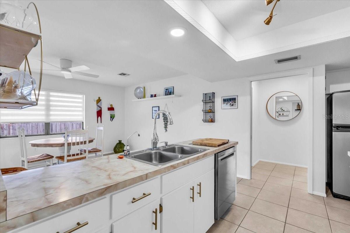 Uma ou mais fotos foram virtualmente encenadas. PREÇO PARA VENDER! Esta casa unifamiliar de 2 quartos e 2 banheiros oferece 1.750 pés quadrados de espaço confortável no sul de Veneza! A planta baixa aberta incentiva a criatividade e a flexibilidade do design. A ampla sala de estar flui perfeitamente para o quarto fechado da Flórida, proporcionando espaço extra durante todo o ano. A grande cozinha dispõe de eletrodomésticos em aço inoxidável (fogão e máquina de lavar loiça 2023), armários renovados e uma espaçosa área de refeições, ideal para reunir familiares e amigos. A disposição dividida dos quartos oferece espaço e privacidade. O quarto principal tem casa de banho privativa e dois armários, sendo um deles walk-in, e tem acesso direto à Sala Florida. O segundo quarto tem carpete Karistan Berber neutro totalmente novo, tornando-o um refúgio agradável para um hóspede ou escritório em casa. Os principais sistemas da casa foram bem cuidados e as atualizações incluem um novo telhado e isolamento de espuma em spray (2023), novo sistema HVAC, todos os novos dutos e aberturas de ventilação (2023), tanque de água quente mais recente, lavadora e secadora (2022) e sistemas sépticos e de água foram mantidos regularmente. Como residente do Sul de Veneza, por uma pequena taxa anual, você terá a opção de embarcar no South Venice Beach Ferry para acesso privativo à praia ou lançar seu barco na rampa para barcos do Sul de Veneza, nas proximidades. Esta localização ideal fica a poucos minutos das praias de Manasota e Venice, da histórica Veneza, de inúmeras lojas e restaurantes próximos, e do Centro Cívico Comunitário irá mantê-lo entretido com eventos regulares. Esta casa fica em um bairro tranquilo, não tem HOA, nem CDD, e não está em uma zona de inundação. Não perca esta oportunidade de torná-lo seu!