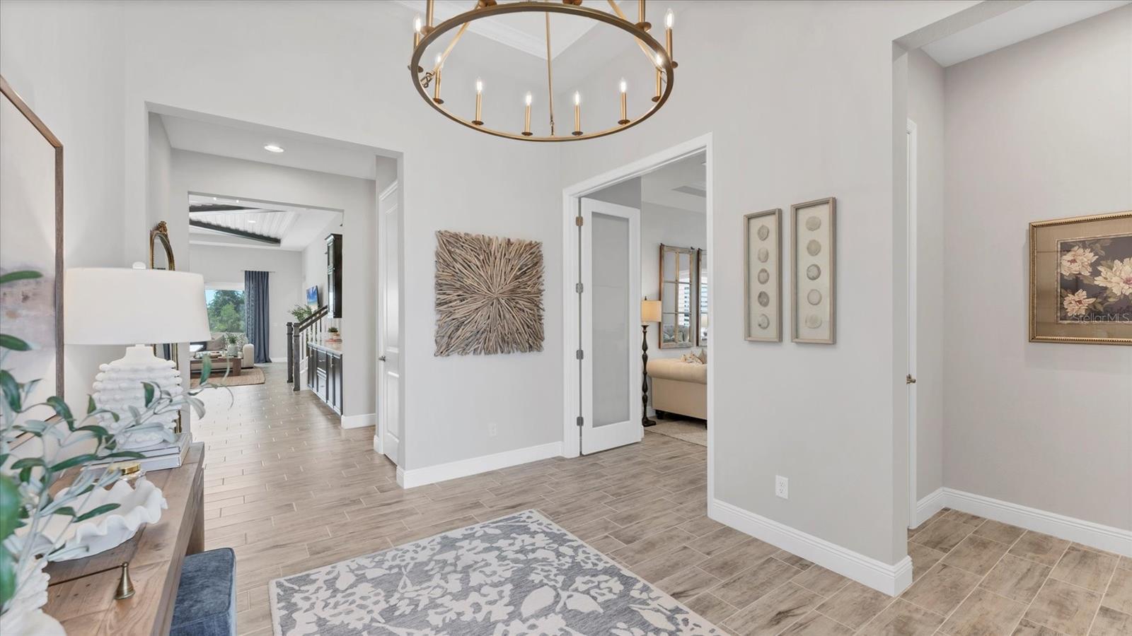Experimente uma vida de luxo no bairro Everly de Wellen Park, um condomínio fechado, privado e rico em comodidades, projetado para quem aprecia elegância, conforto e conexão. Esta residência requintada incorpora a vida costeira moderna com mais de 3.600 pés quadrados de espaço interior refinado e um amplo retiro de entretenimento ao ar livre. Saia para sua piscina e spa de água salgada com design personalizado, completo com uma plataforma solar e deck de sub-base de concreto - projetado para evitar assentamentos e deslocamentos do deck da piscina principal, proporcionando manutenção mais fácil a longo prazo. A varanda de azulejos de travertino, os generosos espaços cobertos e o cenário de preservação natural criam um oásis tranquilo e privado, ideal para entretenimento ou relaxamento. No interior, uma paleta suave e neutra e acabamentos selecionados pelo designer criam uma atmosfera de calor e sofisticação. A cozinha gourmet é o sonho de qualquer chef, com eletrodomésticos Monogram, cozinha a gás, duas despensas espaçosas e um layout personalizado perfeito para recepções e encontros. Um escritório ou escritório dedicado oferece espaço flexível para trabalhar remotamente ou desfrutar de um retiro tranquilo. A suíte principal serve como um santuário luxuoso, com banheira de imersão, chuveiro com efeito de chuva e toques de design elegantes por toda parte. Três quartos e banheiros adicionais proporcionam conforto e privacidade para a família e convidados. O segundo andar amplia a versatilidade da casa, oferecendo um quarto, banheiro completo e uma área aberta ideal para sala de mídia, espaço de jogos ou retiro infantil. Os entusiastas de automóveis e amantes do golfe irão apreciar a configuração da garagem para três carros, com uma garagem para dois carros voltada para a frente e uma garagem para um carro com entrada lateral - perfeita para um carrinho de golfe ou armazenamento extra. Os moradores de Everly desfrutam de acesso às principais comodidades da comunidade, incluindo piscina e spa em estilo resort, academia de ginástica de última geração, quadras de pickleball e um clube elegante - tudo projetado para complementar o estilo de vida vibrante e ativo que define o Wellen Park. Convenientemente localizado e a apenas um passeio de carrinho de golfe do centro de Wellen Park, perto das praias locais, lojas e restaurantes de Veneza, Atlanta Braves Spring Training Facility, I-75 e aeroportos da área. Cada centímetro desta casa apresenta um artesanato impecável e um design personalizado, criando uma residência que é tão deslumbrante quanto funcional. Projetada tanto para beleza quanto para funcionalidade, a casa possui janelas com classificação de impacto para proteção contra intempéries, eficiência energética e tranquilidade. Cada detalhe – desde a iluminação de inspiração costeira até o fluxo arquitetônico cuidadoso – reflete um nível de habilidade e design exclusivo da vida Everly. Seja entretendo-se à beira da piscina, relaxando no spa ou reunindo-se no coração da casa, esta propriedade oferece um estilo de vida costeiro elevado em um dos bairros mais prestigiados de Wellen Park. Não há espera para construir neste inverno - esta casa extraordinária está completa e pronta para recebê-lo em casa.