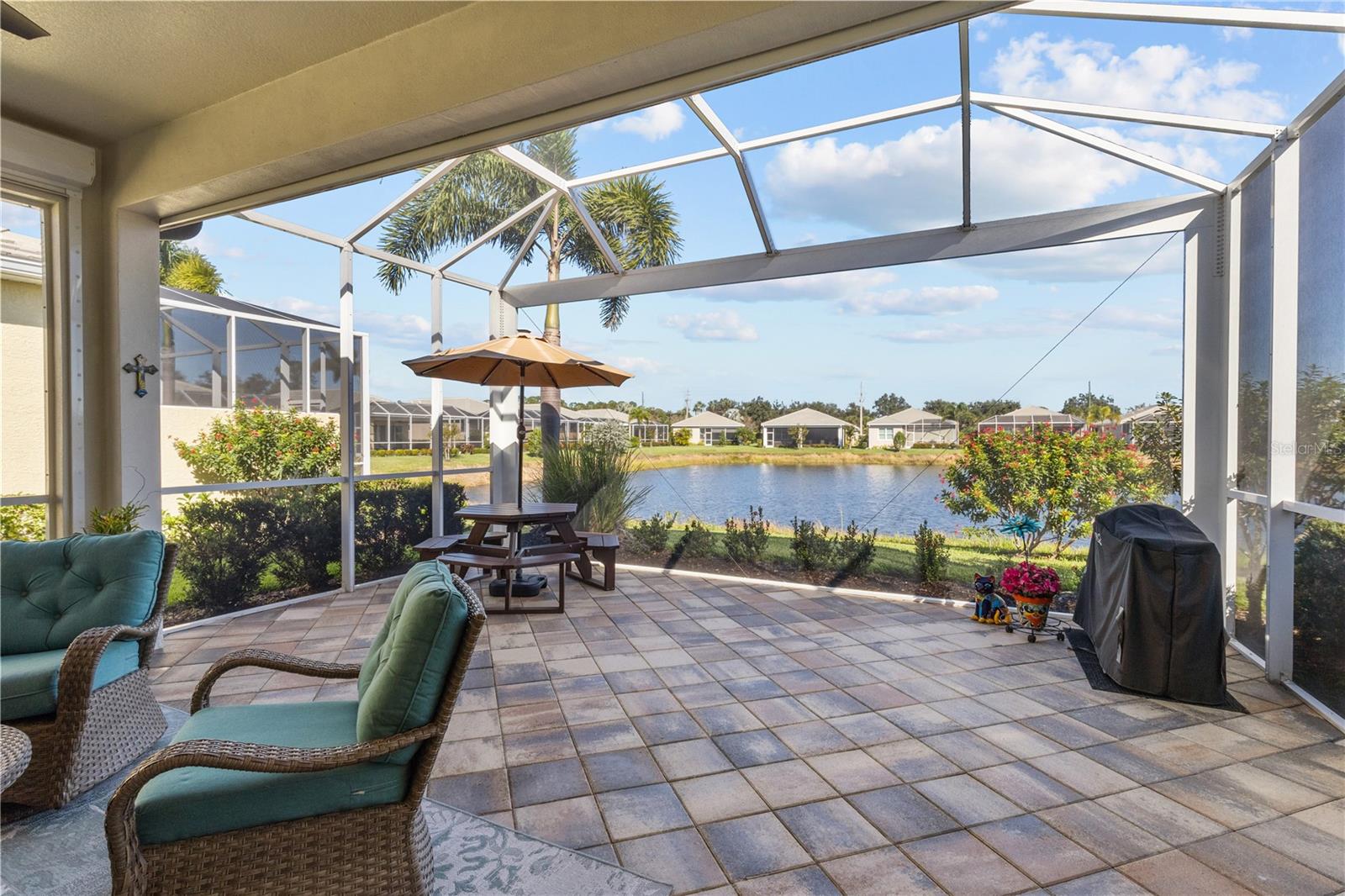 Casa com pátio livre de manutenção e vista para o lago em St. Andrews East no The Plantation Golf & Country Club. Experimente o melhor da Flórida vivendo nesta linda casa com pátio de 3 quartos e 2 banheiros, garagem para 2 carros e vista tranquila para o lago. A planta aberta é iluminada e convidativa, destacada por tetos altos, sancas, venezianas, detalhes personalizados e uma lareira elétrica. A casa foi decorada com bom gosto e a maioria das peças pode ser incluída na compra. Um inventário detalhado está disponível mediante solicitação. A espaçosa cozinha possui eletrodomésticos de ardósia resistentes a impressões digitais, fogão de indução, bancadas de granito, armários personalizados com inserções de vidro, balcão para café da manhã e uma charmosa copa emoldurada por janelas salientes. A grande sala se abre para uma varanda de grandes dimensões com uma nova tela Clear View, enquadrando perfeitamente a vista desobstruída do lago. A suíte principal oferece dois closets, pias duplas e chuveiro em estilo romano. Os hóspedes apreciarão sua suíte privativa com closet grande - ideal para armazenamento extra - e um luxuoso banheiro com box amplo. O terceiro quarto serve actualmente de arrumos e a casa está equipada com aspiração central. A proteção contra furacões é fácil, com janelas isoladas com classificação de impacto e persianas elétricas retráteis na varanda, tornando-o pronto para tempestades em minutos. Para maior comodidade, a garagem possui uma porta elétrica retrátil, permitindo ar fresco e luz, mantendo o espaço confortável. Com a propriedade de um condomínio, a manutenção externa é totalmente cuidada - perfeita para viajantes frequentes ou para quem procura um estilo de vida despreocupado. Não há taxa de CDD e os residentes desfrutam de um clube ativo e de duas piscinas comunitárias. A associação opcional ao The Plantation Golf & Country Club oferece acesso a dois campos de golfe profissionais de 18 buracos, 13 quadras de tênis Har-Tru, seis quadras de pickleball, bocha, academia, piscina olímpica Jr. Perfeitamente localizada perto de belas praias, lojas, restaurantes, Wellen Park Downtown, Atlanta Braves Spring Training Stadium e acesso conveniente à I-75 - esta casa incorpora o estilo de vida ideal de Veneza.