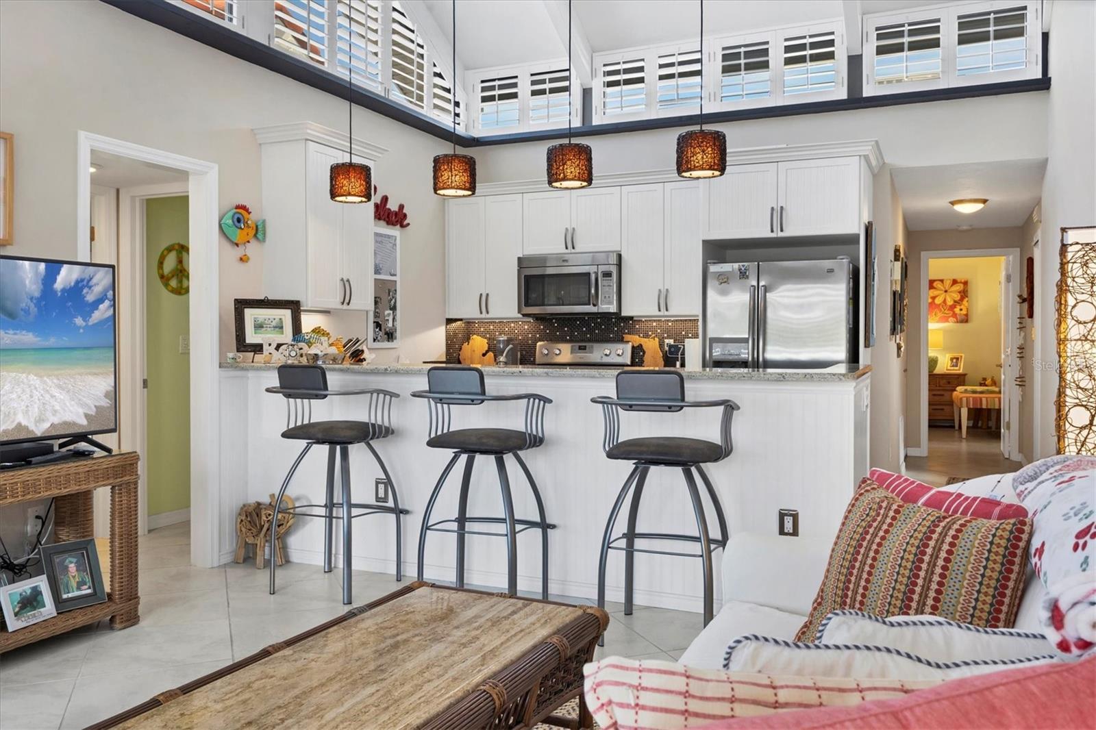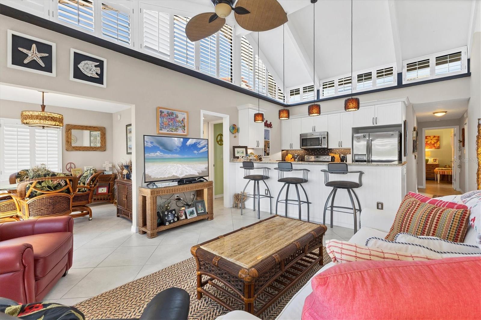 Apresse-se para este condomínio em estilo villa em uma comunidade de 13 acres em frente ao Golfo. Desfrute de um estilo de vida fabuloso sabendo que este condomínio não foi danificado por furacões. Lindamente atualizado com armários brancos e balcões de pedra na cozinha e nos banheiros. Os altos tetos abobadados permitem a entrada de uma quantidade enorme de luz que desejamos nos meses de inverno. Você merece possuir esta casa em Aldea Mar, "Village by the Sea". Traga seu animal de estimação de 30 libras porque esta comunidade aceita animais de estimação. Você terá sua garagem privada anexada à sua unidade, contendo uma grande área de armazenamento com lavadora e secadora. Existem 2 áreas de estar ao ar livre pavimentadas, uma delas com vista para o putting green e a exuberante paisagem gramada. Há também uma grande piscina comunitária, clube e quadra de shuffleboard. A política de aluguel é de no mínimo 30 dias, até 4 vezes por ano.