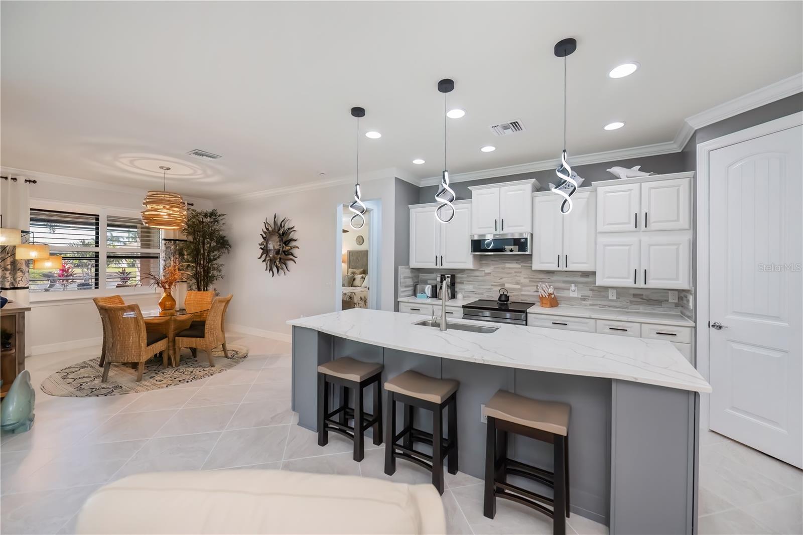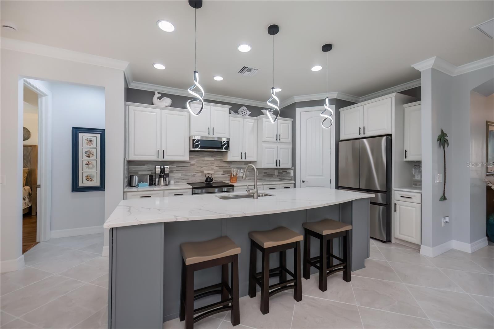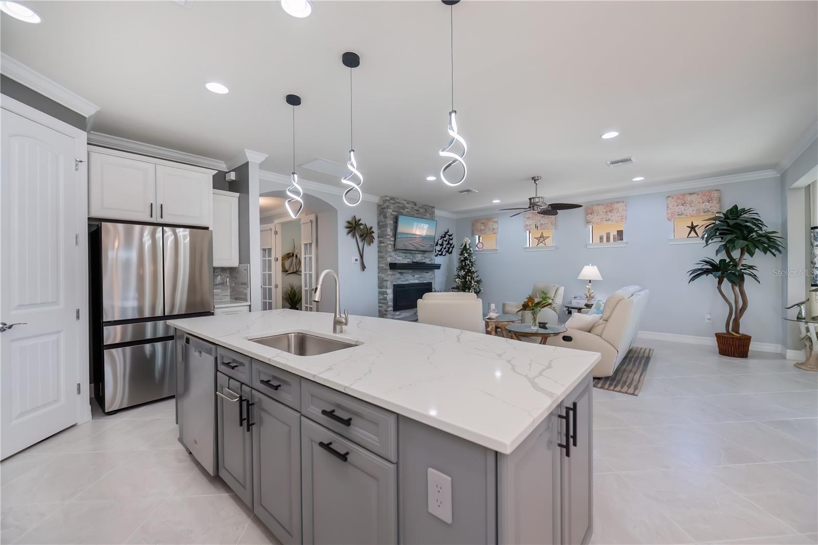 Bem-vindo ao Your Floridian Retreat - descubra este modelo Summerwood lindamente conservado na comunidade altamente procurada e rica em comodidades de IslandWalk - esta casa foi cuidadosamente atualizada e acabada com qualidade excepcional. A partir do momento em que você chega, a calçada e a passarela levam você a uma impressionante porta frontal de vidro, oferecendo uma prévia da elegância do interior. Entre no interior recém-repintado com paredes e rodapés nítidos, bem como tetos altos que criam uma atmosfera luminosa e convidativa. A planta aberta flui sem esforço, começando com uma espaçosa sala de estar ancorada por uma lareira elétrica – uma verdadeira obra de arte. A cozinha do chef é o coração da casa, com uma grande ilha com tampo de quartzo e eletrodomésticos mais novos, incluindo fogão, micro-ondas e geladeira. Ao lado da cozinha, a marquise oferece um espaço alegre para desfrutar do café da manhã ou relaxar com um bom livro. A suíte principal oferece conforto e sofisticação com piso de madeira projetado e closet personalizado. O banheiro privativo inclui pias duplas, bancadas de granito, banheira de jardim e chuveiro separado. Uma sala versátil com cama embutida acrescenta flexibilidade – perfeita para um escritório doméstico, um estúdio criativo ou um quarto de hóspedes ocasional. Saia para seu oásis particular: uma grande varanda coberta (medindo 9'x25') e varanda com tela (medindo 32'x40') com vista para o lago tranquilo, completa com uma piscina de água salgada cintilante (com célula de sal recentemente substituída) e uma cachoeira tranquila. As telas elétricas Storm Smart e as persianas sanfonadas proporcionam maior tranquilidade. Os destaques adicionais da casa incluem uma garagem tandem estendida de 20x30 com piso de epóxi e depósito embutido, bem como uma lavanderia cuidadosamente projetada com extensos armários personalizados e uma lavadora e secadora de dois anos de idade. A casa também vem com uma garantia Home Choice atual e transferível para maior tranquilidade. Com azulejos de cerâmica e madeira projetada por toda parte - nenhum carpete à vista! - manter esta casa é muito fácil. IslandWalk oferece uma verdadeira vida em estilo resort, com duas piscinas geotérmicas, uma piscina olímpica, academia, quadras de pickleball e tênis, parque para cães e muito mais. Esta casa combina luxo, funcionalidade e conforto - pronta para você se mudar e abraçar o estilo de vida da Flórida.