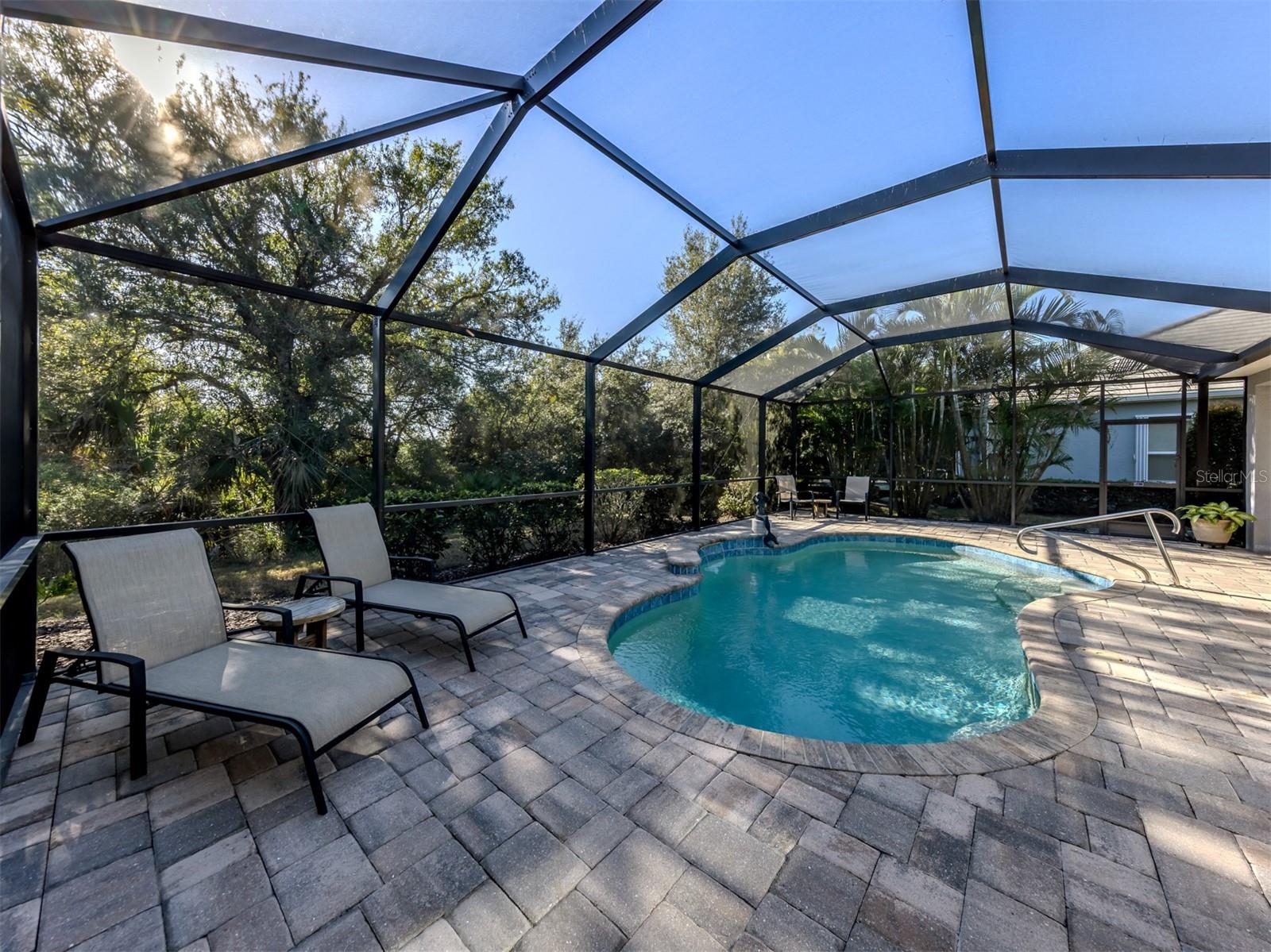 Modelo Freshwater 2 extremamente limpo na comunidade Grand Palm, altamente desejável, rica em comodidades e focada na natureza. Localizada num terreno traseiro virado a sul que dá acesso a uma área de conservação dedicada, esta casa oferece privacidade excepcional e um verdadeiro ambiente de retiro. Uma bela piscina em forma de rim com paisagismo exuberante rodeia a ampla varanda, criando um espaço ideal para relaxar ou se divertir. Com 3 quartos, 2 banheiros e um escritório dedicado, a planta dividida oferece excelente separação entre a suíte principal e os quartos secundários. O escritório inclui portas francesas de vidro duplo e a casa oferece amplo espaço no armário. O piso de cerâmica sem carpete facilita a manutenção, e um sistema AC mais recente (2023) oferece conforto eficiente durante todo o ano. Os recursos da cozinha e do interior incluem eletrodomésticos de aço inoxidável preto resistentes a impressões digitais, fogão elétrico com conexão de gás instalada, bancadas de quartzo, backsplash de azulejos de metrô e uma grande despensa. A lavanderia interna inclui uma pia. As escadas rebatíveis do sótão proporcionam fácil acesso à garagem. OS RECURSOS DE TEMPESTADE E SEGURANÇA incluem venezianas sanfonadas ou de enrolar em todas as janelas e portas, junto com uma porta frontal com classificação de impacto para maior tranquilidade. AS COMODIDADES DO GRAND PALM incluem várias piscinas estilo resort, academia de ginástica, quadras de tênis, pickleball, basquete e vôlei, quilômetros de trilhas para caminhada e ciclismo, parques para cães, playgrounds, clube, clubes sociais e um coordenador de atividades em tempo integral. Convenientemente localizado perto de lojas, restaurantes, praias e do centro histórico de Veneza.