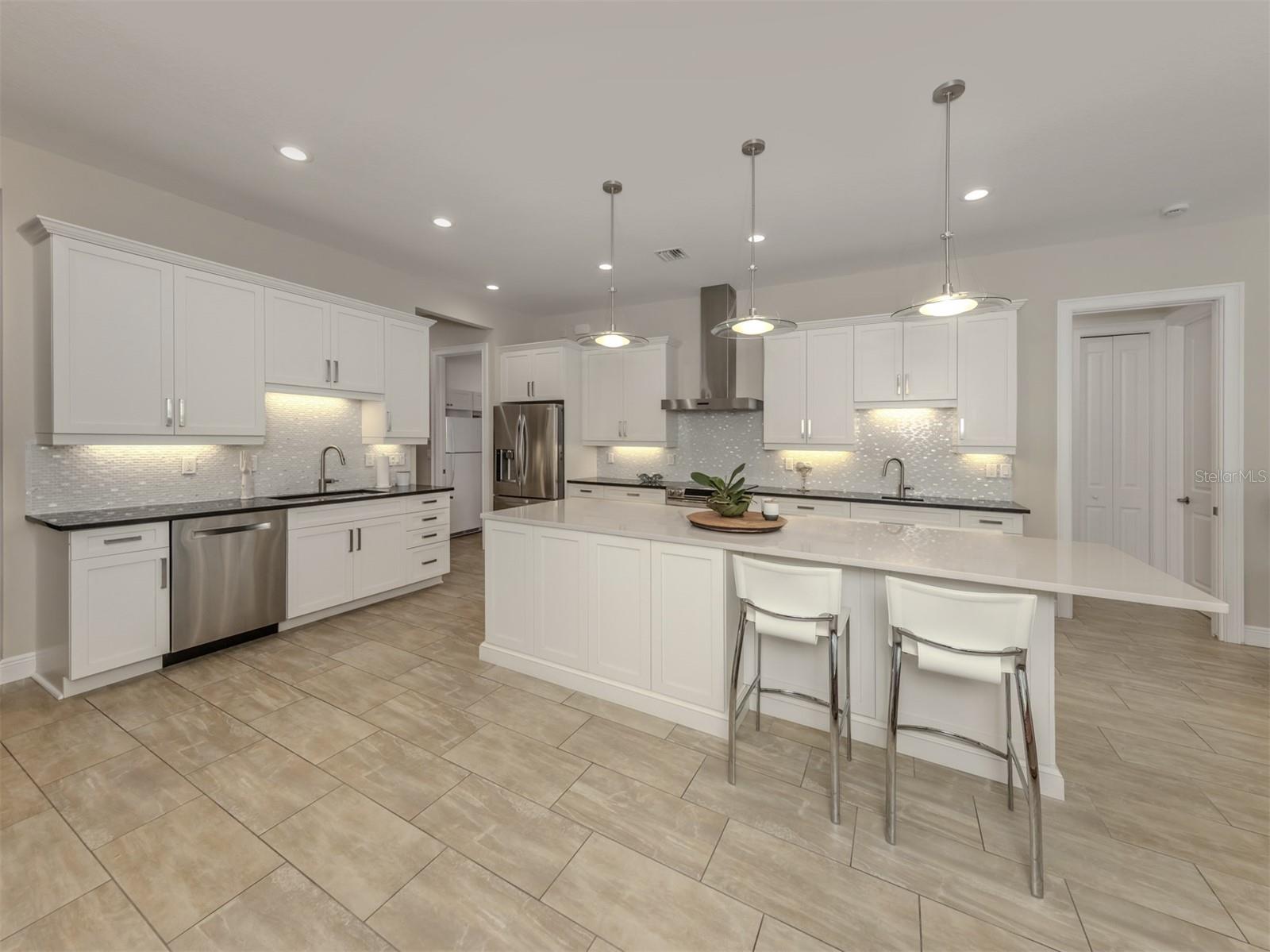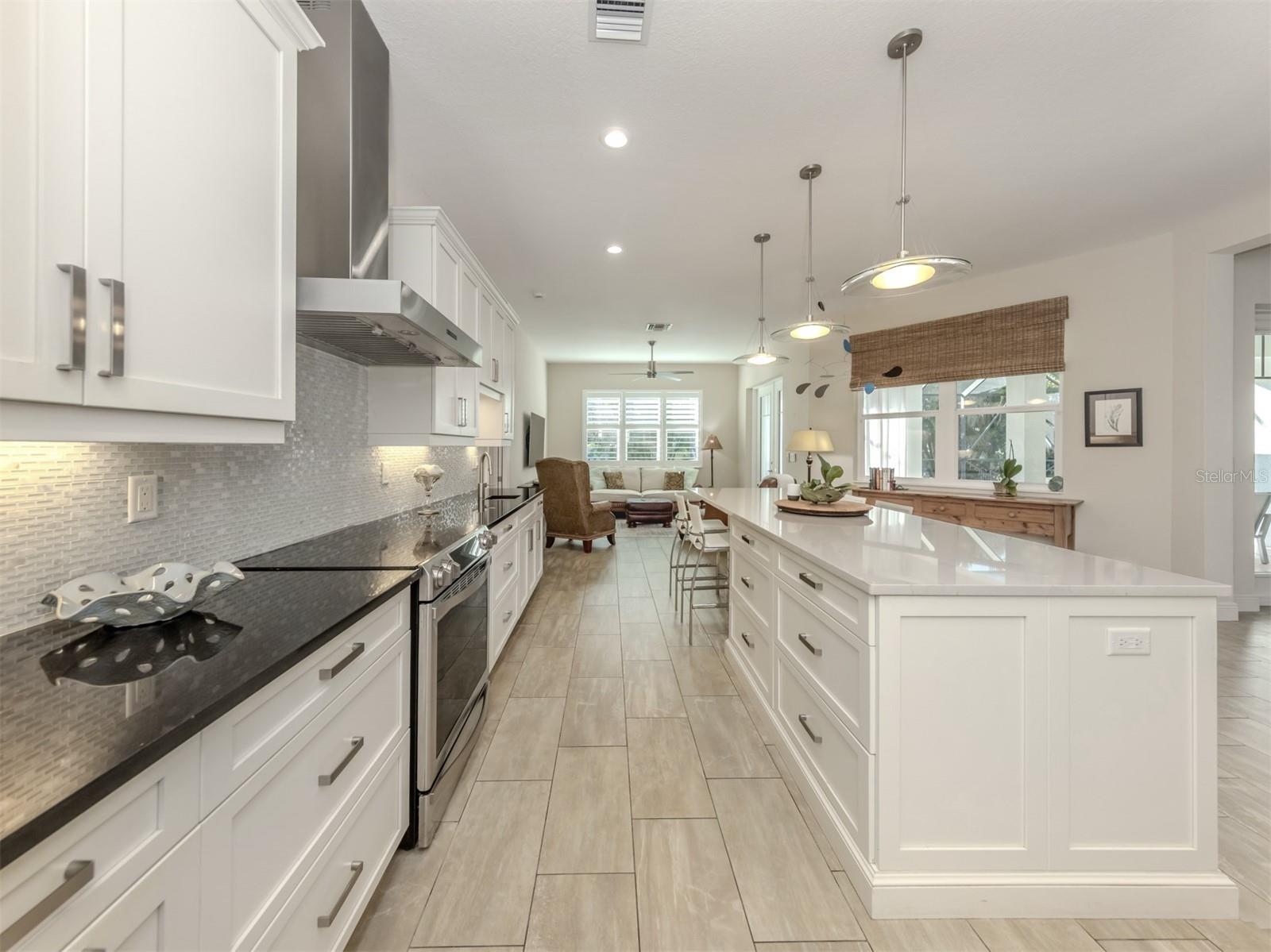 Na ilha de Veneza, em frente ao cenário exuberante do Blalock Park, esta casa personalizada oferece não apenas um design excepcional, mas também um estilo de vida incrível. Saia para desfrutar de trilhas tranquilas para caminhadas, visite a biblioteca ou participe dos muitos eventos mensais no Centro Comunitário de Veneza, nas proximidades, tudo a poucos minutos da sua porta. Construída pela Caithness Construction, a casa foi cuidadosamente projetada para reunir e entreter, servindo como o coração da casa. É o maior cômodo da casa e flui lindamente para a sala da família, criando um espaço caloroso e acolhedor para a vida cotidiana e também para ocasiões especiais. Com bancadas de quartzo, amplo espaço para preparação, capacidade para cinco pessoas no balcão de café da manhã, copa com prateleiras de inox e copa para guardar pequenos eletrodomésticos, esta cozinha foi feita para receber, comemorar e saborear o café da manhã. A entrada impressionante recebe você com tetos altos de 3,6 metros e leva às salas de estar e de jantar, ambas igualmente abertas e iluminadas. As portas francesas da sala de estar convidam você para a piscina, combinando a vida interna e externa e tornando mais fácil entreter ou simplesmente desfrutar de uma brisa tranquila à noite. A sala de jantar fica ao lado da cozinha, ideal para tudo, desde jantares casuais até festas de fim de ano. A suíte principal é um retiro tranquilo, oferecendo armários duplos e acesso privado à piscina e ao spa, ideal para um relaxante mergulho à meia-noite sob as estrelas. O banheiro privativo parece um spa com banheira de jardim, grande chuveiro romano, pia dupla e amplo vestiário. Dois quartos adicionais amplos oferecem acomodações confortáveis para hóspedes ou familiares, e um deles também oferece acesso direto à área da piscina, tornando a hospedagem dos visitantes mais agradável. Do lado de fora, seu oásis privado no quintal o aguarda com uma grande piscina e spa cercado por belos decks de travertino, muito espaço para relaxar e se divertir, paisagismo tropical exuberante e um pátio externo adicional, um cenário ideal para reuniões de fim de semana, tardes tranquilas e coquetéis noturnos à beira da piscina. Seu cão irá desfrutar do quintal cercado traseiro para passear e explorar. Até a garagem foi cuidadosamente renovada com piso em epóxi, arrecadação climatizada e armários embutidos, oferecendo espaço e organização para todos os seus hobbies e extras. Desde visitas matinais ao parque até noites à beira da piscina, esta casa oferece uma maravilhosa mistura de conforto, conexão e charme costeiro, um lugar onde você pode relaxar, se divertir e aproveitar o melhor da vida na Ilha de Veneza.