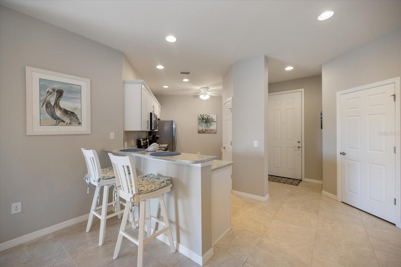 Modelo CASCADIA lindamente atualizado com IMPACT WINDOWS! EXPOSIÇÃO SUL ALTAMENTE desejável! Este desejado modelo TURN KEY/Mobilado é espaçoso e bem equipado com dois quartos, MAIS uma sala/escritório, dois banheiros completos e uma garagem anexa para dois carros. Esta villa final está situada em um beco sem saída tranquilo. Com muita luz e uma bela vista do lago da serena varanda coberta (conjunto de pátio e churrasqueira ficam com a casa), esta casa está pronta para seu próximo proprietário! Algumas das muitas atualizações incluem balcões de quartzo na cozinha e nos banheiros, venezianas, persianas sanfonadas no controle deslizante, porcelanatos grandes de 21", armários de madeira e muito mais! A cozinha tem eletrodomésticos de aço inoxidável, backsplash de azulejos, sala para comer, armário, despensa e balcão para café da manhã. O quarto principal é espaçoso e tem vista para o lago. O banheiro principal tem um grande box amplo com porta de vidro e azulejos com incrustações de azulejos decorativos e penteadeira atualizada. Este plano dividido é a casa de inverno perfeita ou residência em tempo integral para o casal que deseja morar em uma das comunidades mais populares de West Villages, o IslandWalk oferece um Resort Center com comodidades de classe mundial e diretor de atividades em tempo integral - não há comunidade mais ativa do que esta. As taxas HOA cobrem a manutenção do terreno (gramado, cobertura morta), cabos básicos e todas as comodidades!